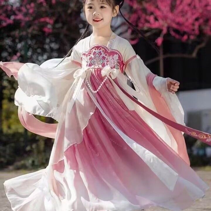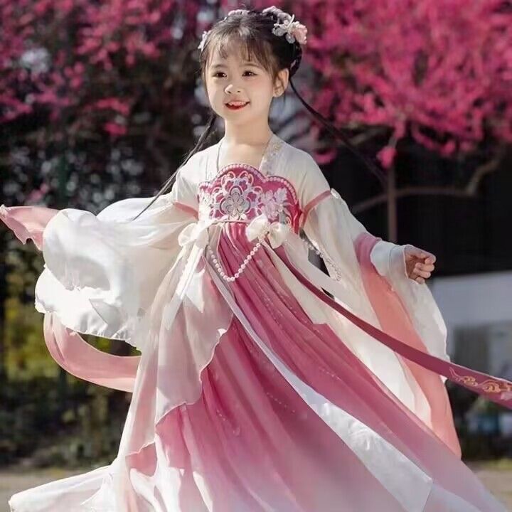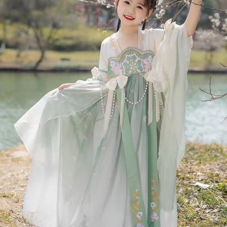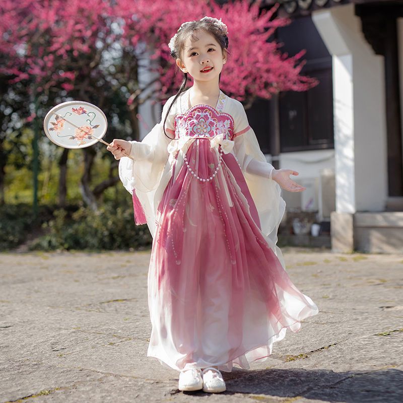 夏季2024新款汉服女童超仙小女孩中国风儿童古风公主襦裙唐装古装