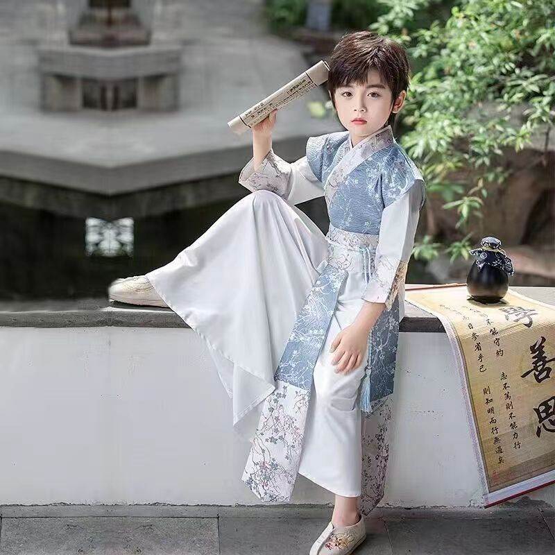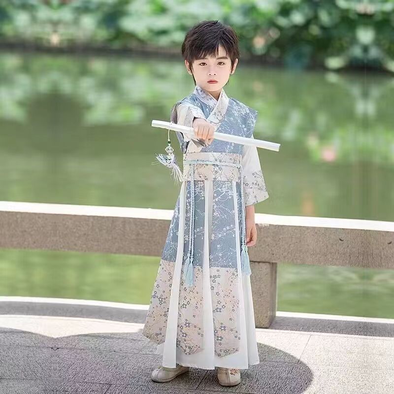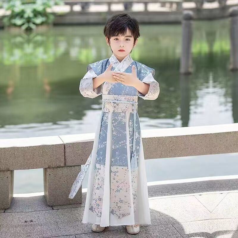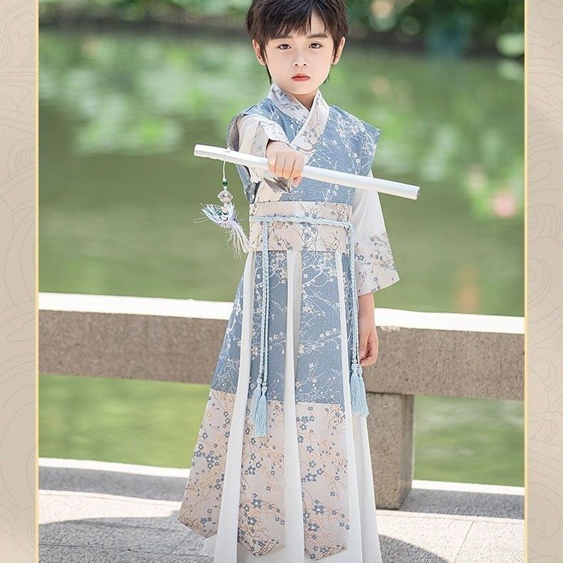 汉服儿童男童国学演出服古风唐装古装帅气侠客中国少爷中式薄款