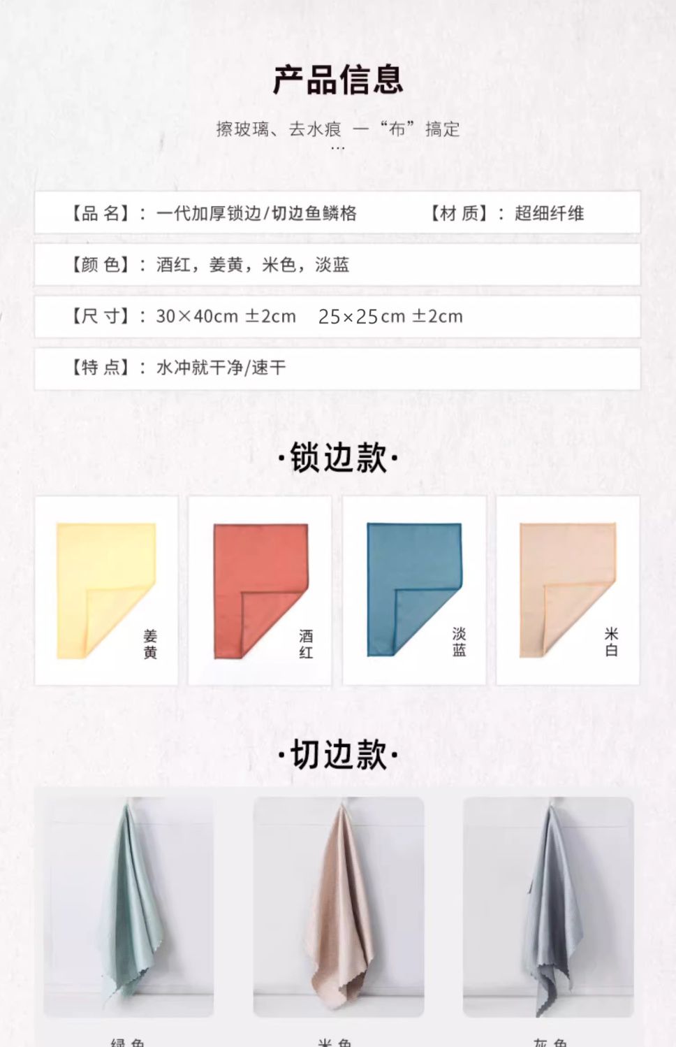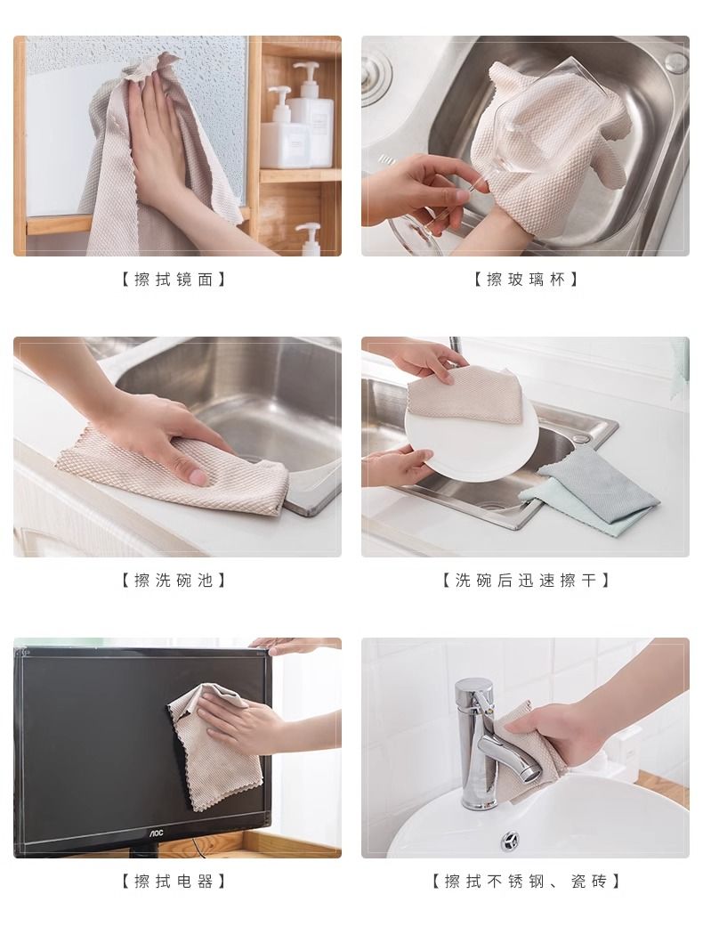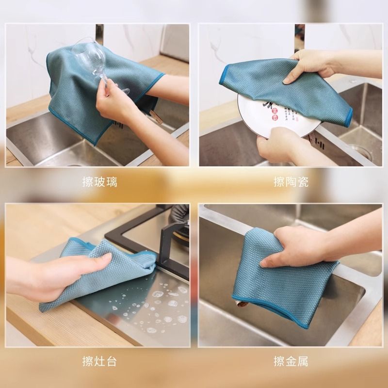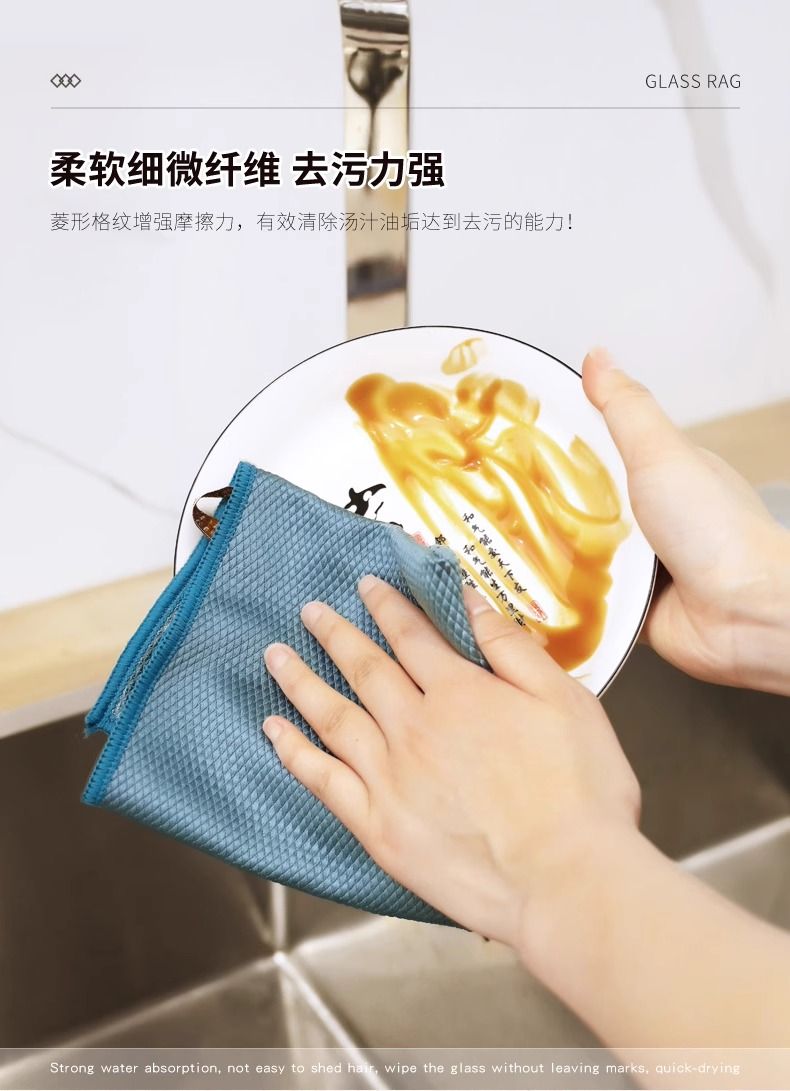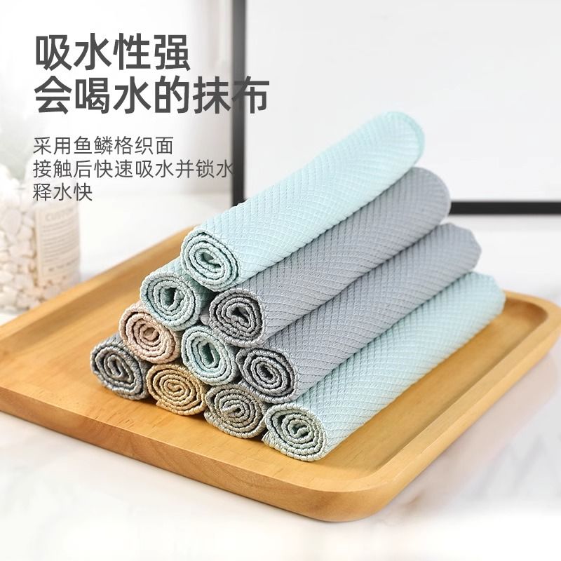 加厚鱼鳞玻璃无痕抹布吸水沾油专用不掉加大洗碗家用擦桌厨房清洁