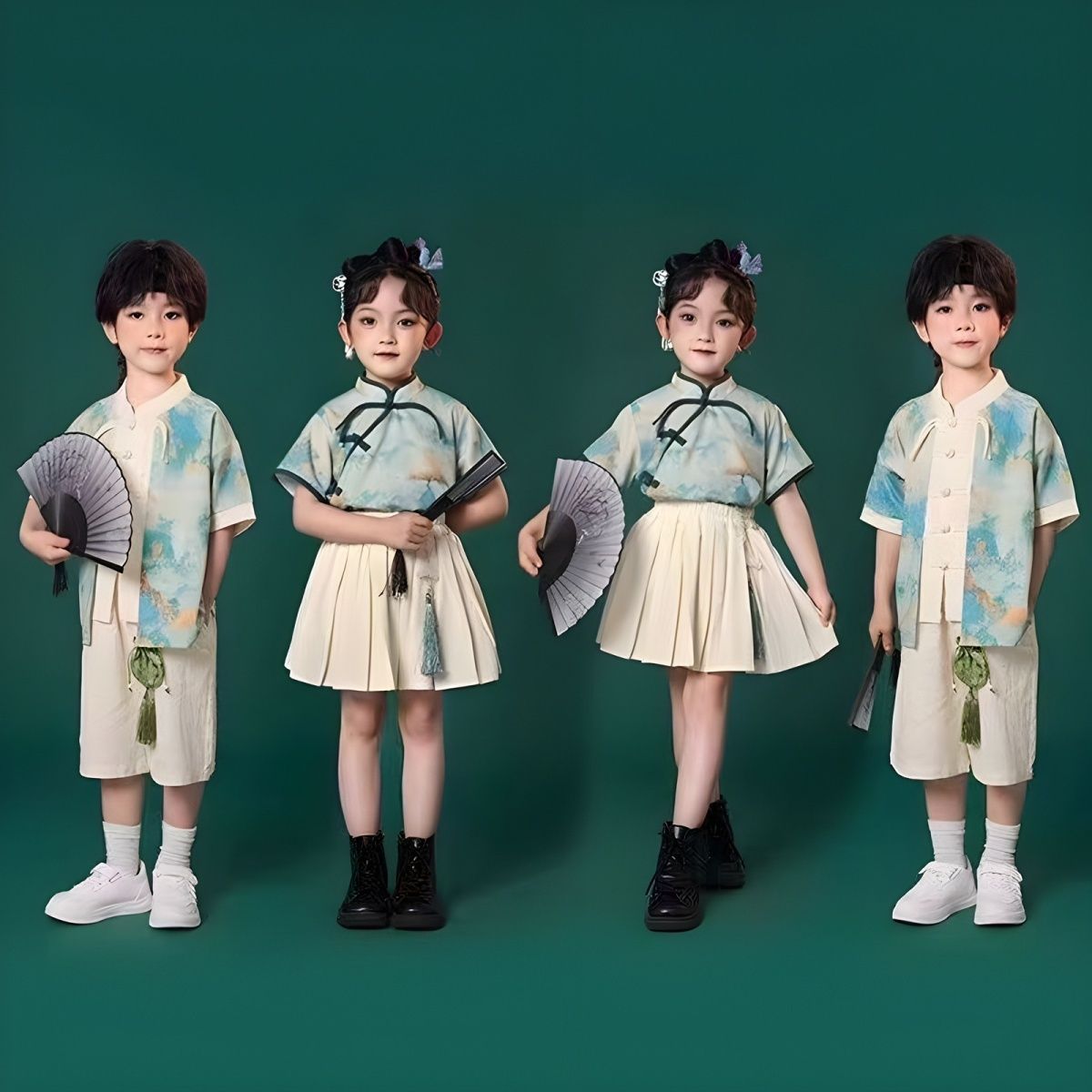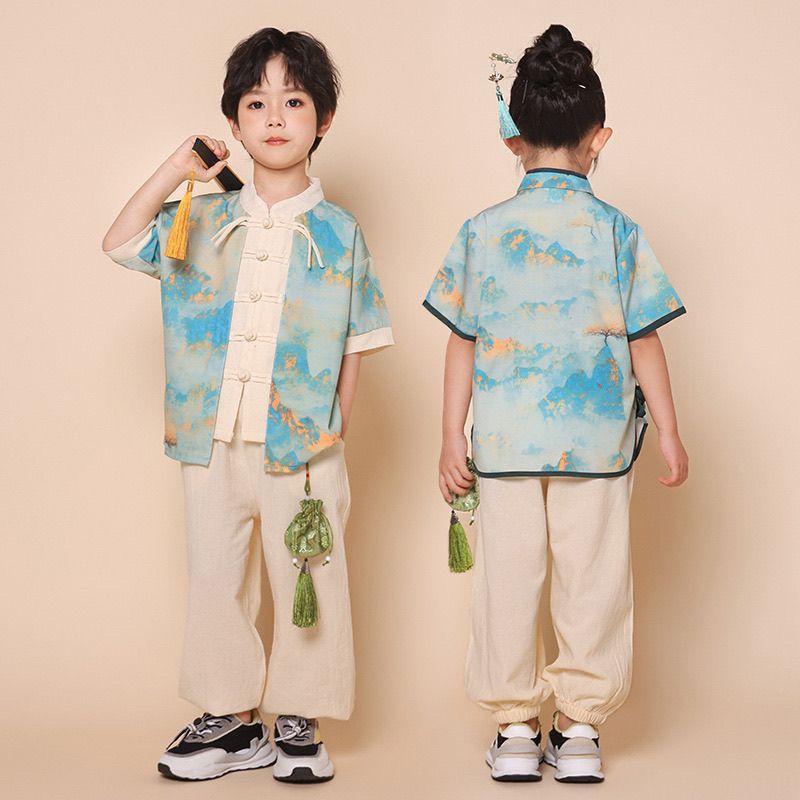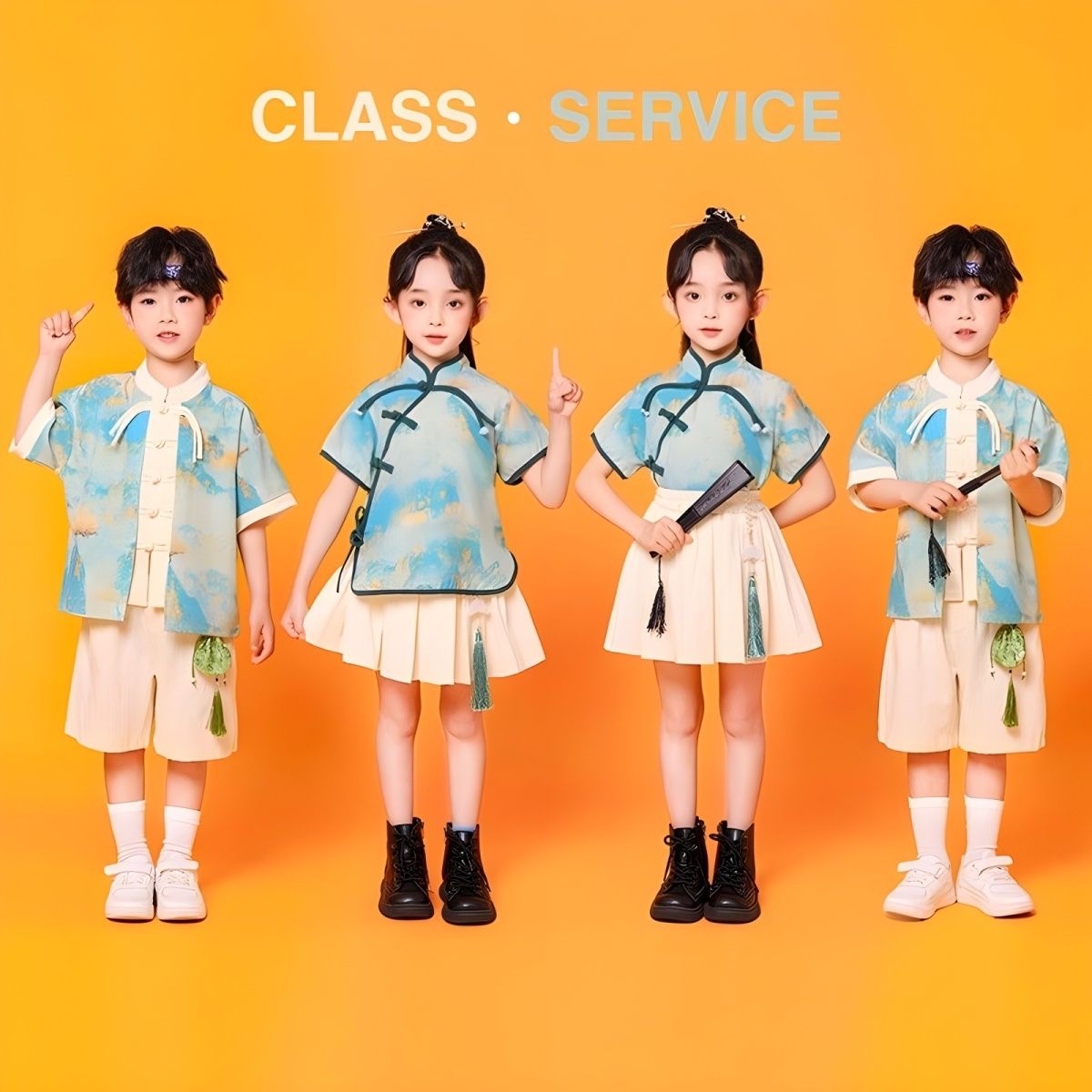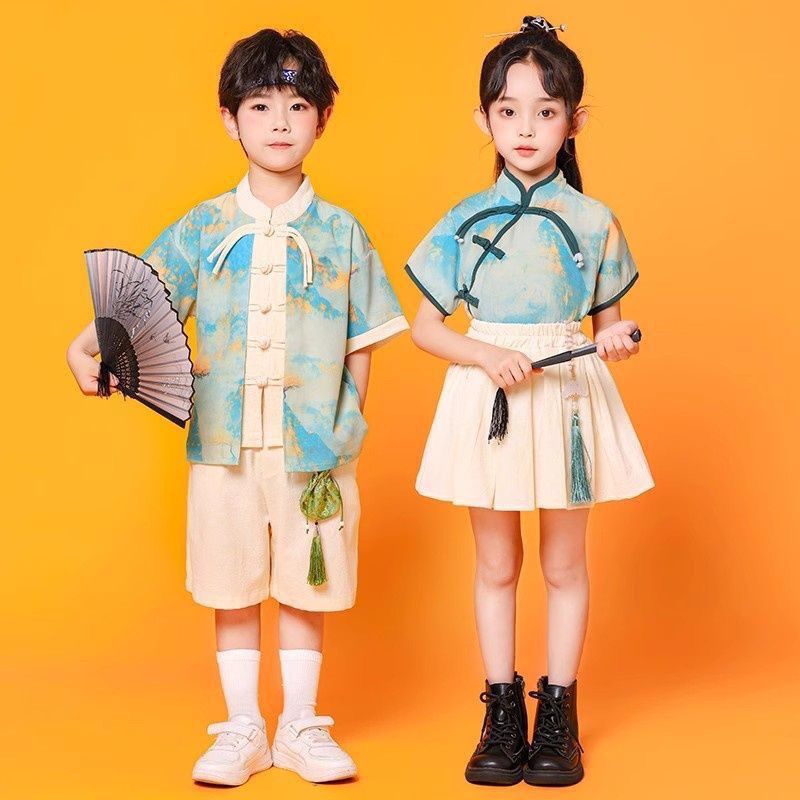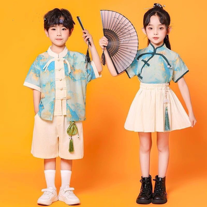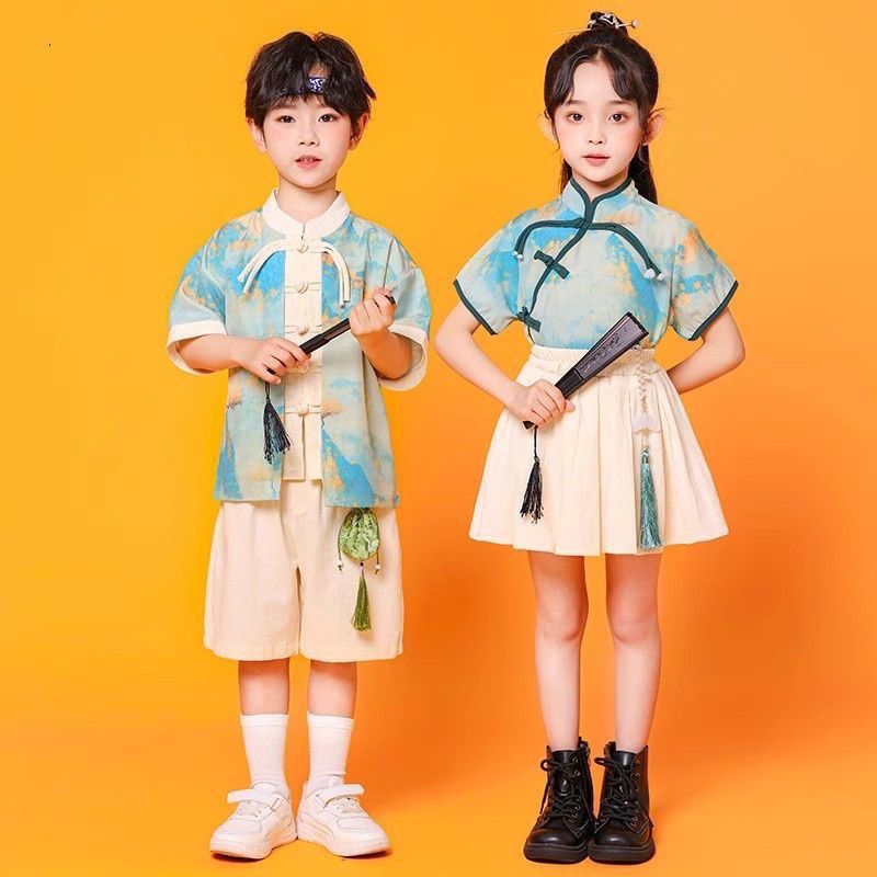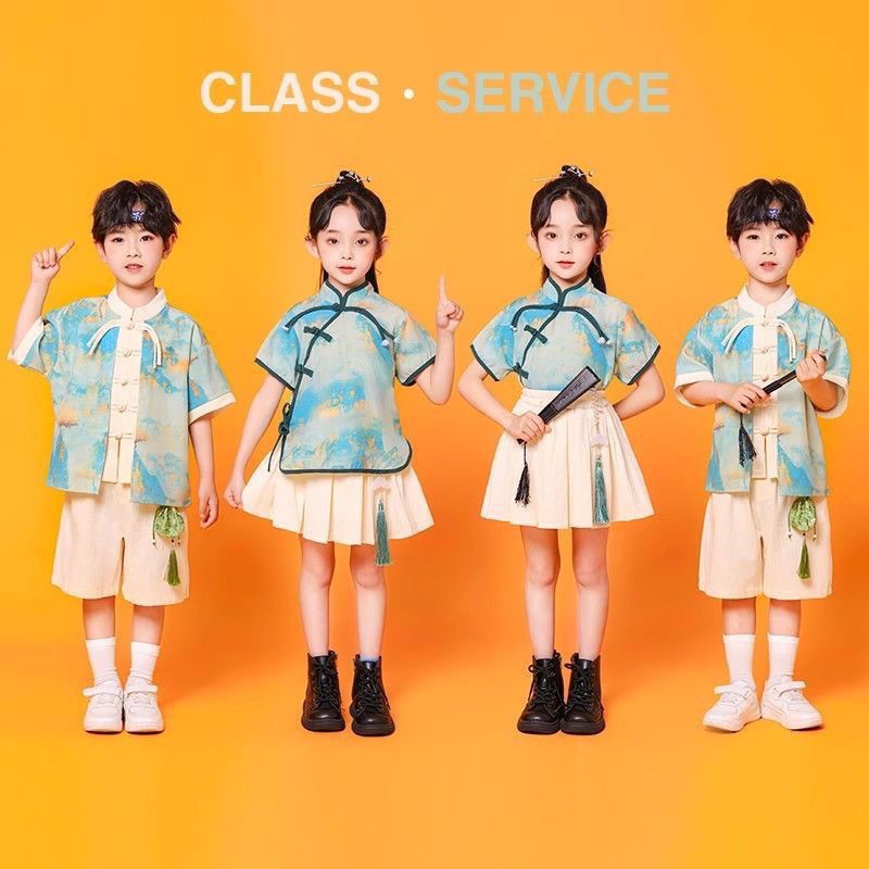 儿童中国风演出服朗诵合唱舞蹈表演服装运动会班服男女童汉服套装