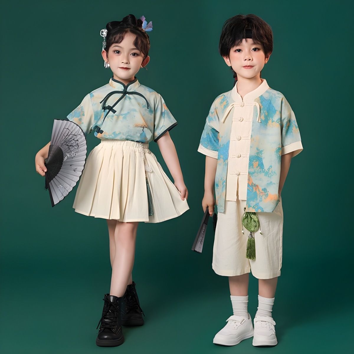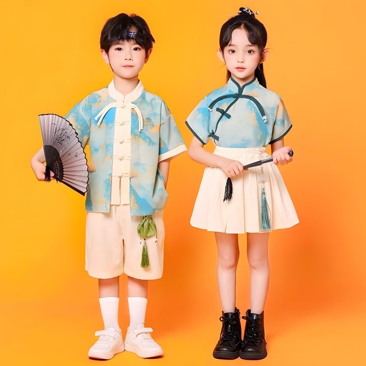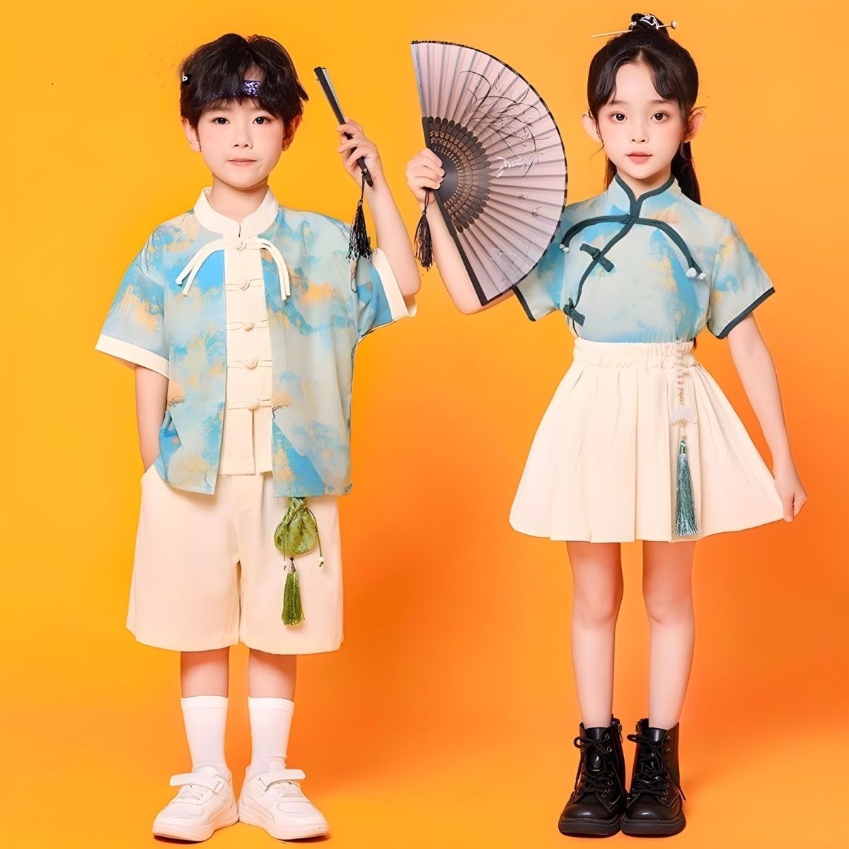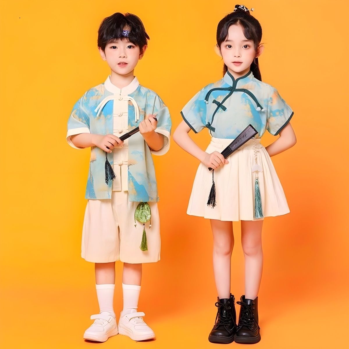 儿童中国风演出服朗诵合唱舞蹈表演服装运动会班服男女童汉服套装