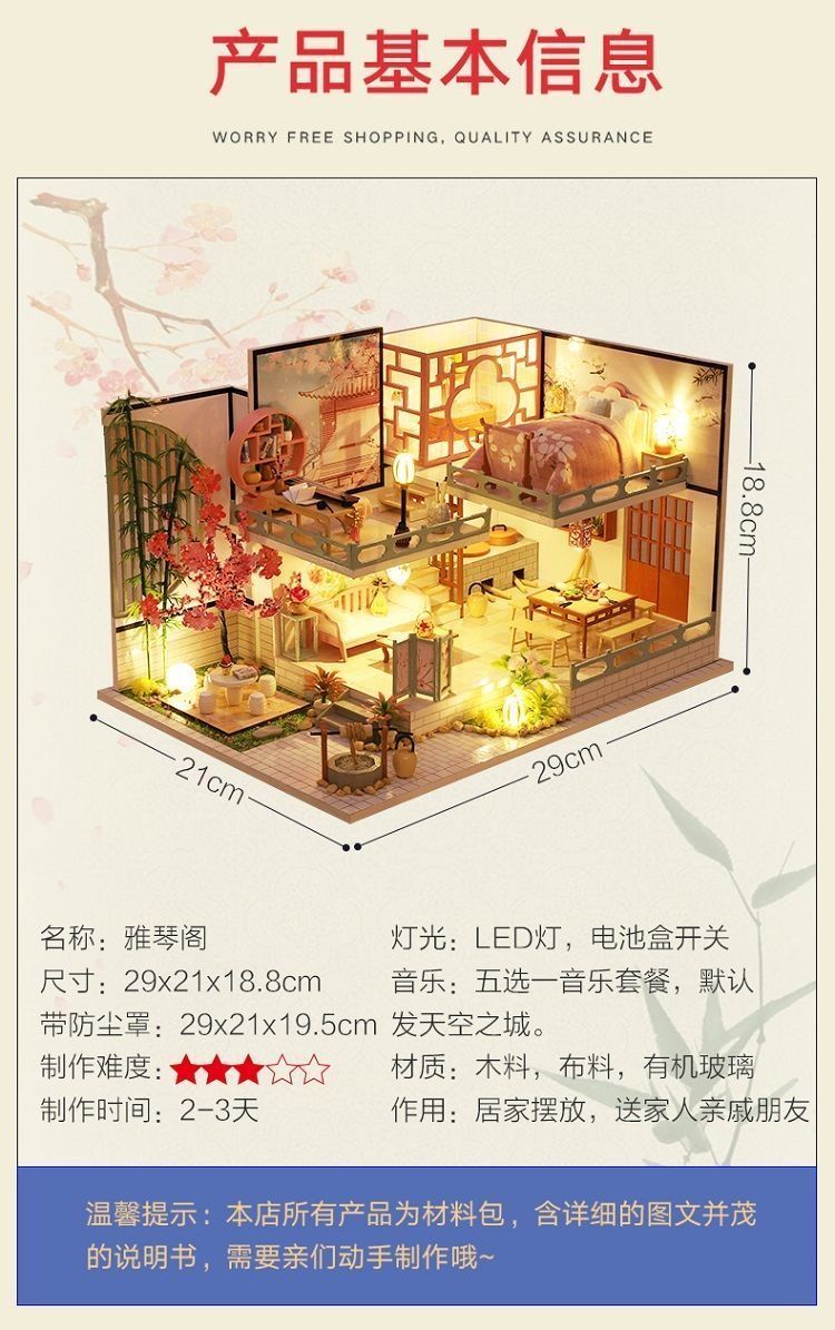 | yaqin pavilion + tool glue + light + music + doll(雅琴阁+工具胶+灯+音乐+公仔) | USD $19.01 | 99999 piece available |