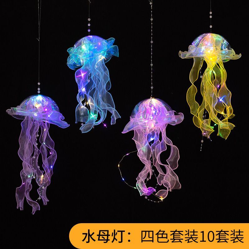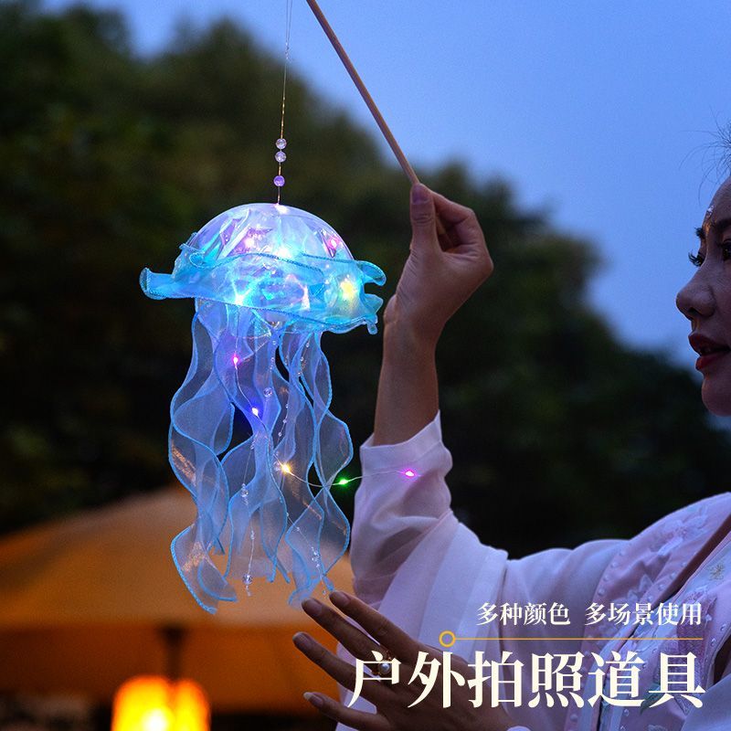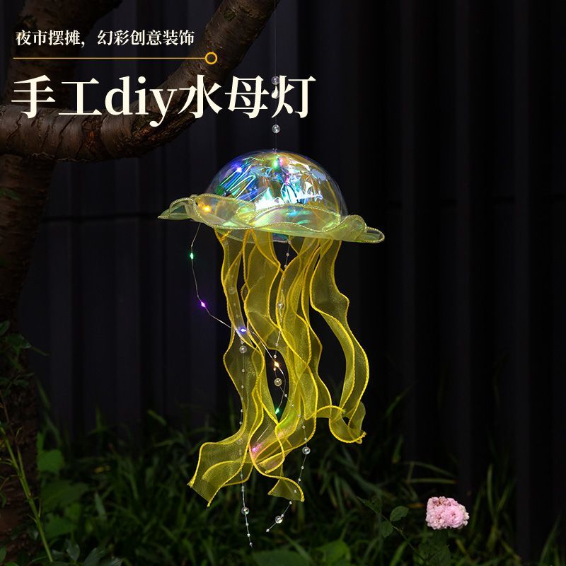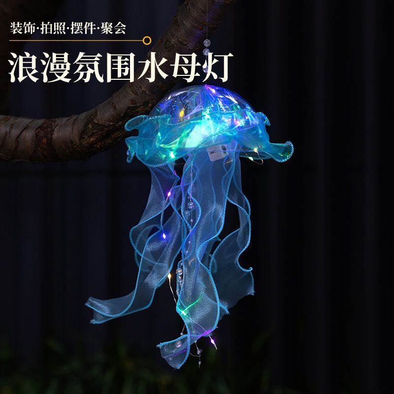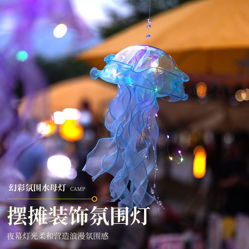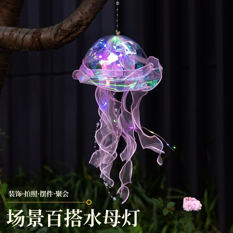 网红水母灯夜市摆摊宿舍氛围灯装饰布置儿童手提吊灯笼diy材料包
