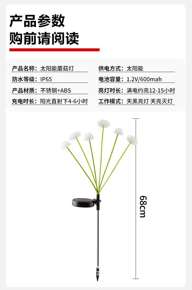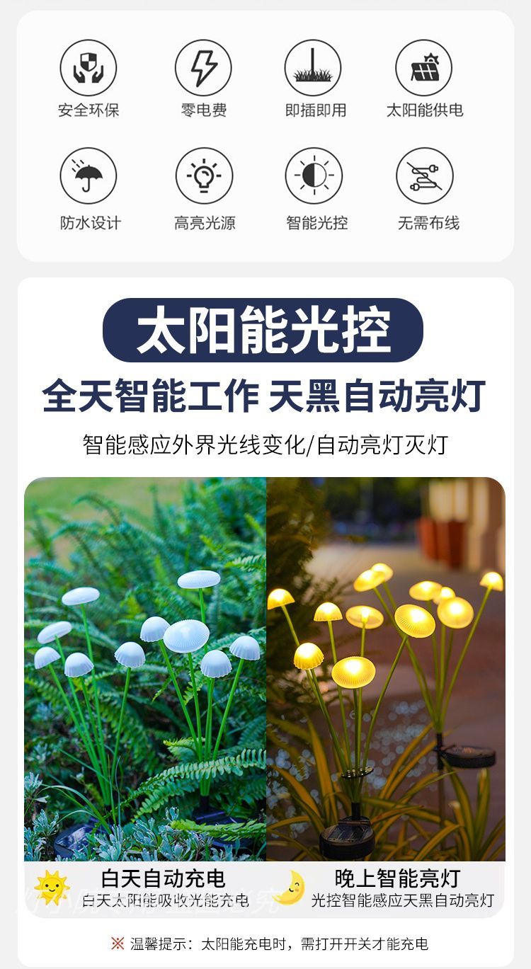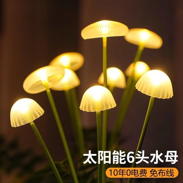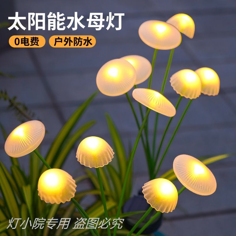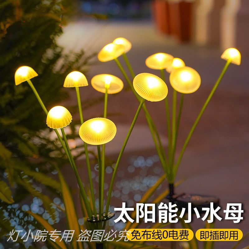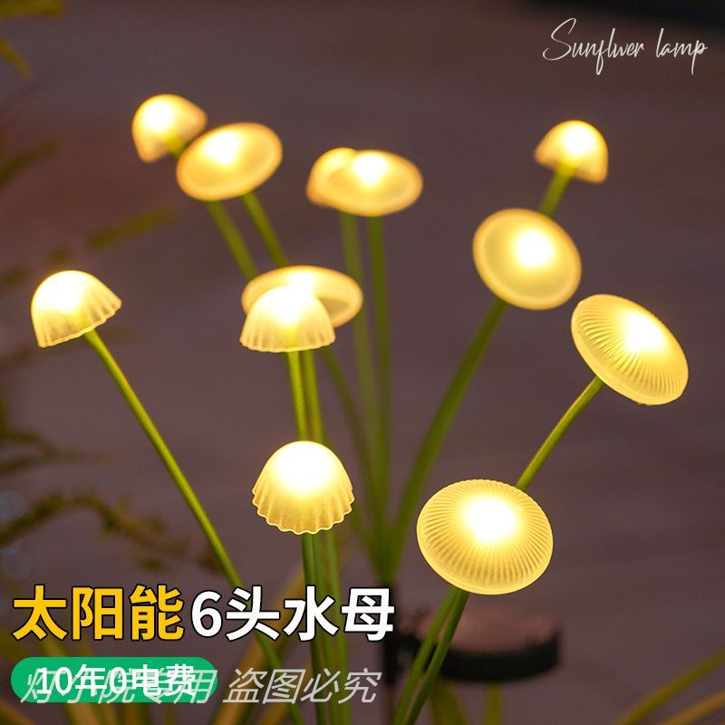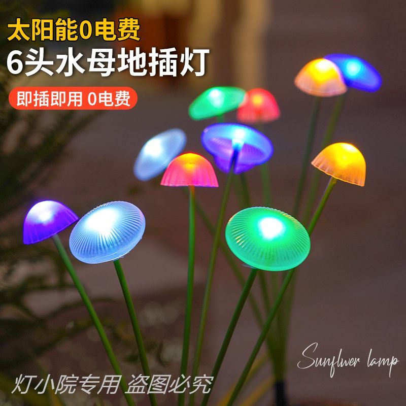 太阳能水母灯庭院花园阳台装饰氛围七彩蘑菇灯户外防水草坪灯