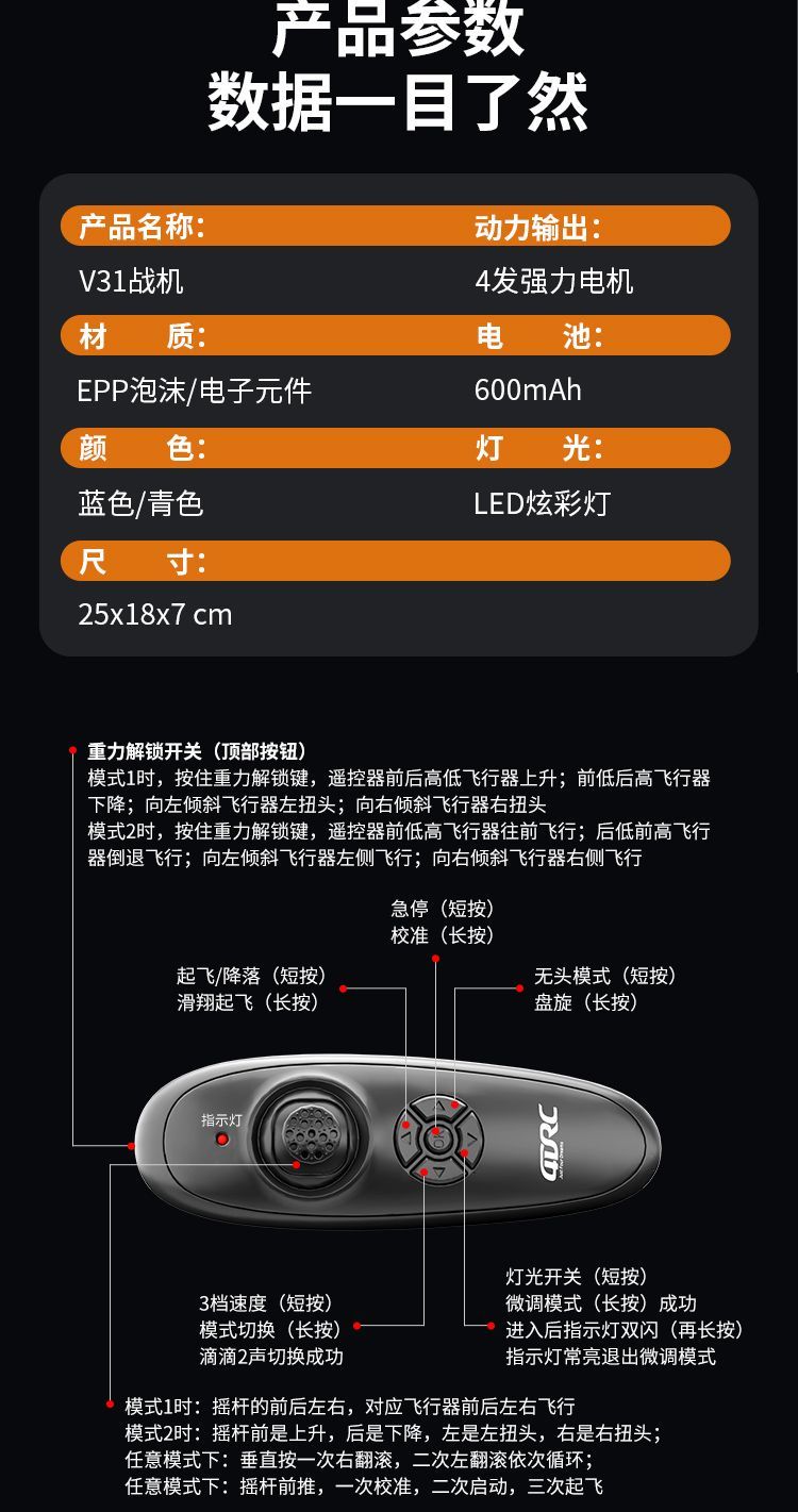 4DRC遥控飞机战斗机耐摔泡沫滑翔机无人机男孩玩具飞机器黑科技
