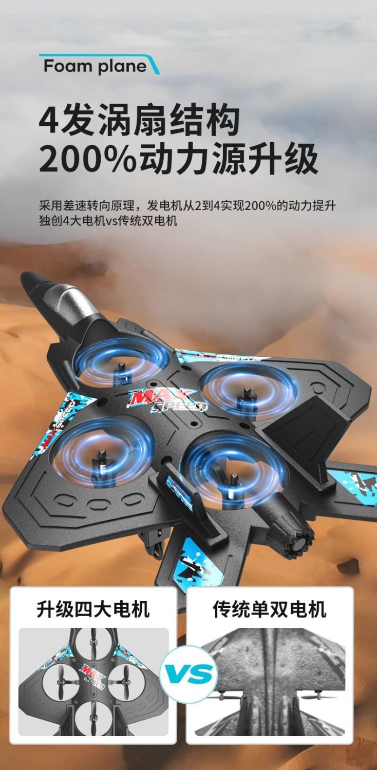 泡沫无人机儿童战斗机滑翔机炫酷遥控飞机小学生男孩玩具6-14岁