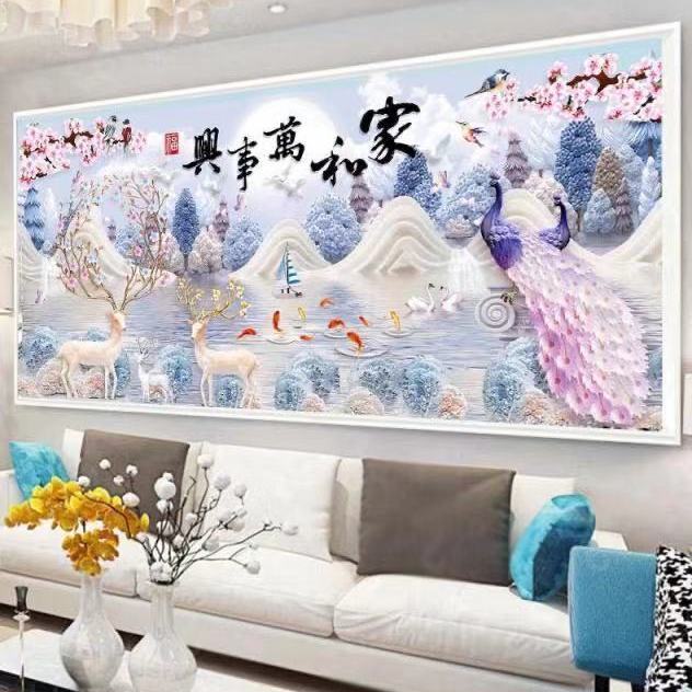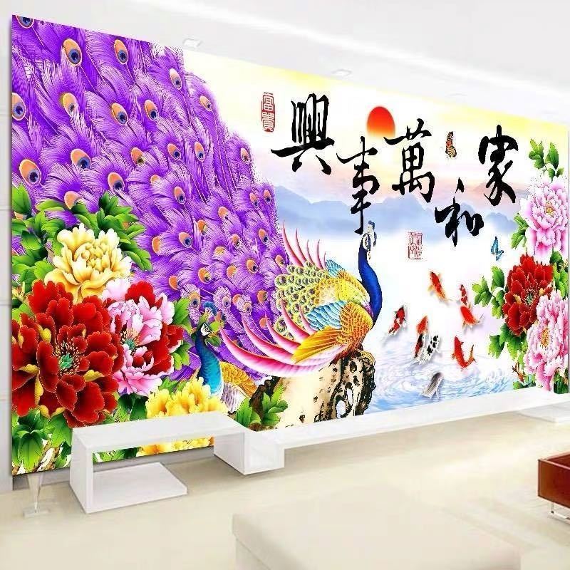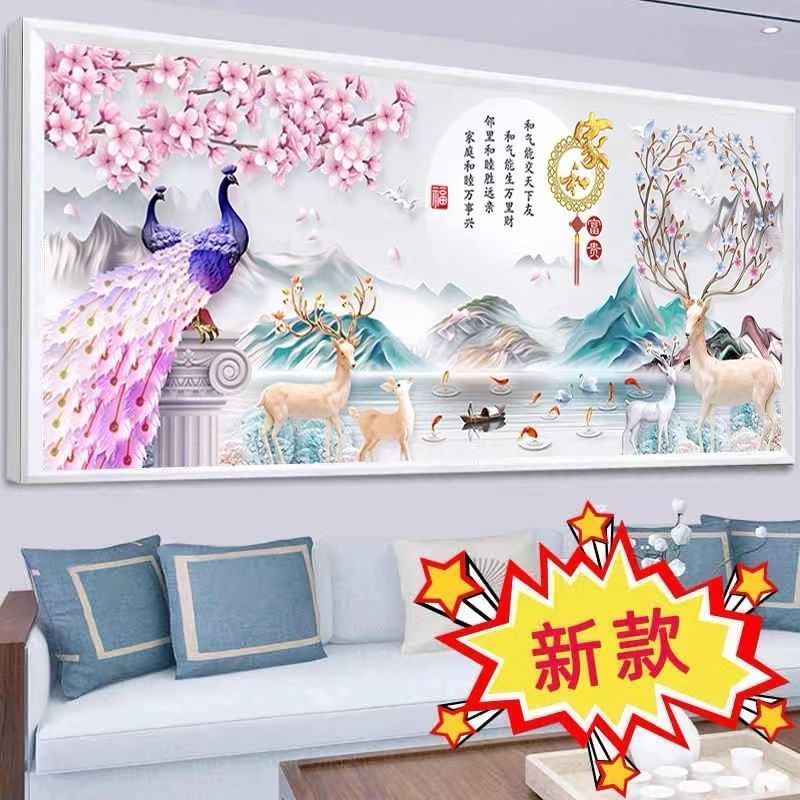 钻石画家和万事兴孔雀2024满钻新款十字绣钻石客厅砖石点贴钻石绣