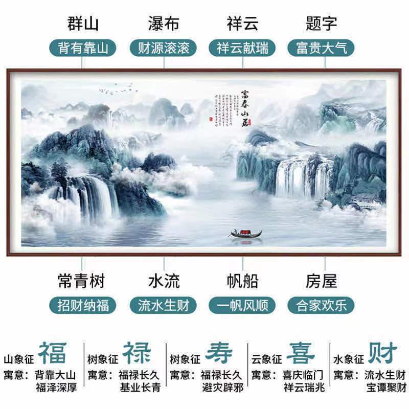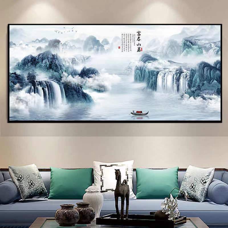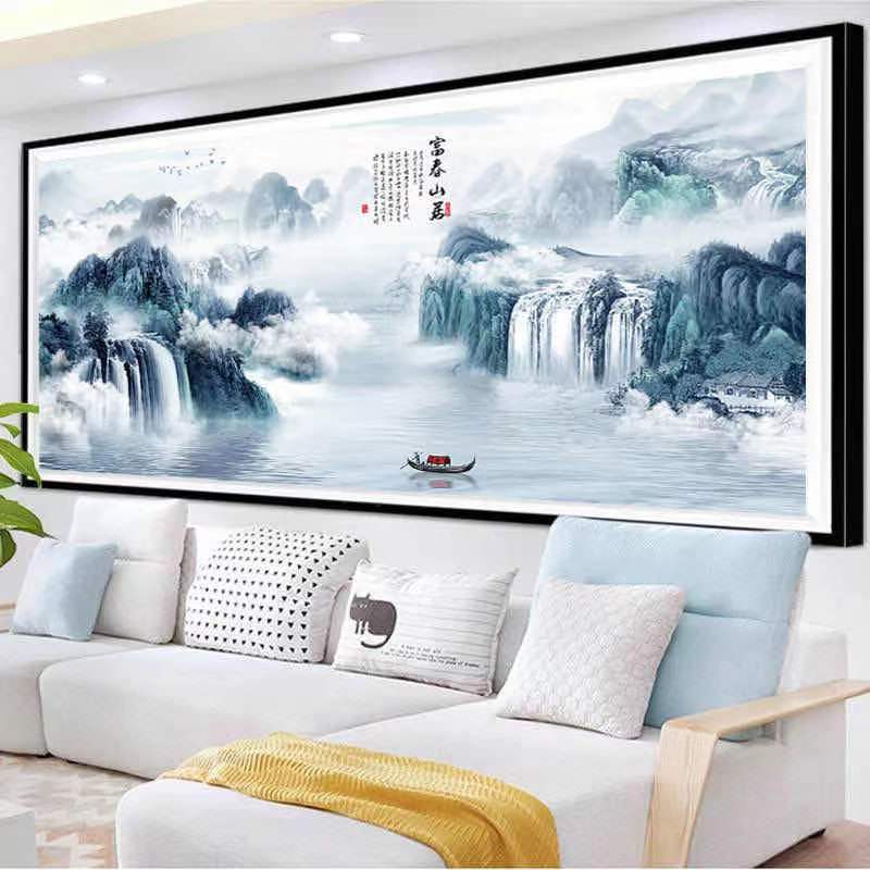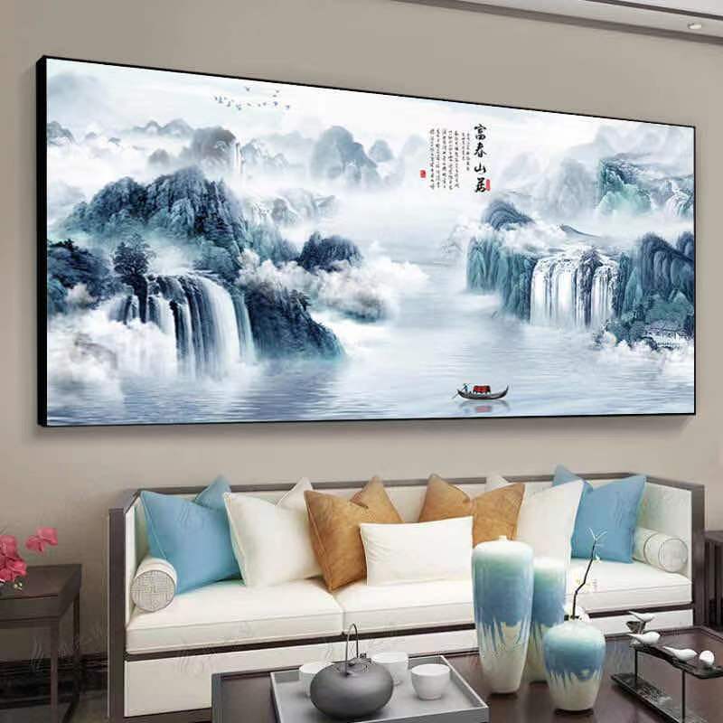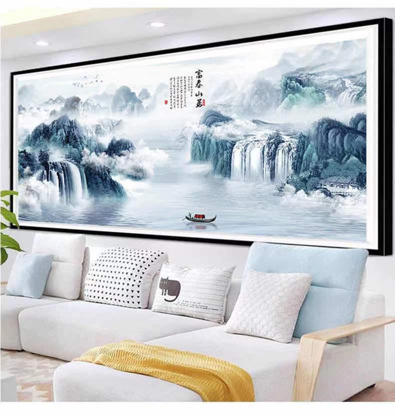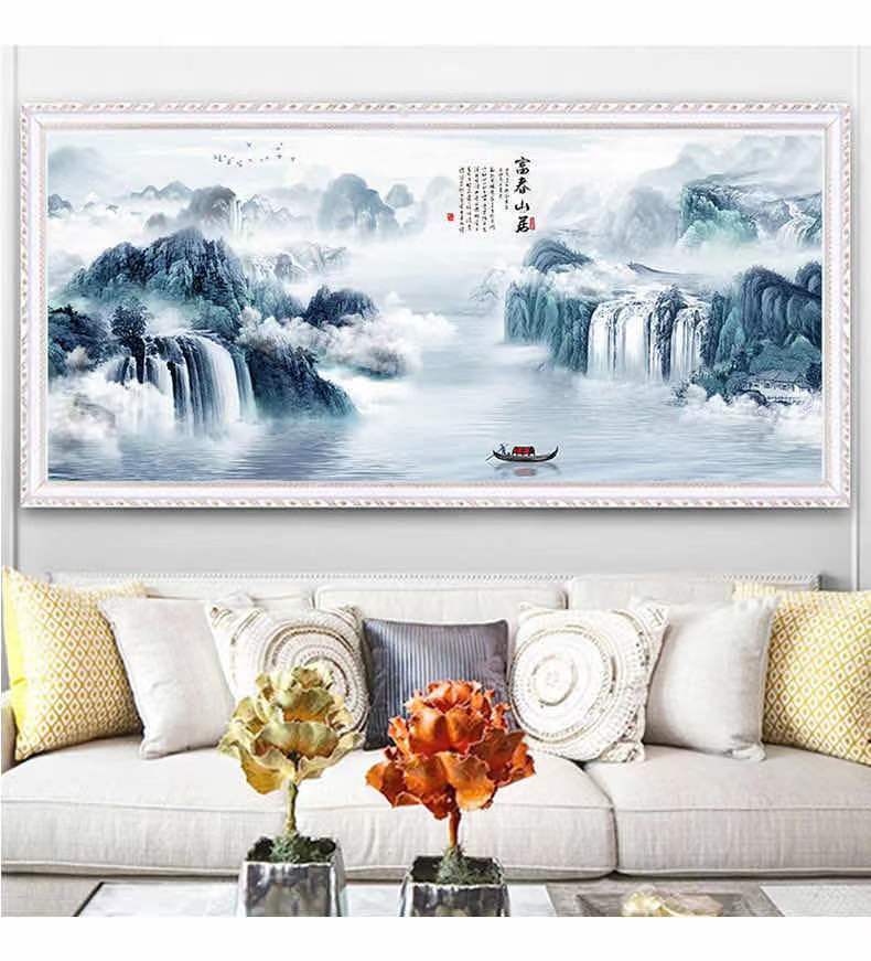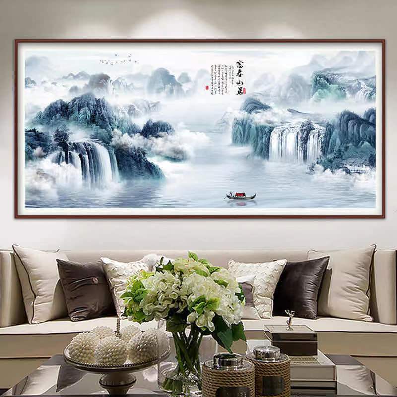 富春山居图钻石画2021新款客厅十字绣山水风景5D点粘满钻手工贴画