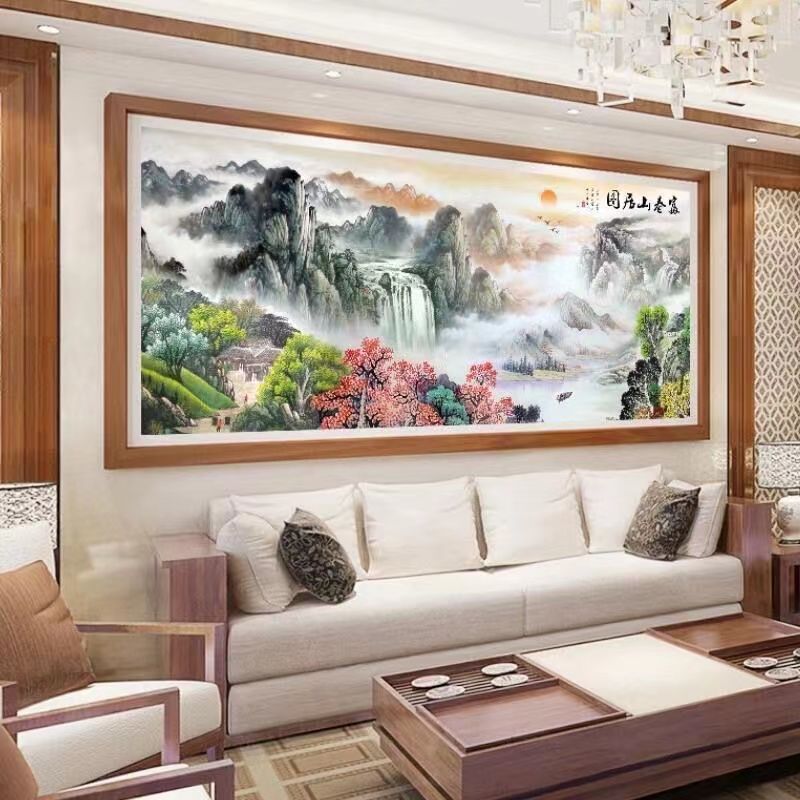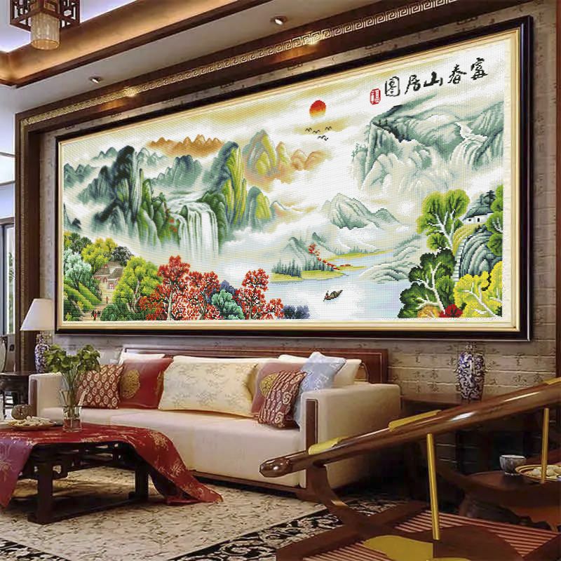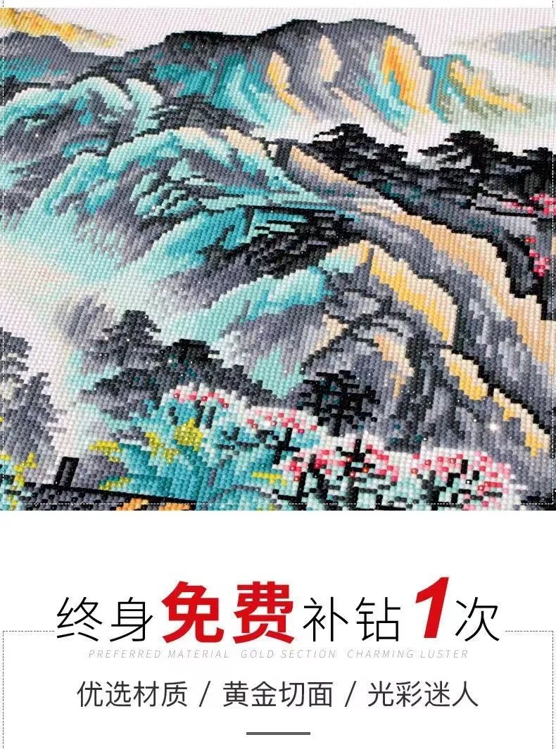钻石画2022新款富春山居图客厅大幅风景山水画流水生财满贴十字绣