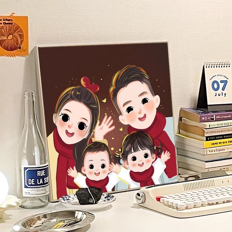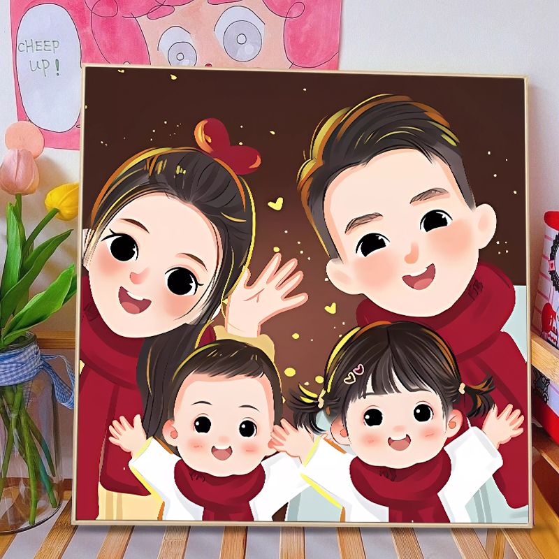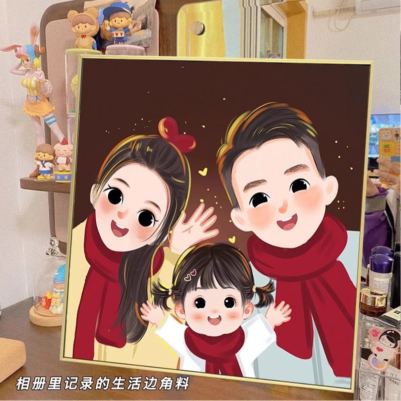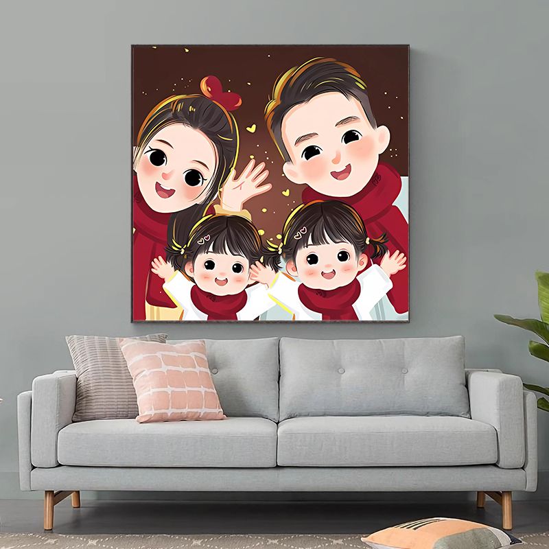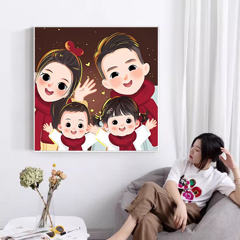全家福钻石画满钻2024新款客厅亲子一家三四口粘钻贴砖石画十字绣