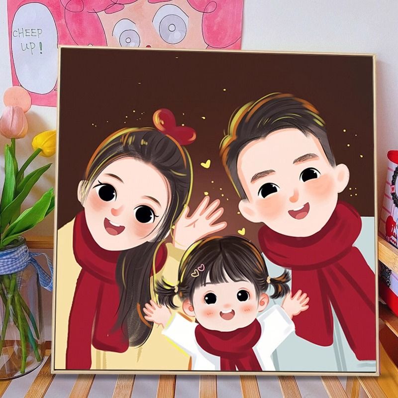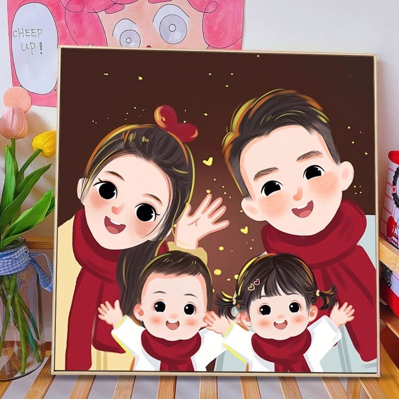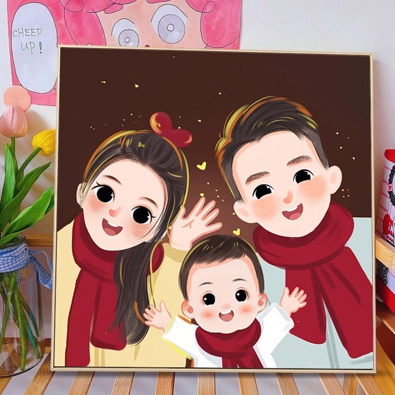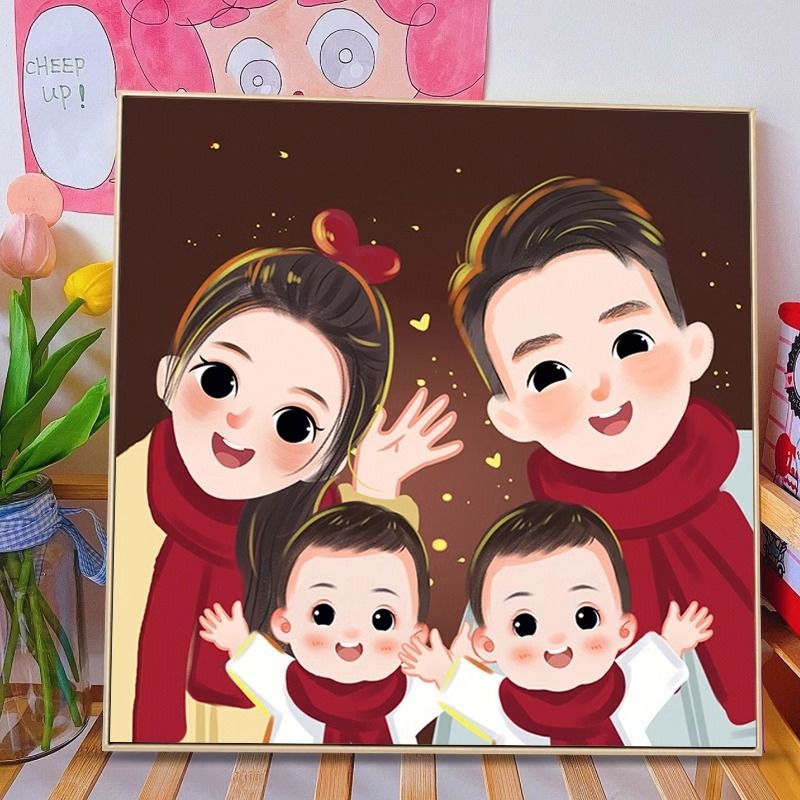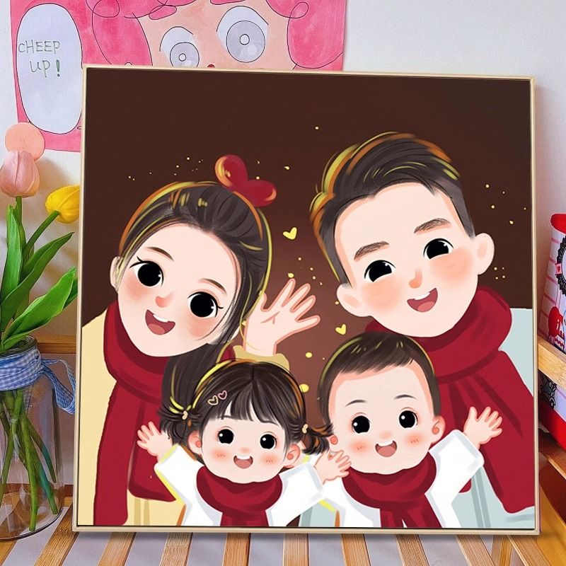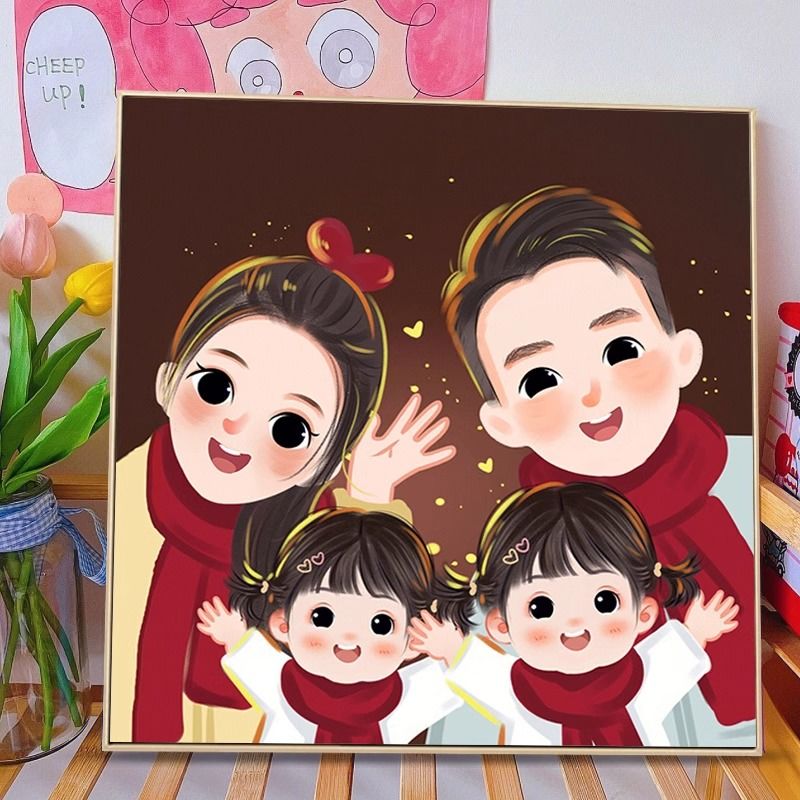 全家福钻石画满钻2024新款客厅亲子一家三四口粘钻贴砖石画十字绣