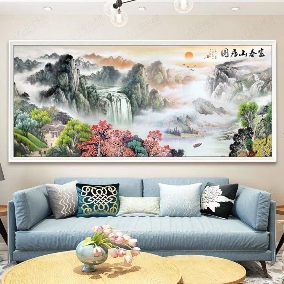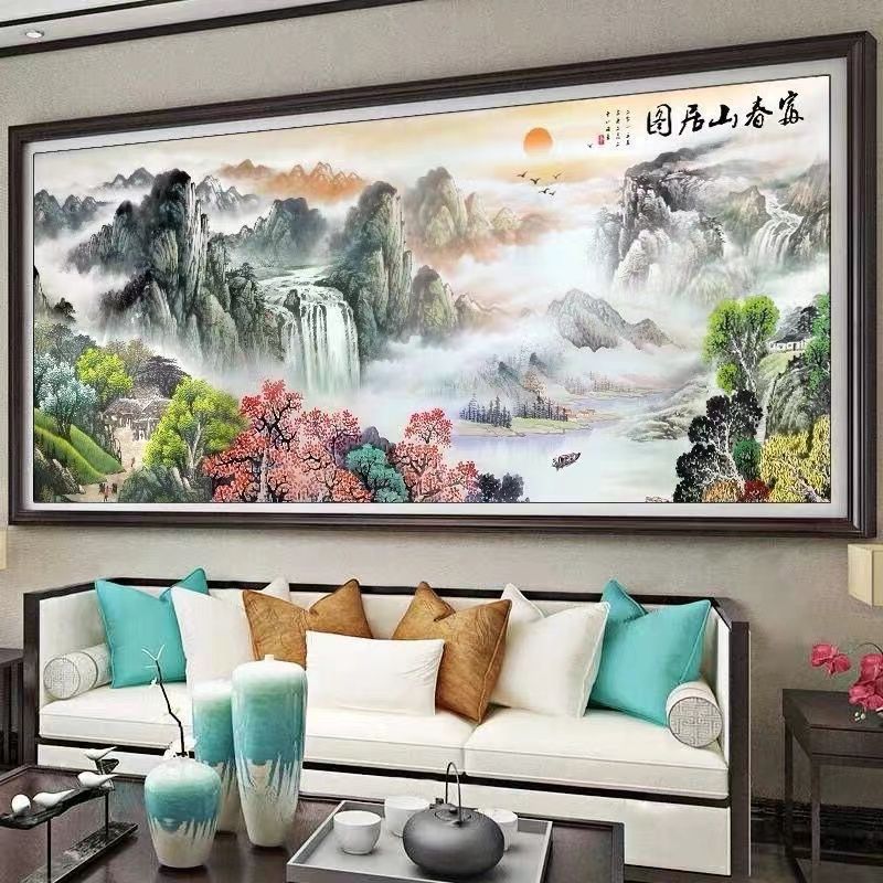 新款钻石画2024满钻客厅富春山居图点贴十字绣手工钻石绣大风景