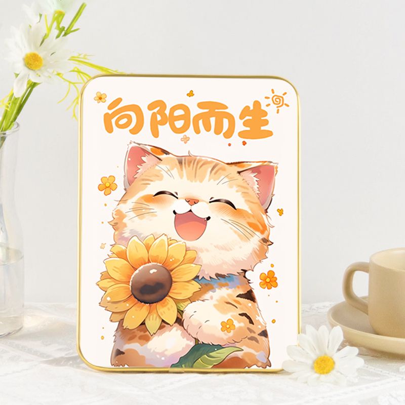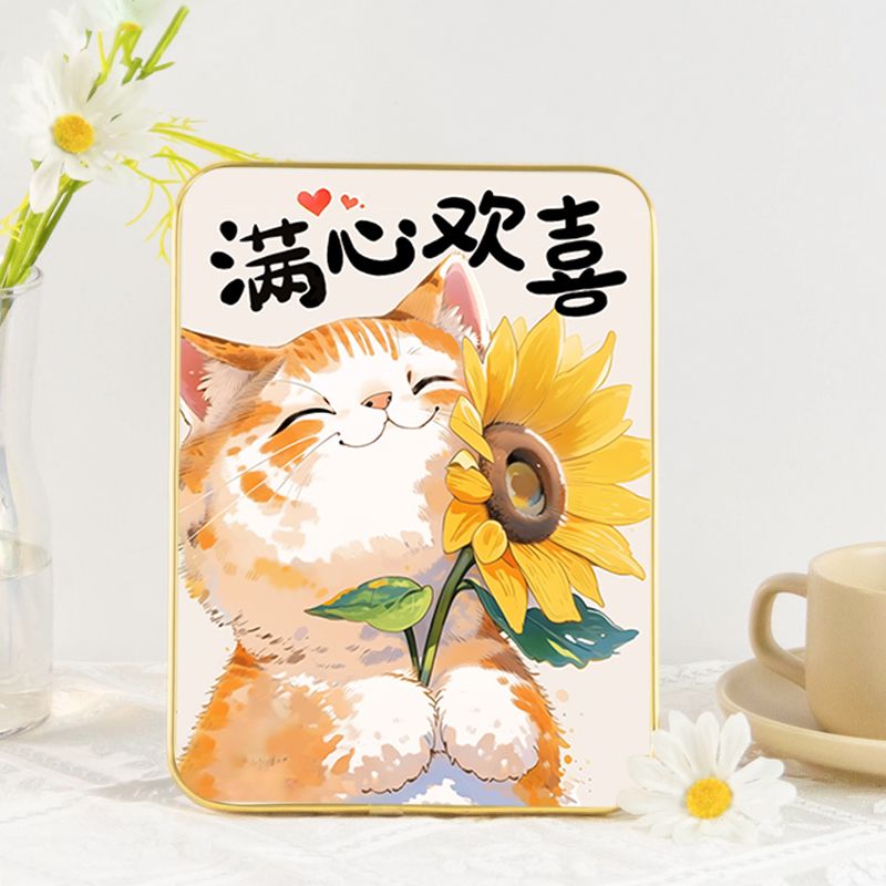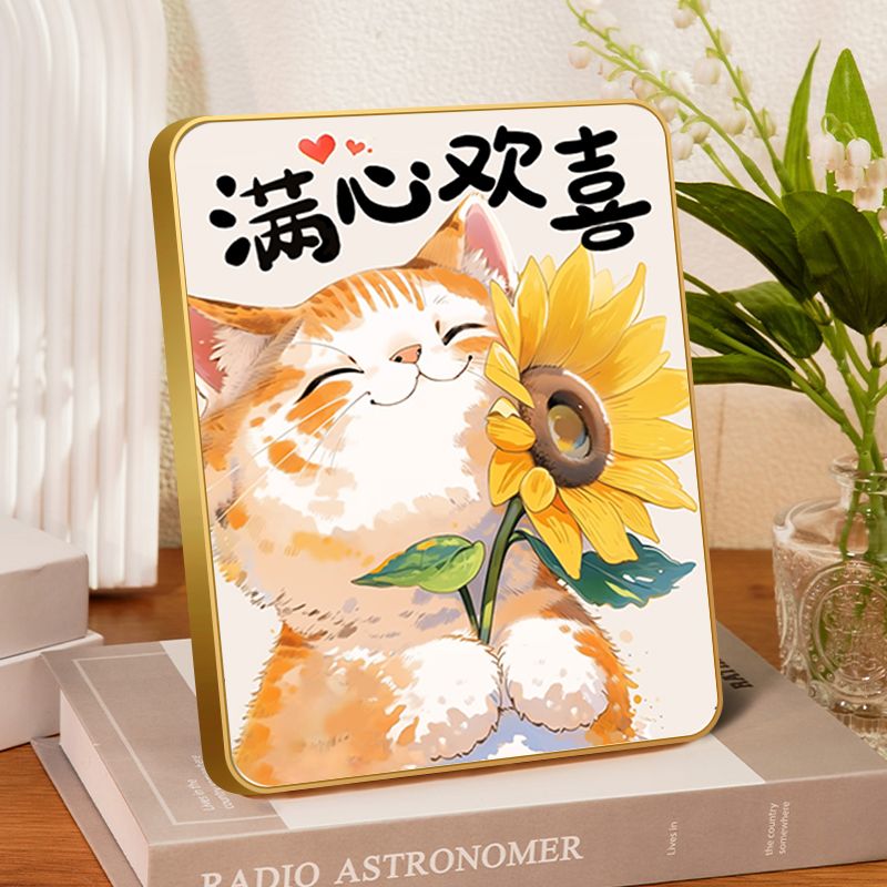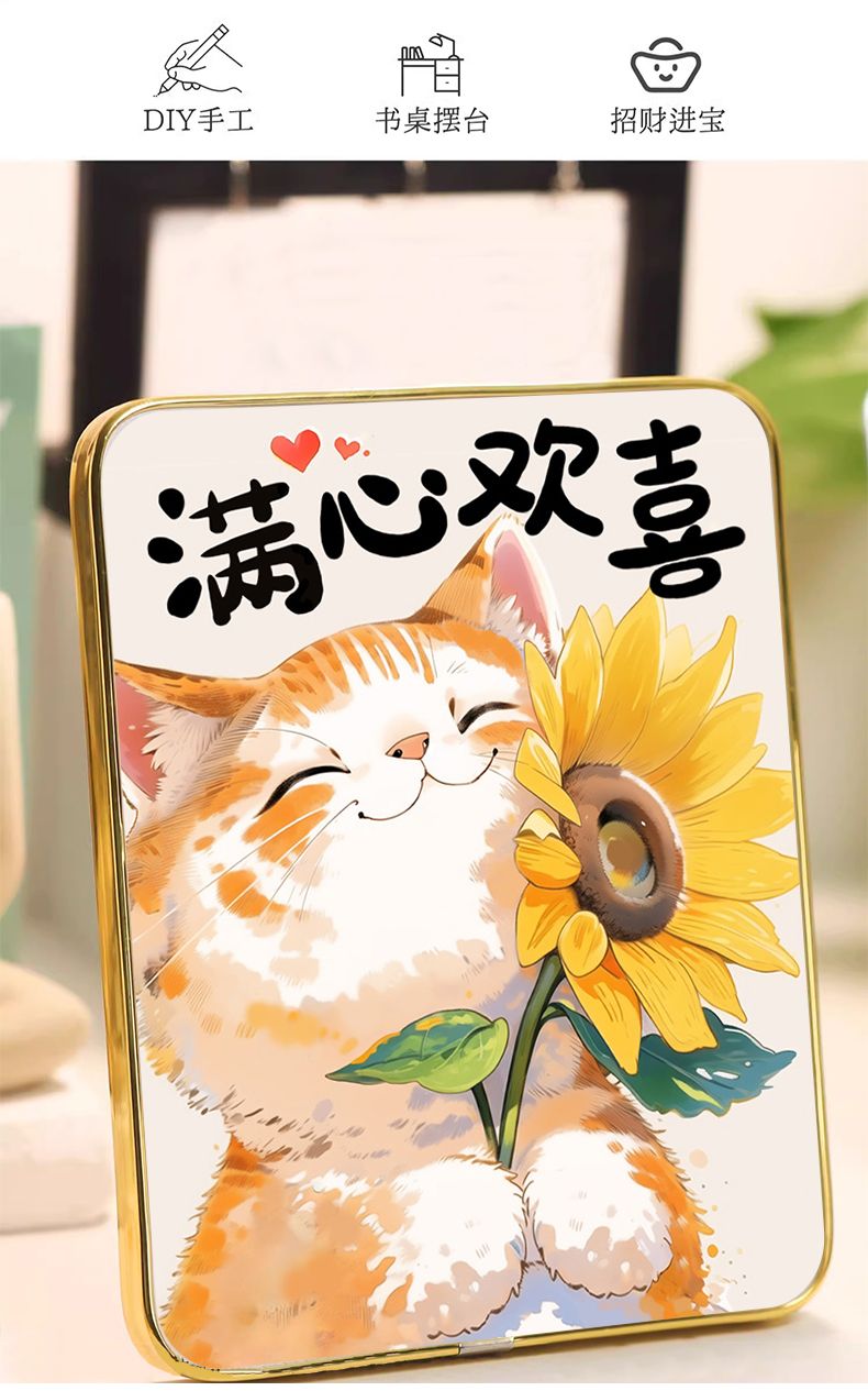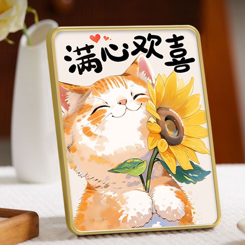 猫咪向日葵钻石画2024新款卡通满钻带框摆台手工diy桌面客厅摆件
