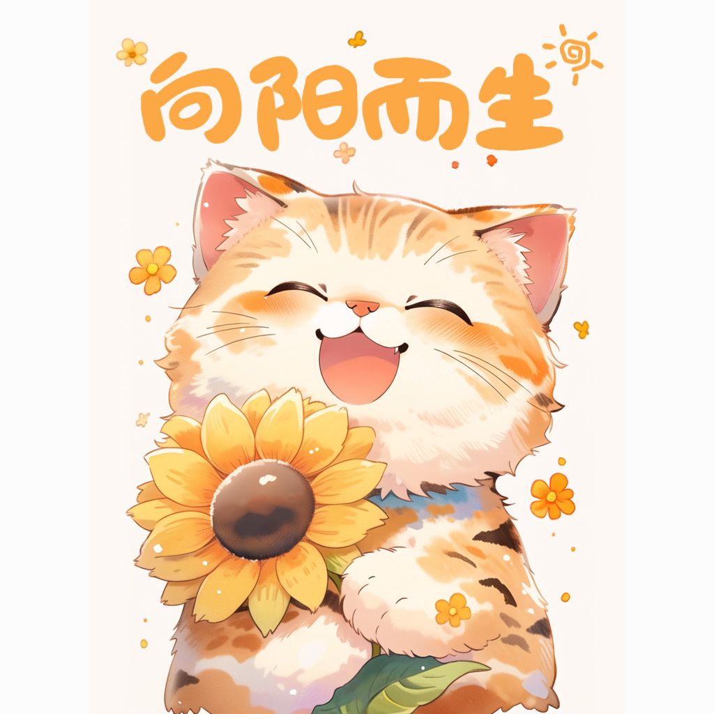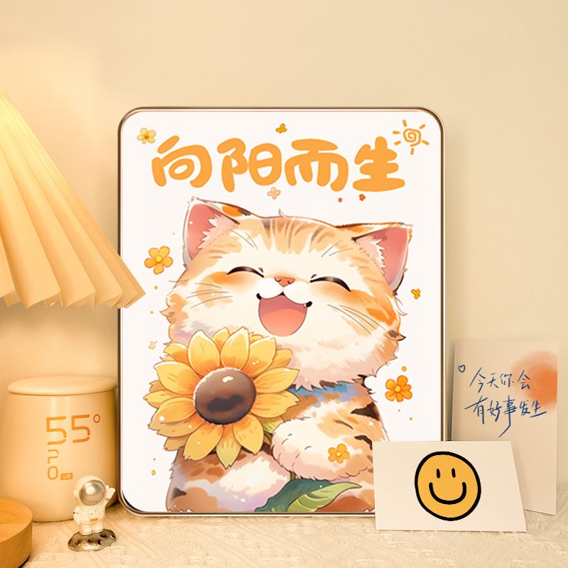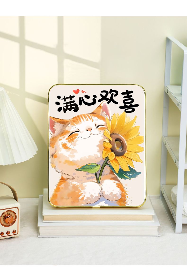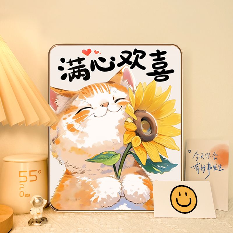 猫咪向日葵钻石画2024新款卡通满钻带框摆台手工diy桌面客厅摆件