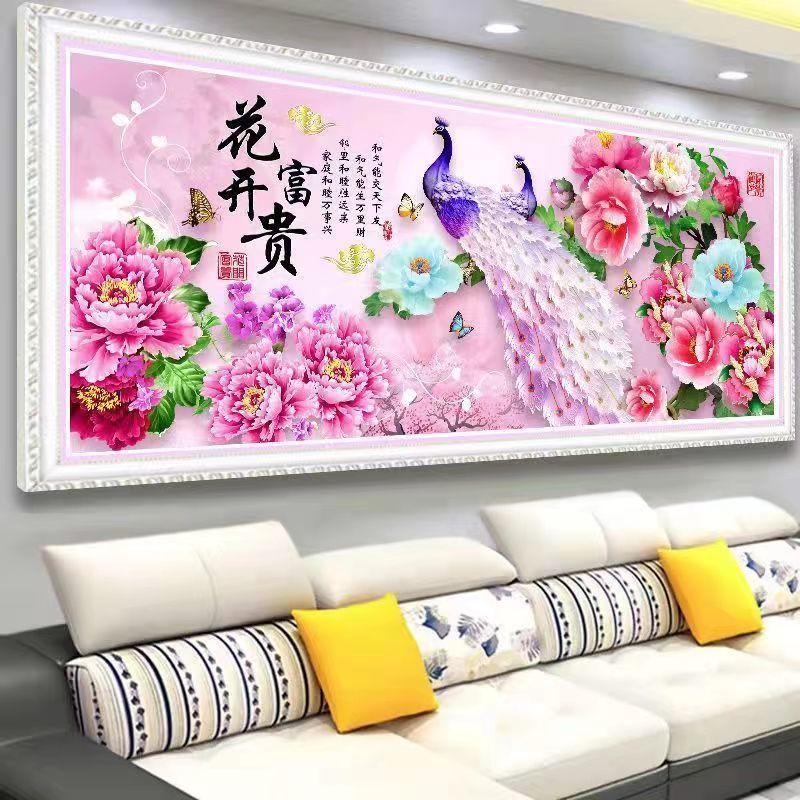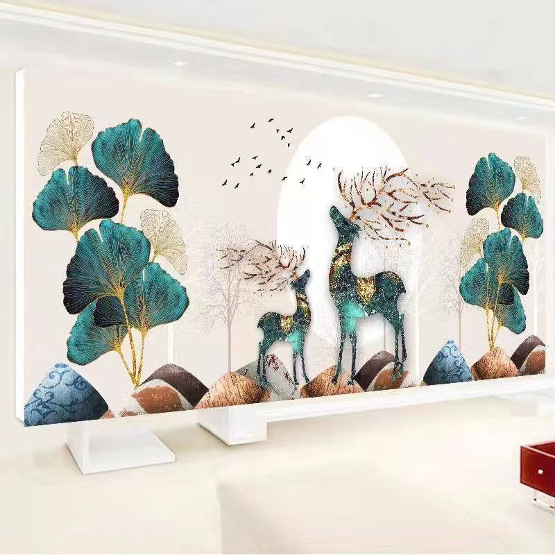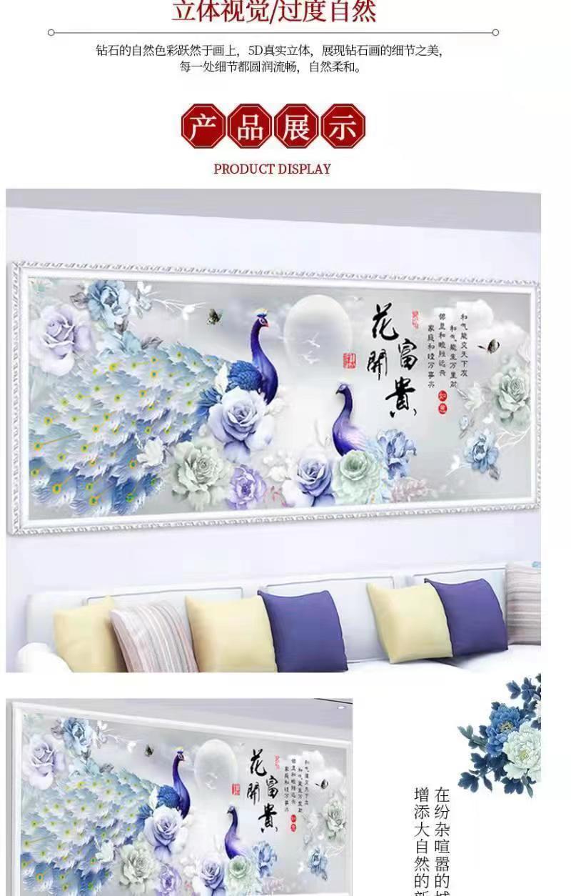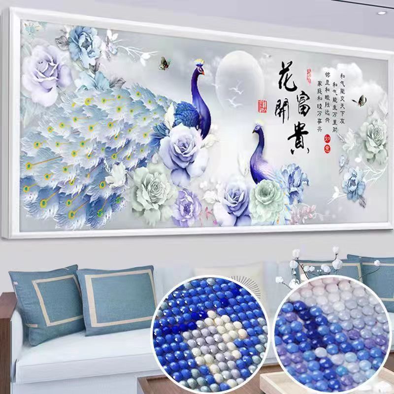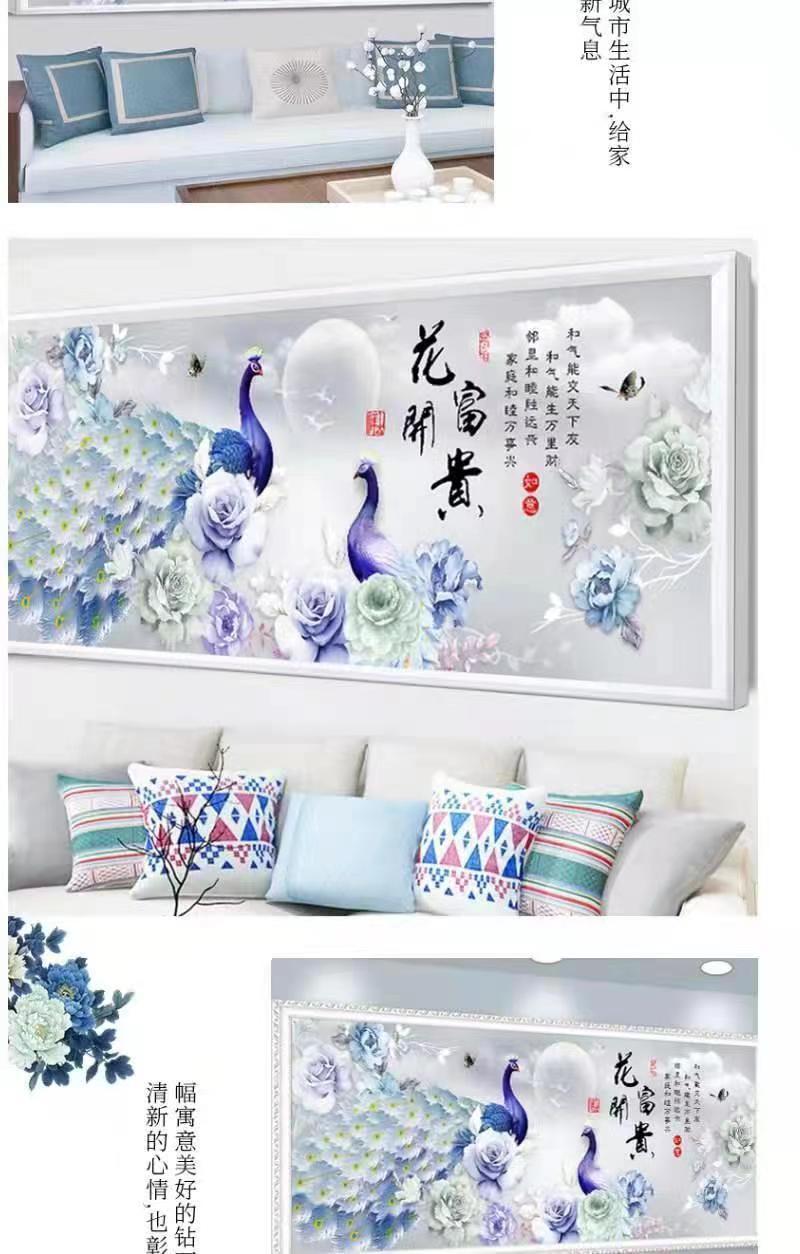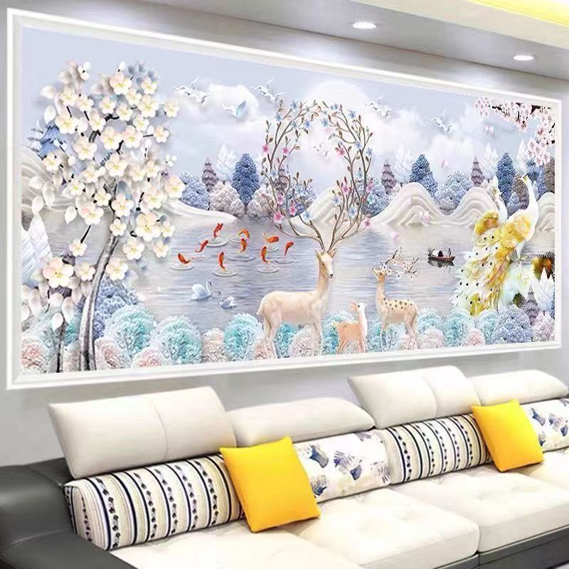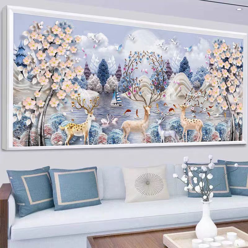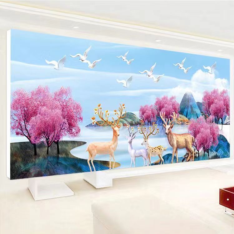 2022新款满钻钻石画发财麋鹿点贴十字绣客厅山水画孔雀简约钻石绣