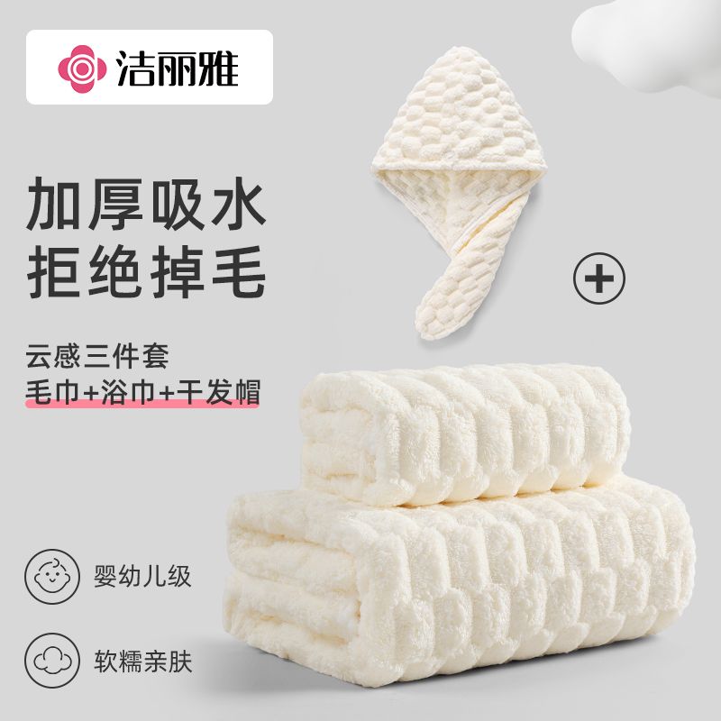 洁丽雅浴巾毛巾套装女家用干发帽三件套男款洗澡柔软吸水不掉毛