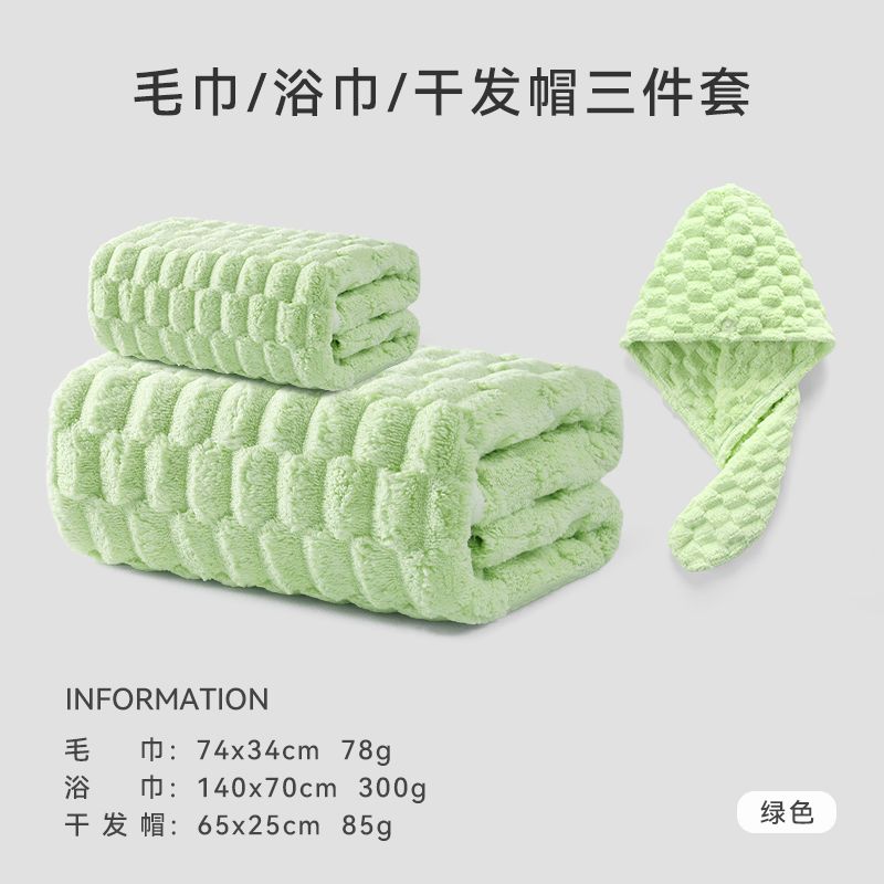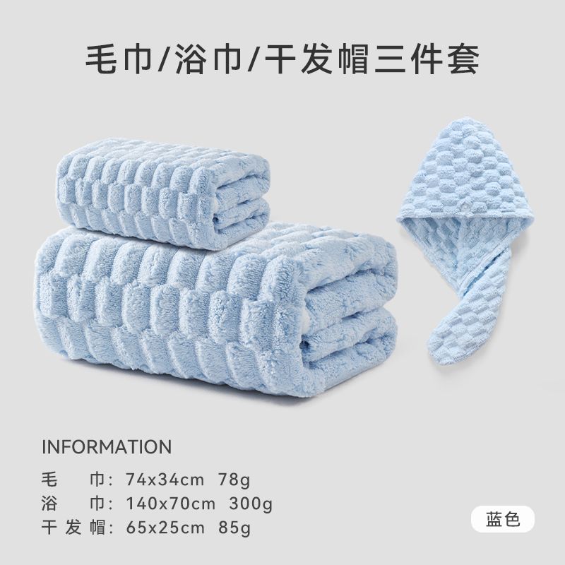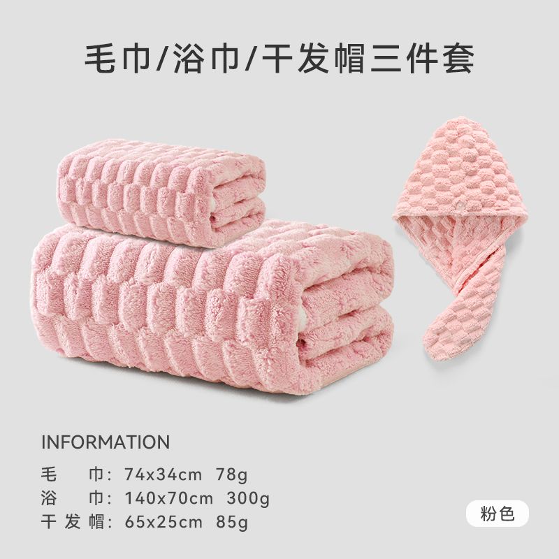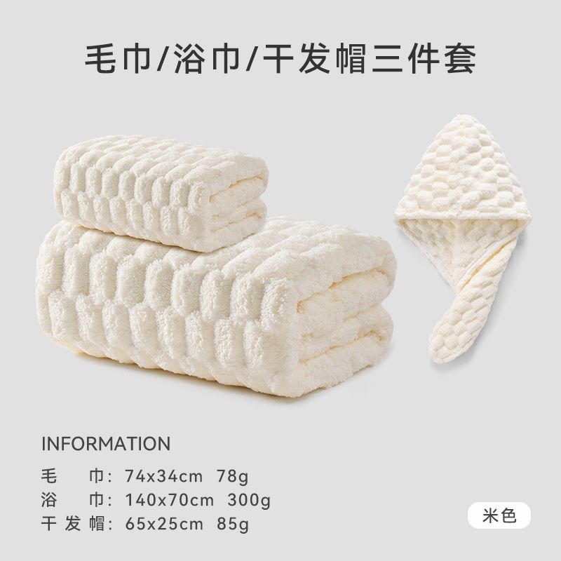 | bath towel + towel + hair-drying cap [class a standard]](浴巾+毛巾+干发帽【A类标准】) | USD $8.66 | 99999 piece available |