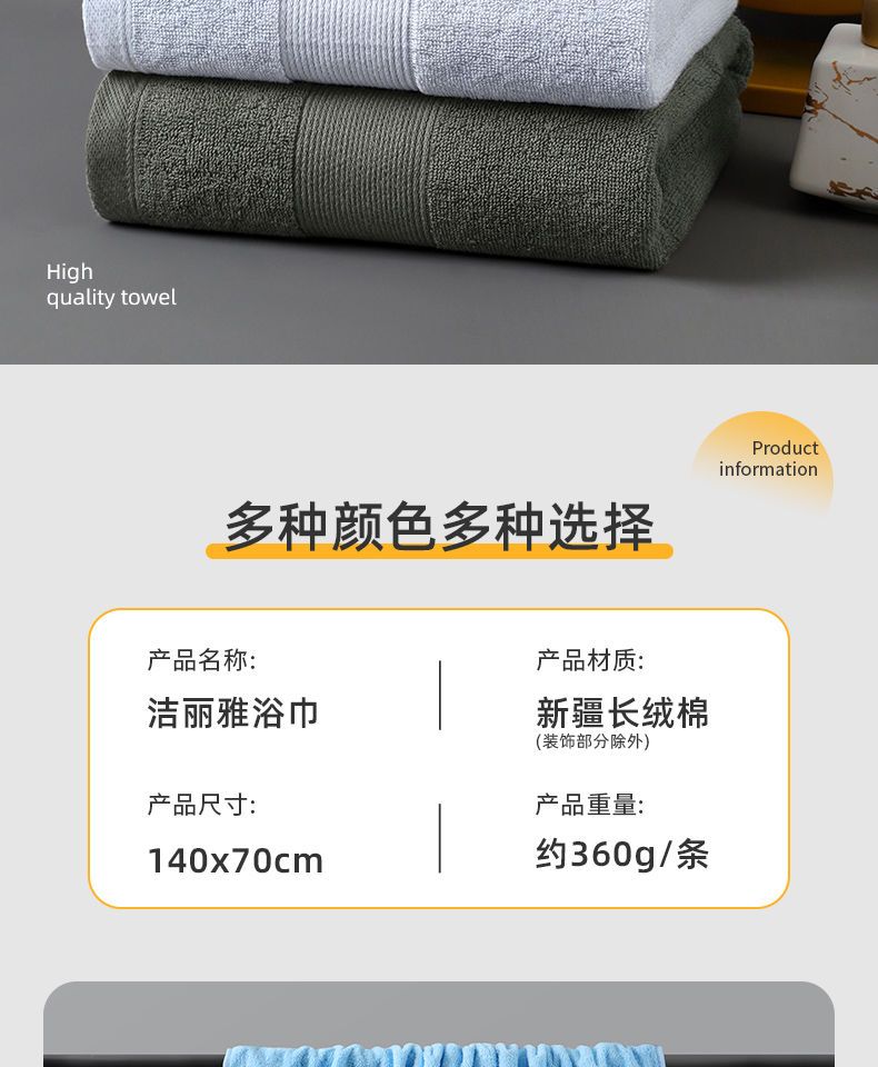洁丽雅纯棉浴巾毛巾套装成人男女全棉洗澡巾不掉毛情侣高档沐浴巾