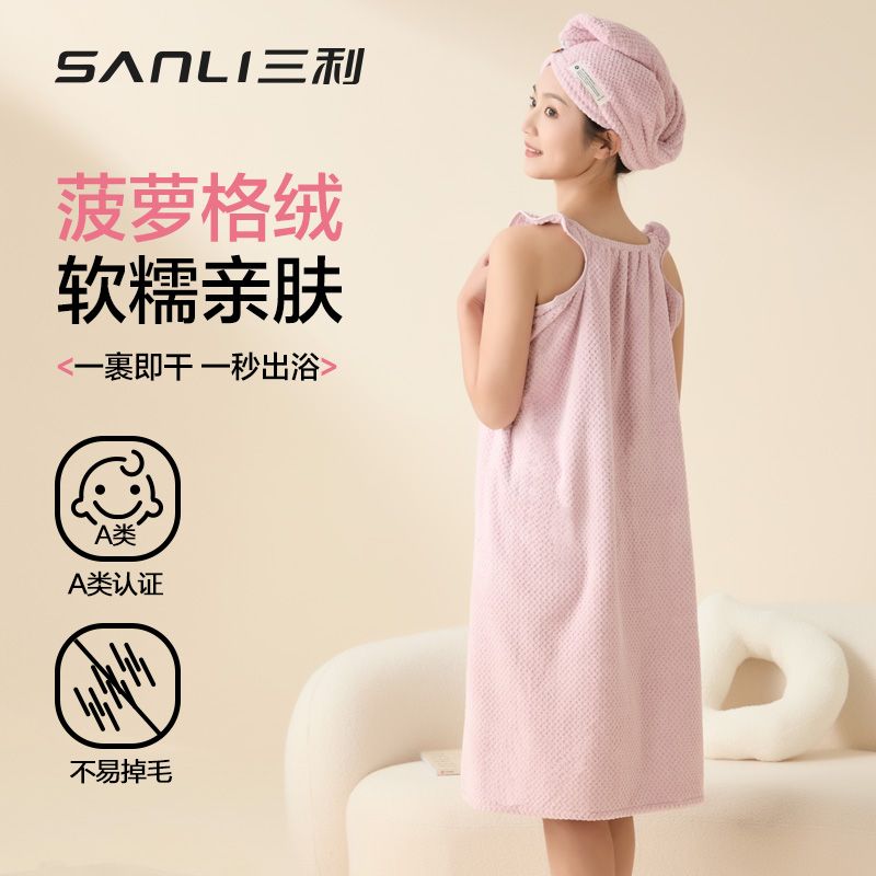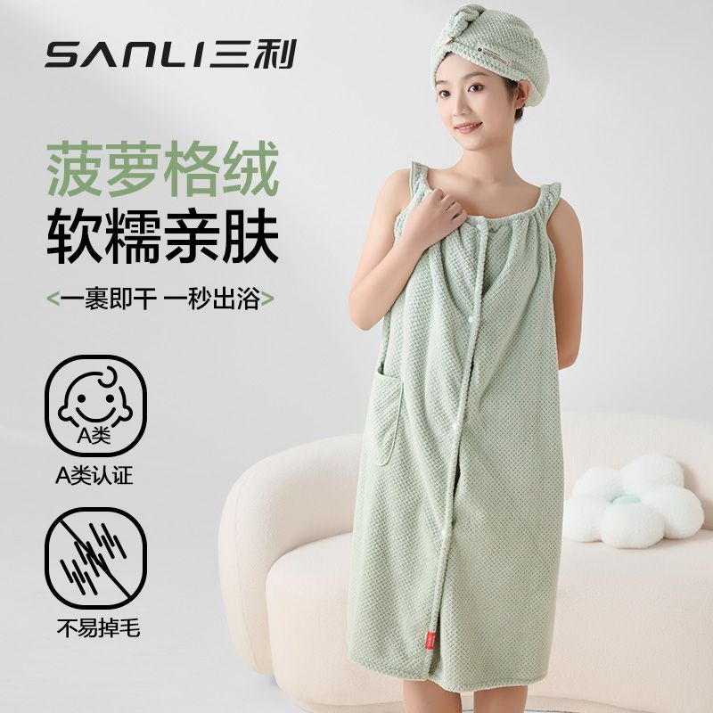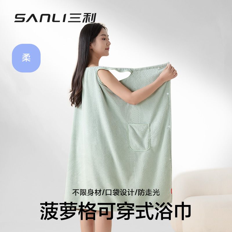 三利浴裙女可穿可裹吊带浴巾比纯棉吸水加厚成人抹胸浴袍毛巾套装