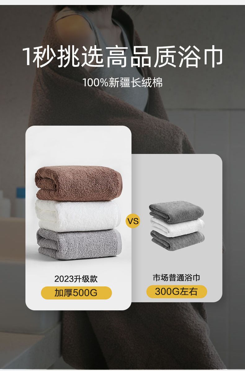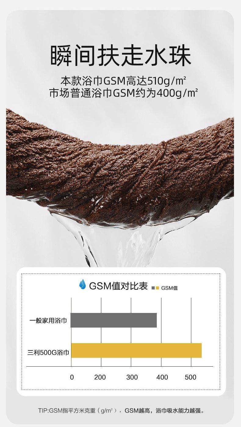 三利纯棉浴巾家用女吸水速干不掉毛全棉男大号加厚裹巾毛巾三件套