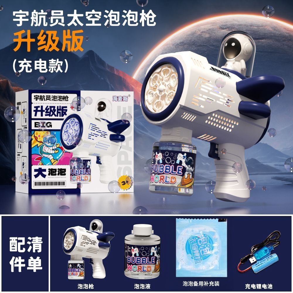 2024新款网红儿童泡泡泡机太空人灯光全自动泡泡枪玩具六一节礼物