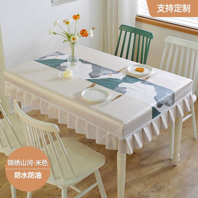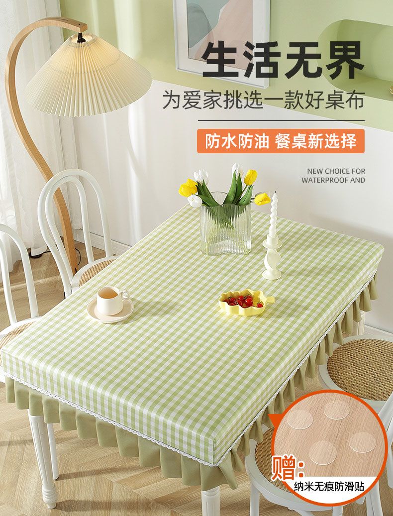 桌布防水防油全包家用长方形桌面布免洗防尘茶几餐桌布套罩小清新