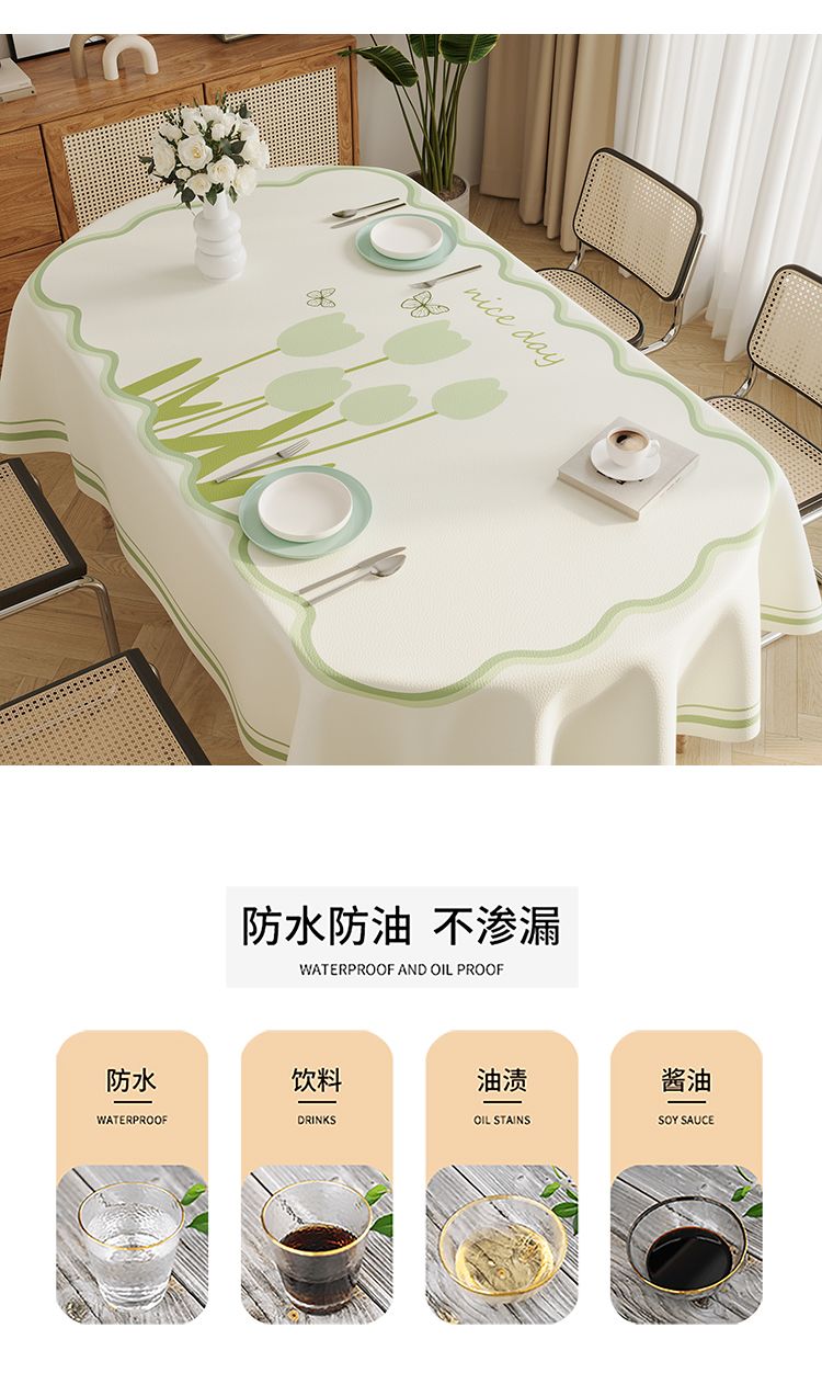 椭圆餐桌布防水免洗轻奢高级感网红2024新款长方形适用桌布台面垫