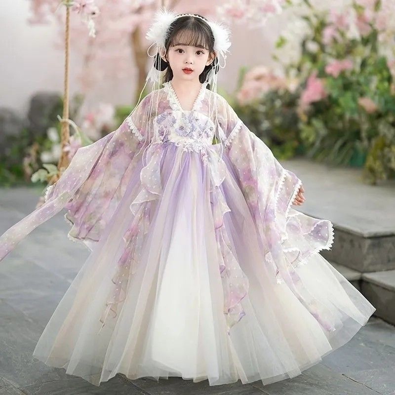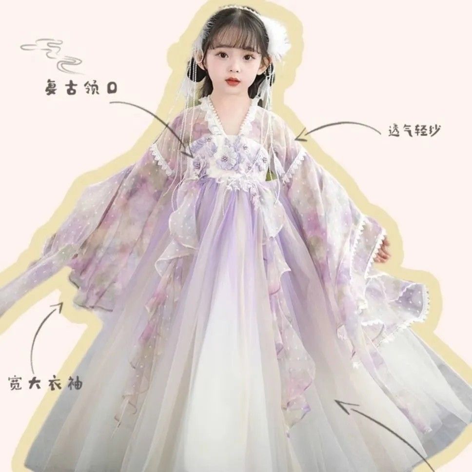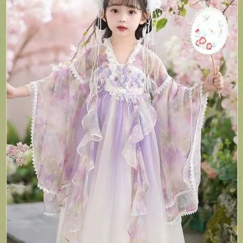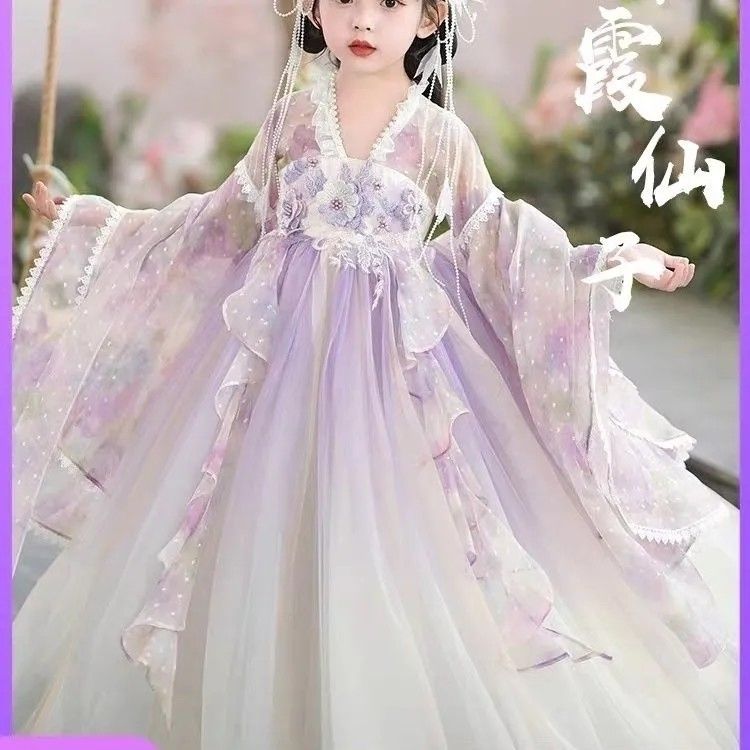 紫霞仙子汉服原创女童花神汉服中国风小女孩超仙连衣裙襦裙夏薄款