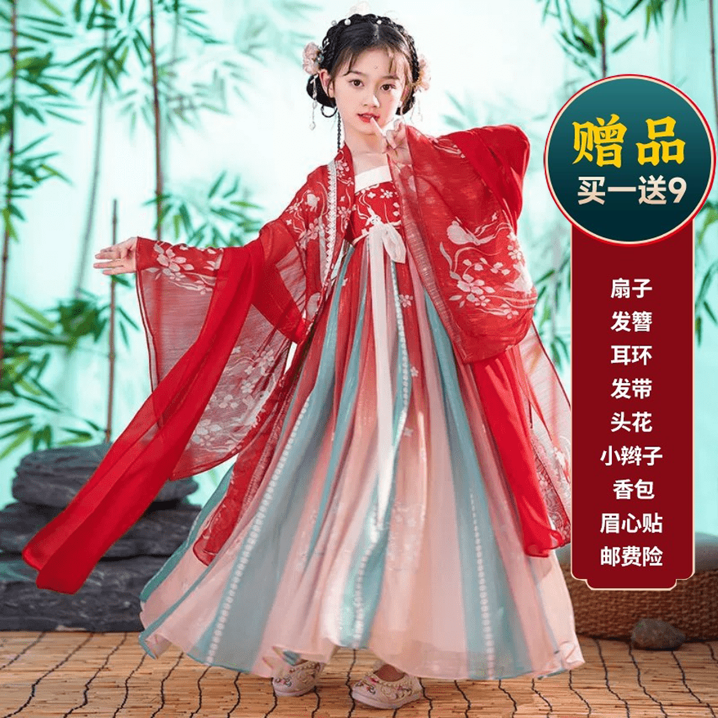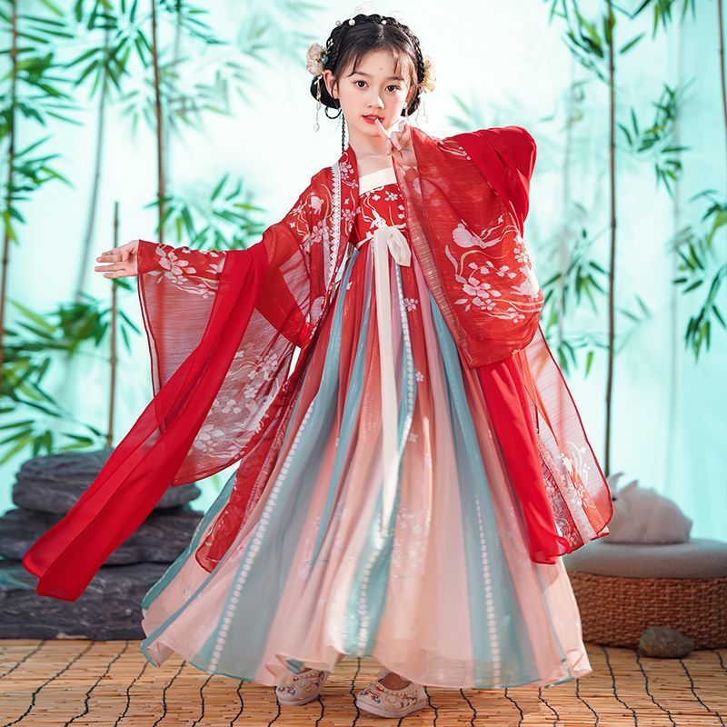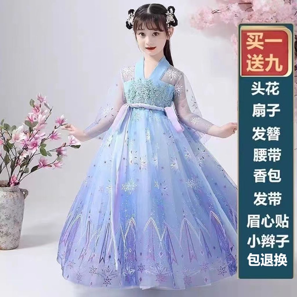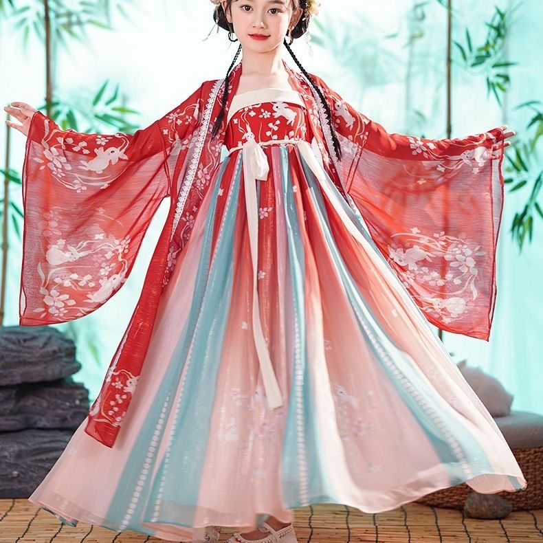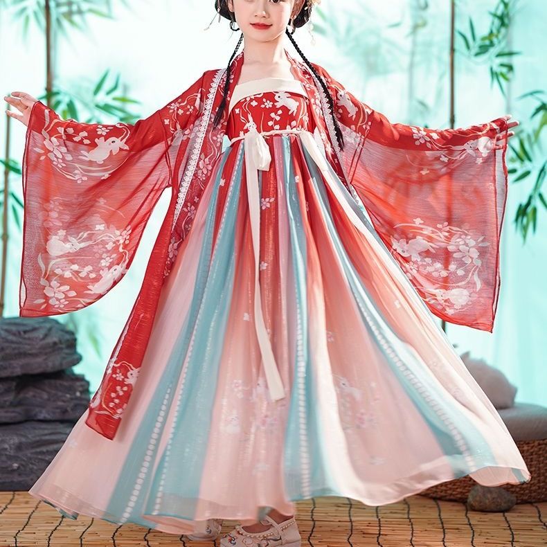 汉服女童夏款中国新款古风女孩连衣裙唐装儿童超仙古装夏季