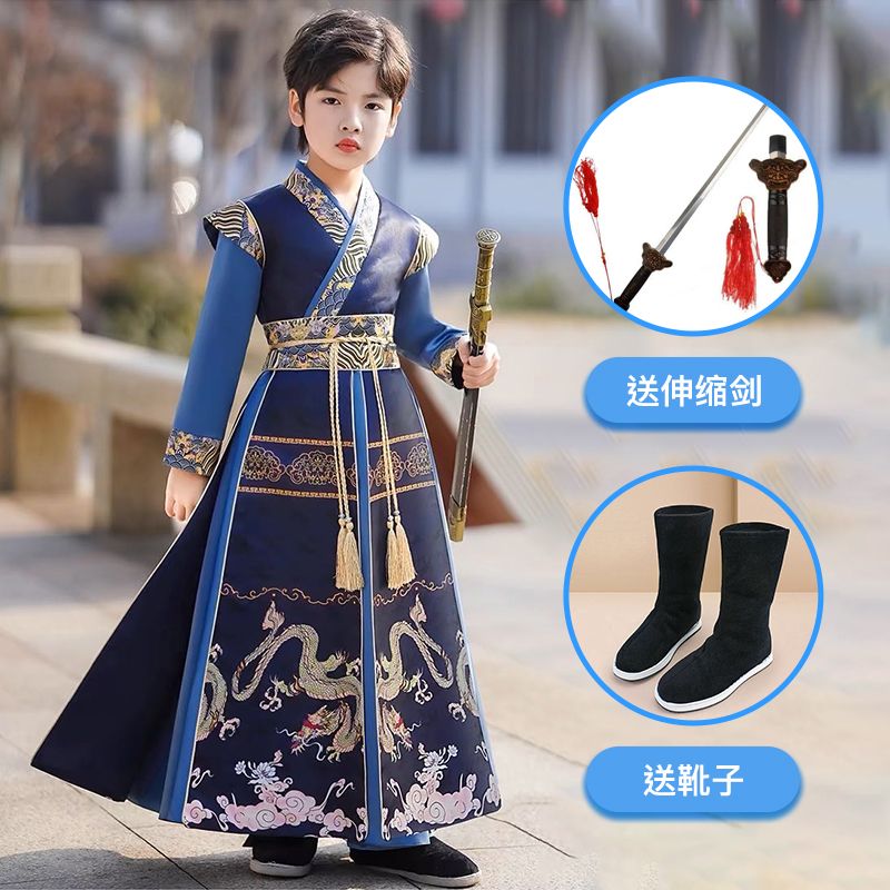 男童汉服2024新款儿童演出服古风唐装男孩古装帅气国学春秋公子