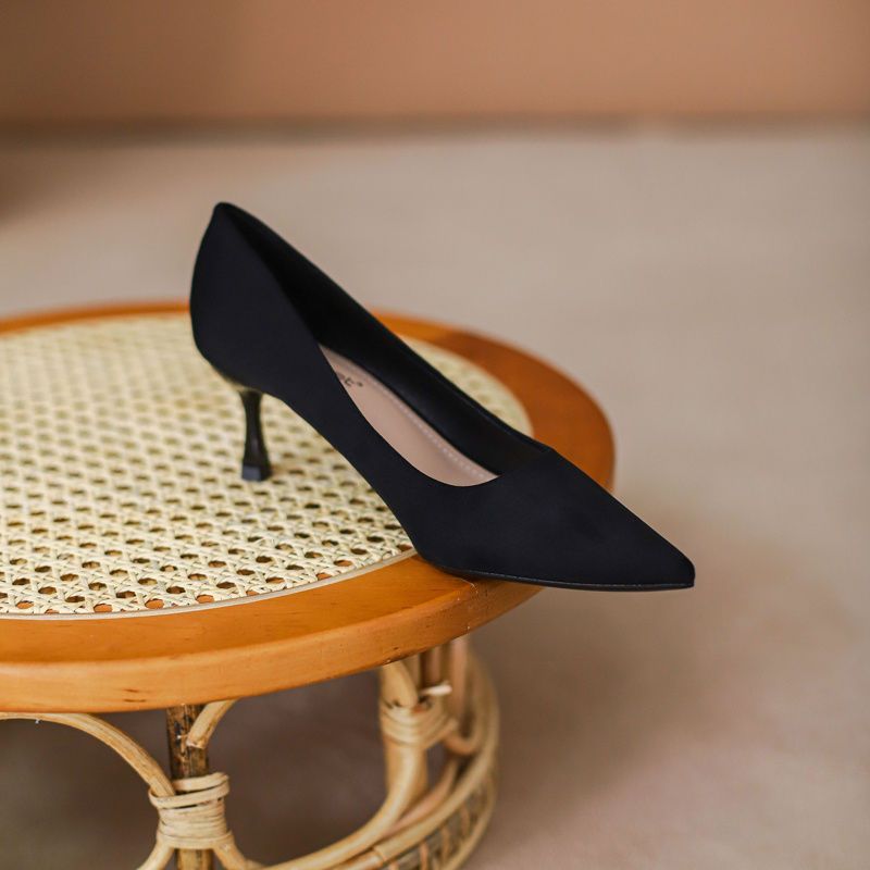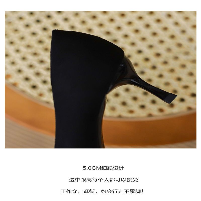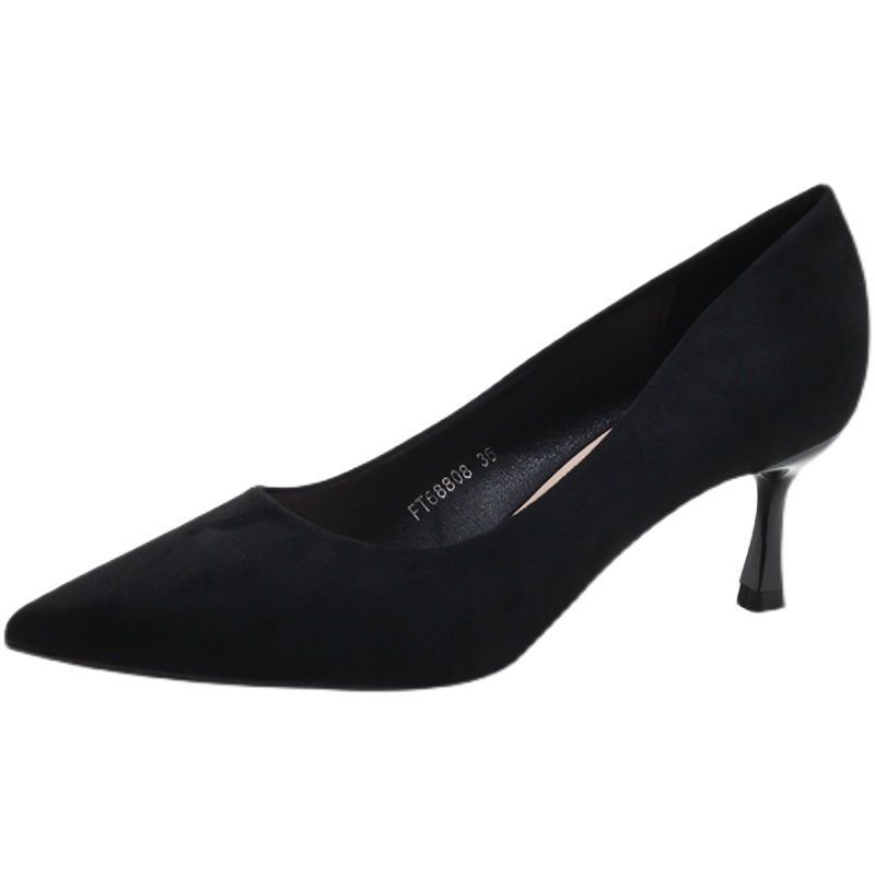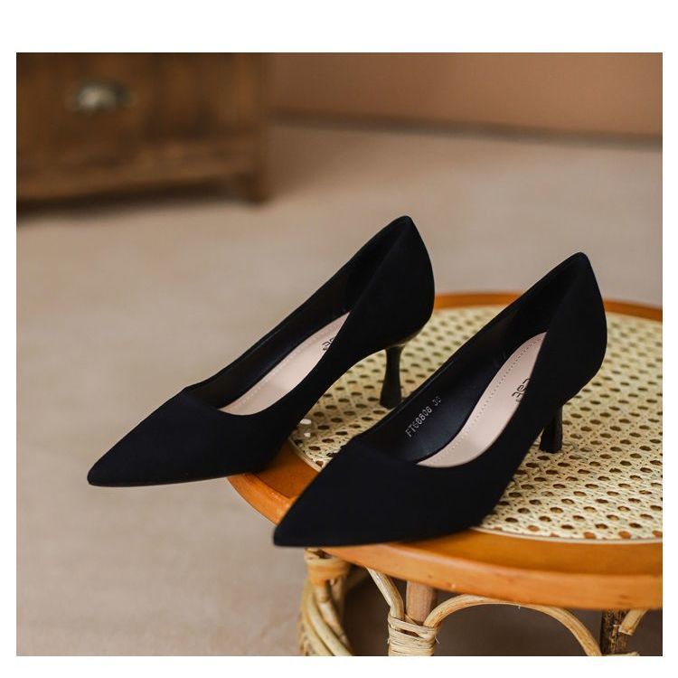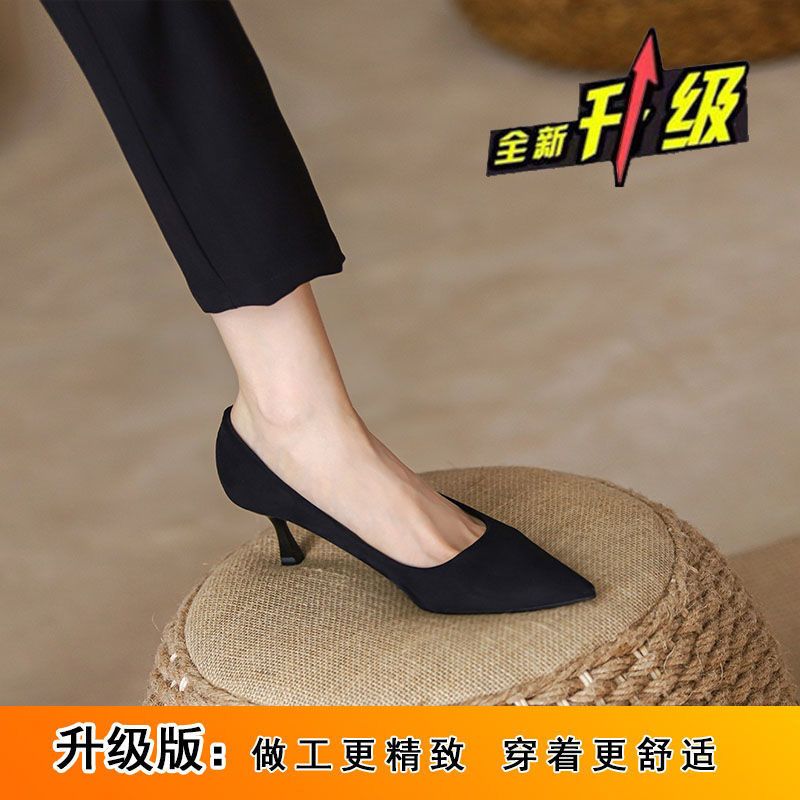 高跟鞋女细跟2022春夏新款气质女神范绒面黑色单鞋面试职业工作鞋