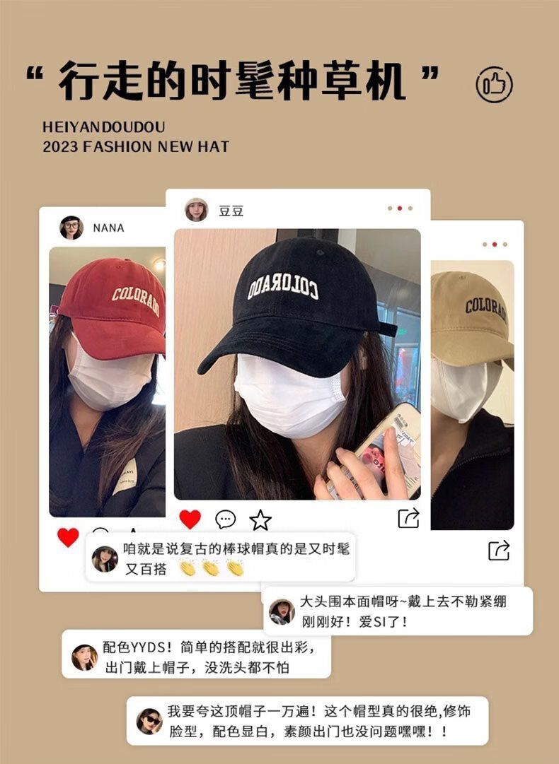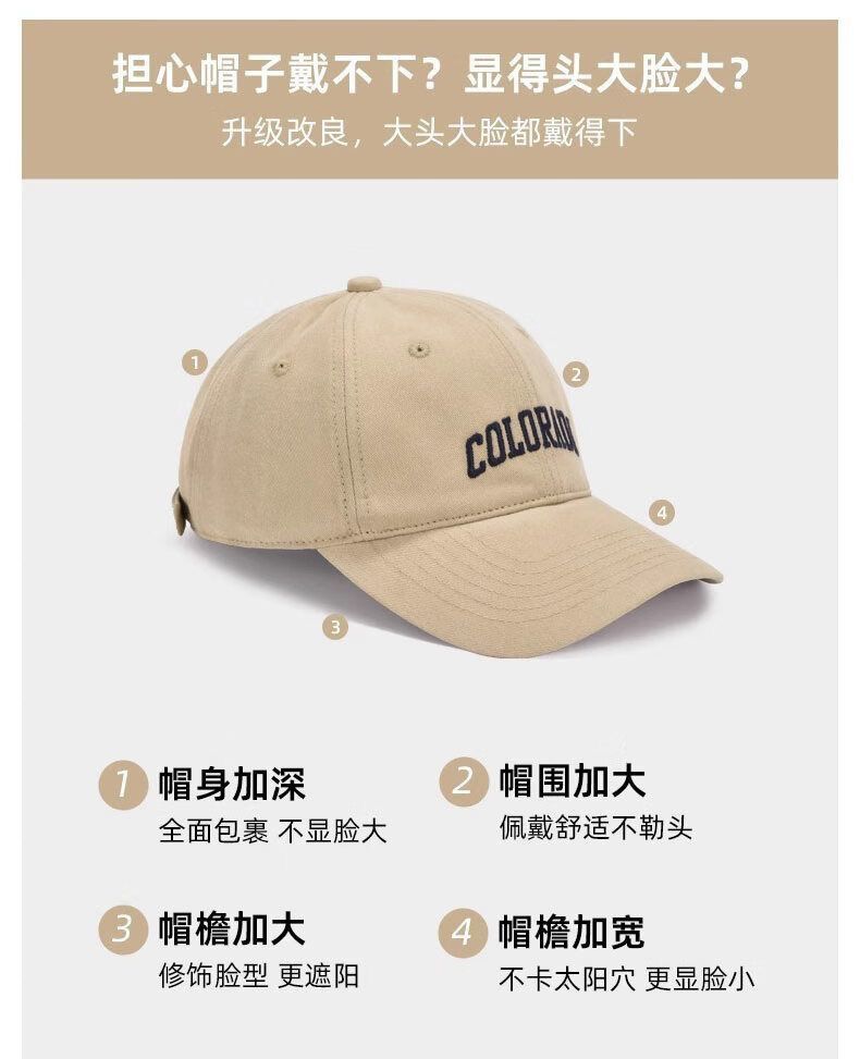 大头围深顶宽檐显脸小韩版字母鸭舌帽韩版复古刺绣百搭秋冬棒球帽