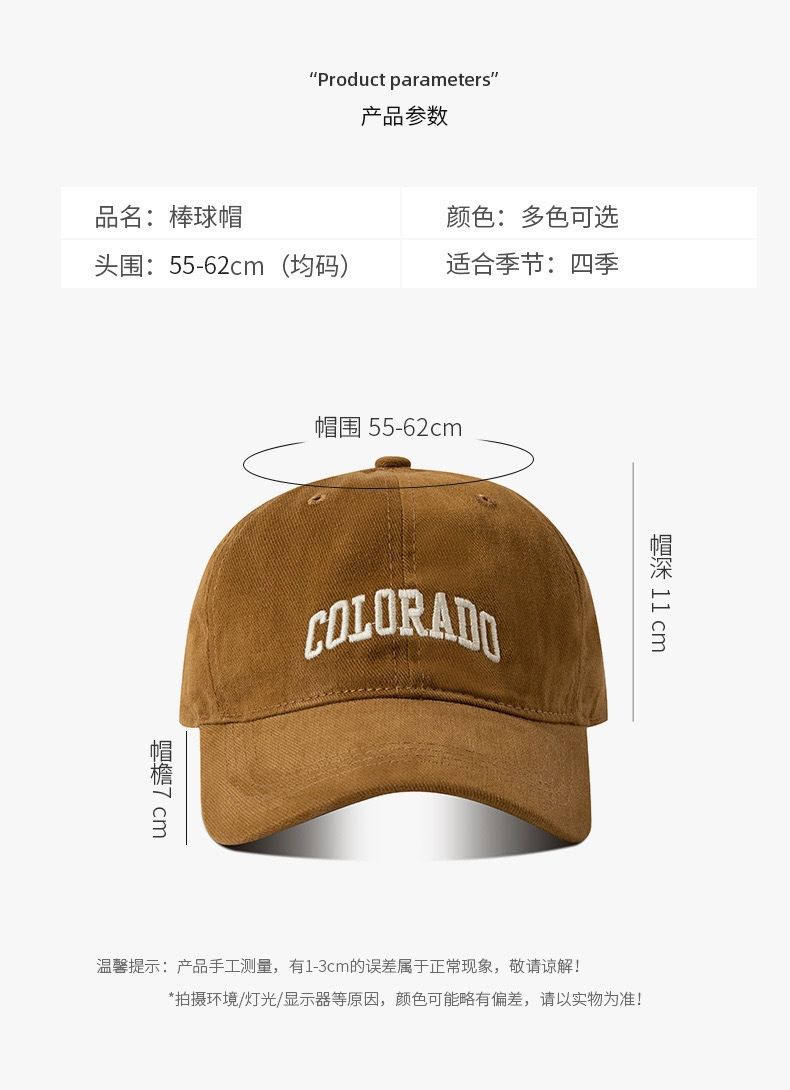 帽檐刺绣子女深顶大头帽子新款字母棒球帽百搭遮阳显脸防晒鸭舌帽