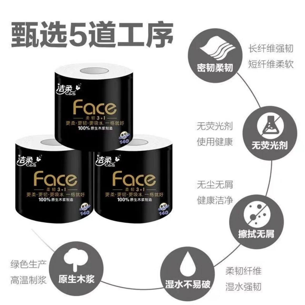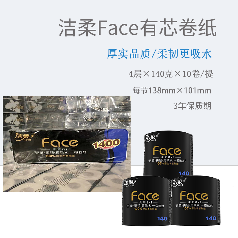 洁柔卷纸卫生纸巾实惠140克家用厕所厕纸手纸批发有芯大卷筒纸装z