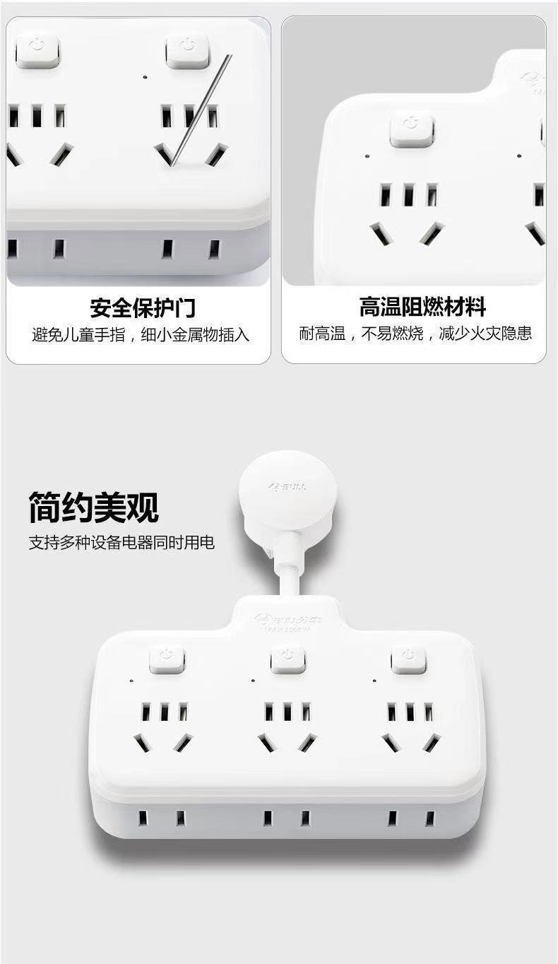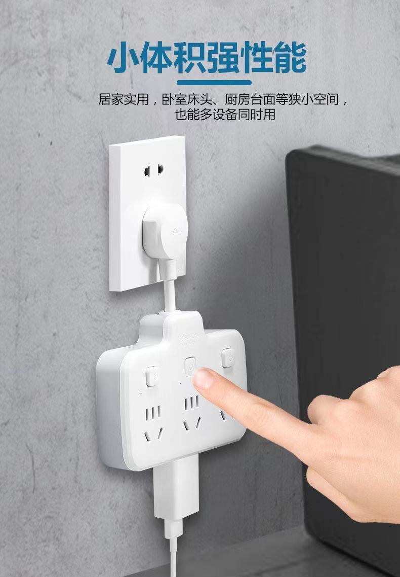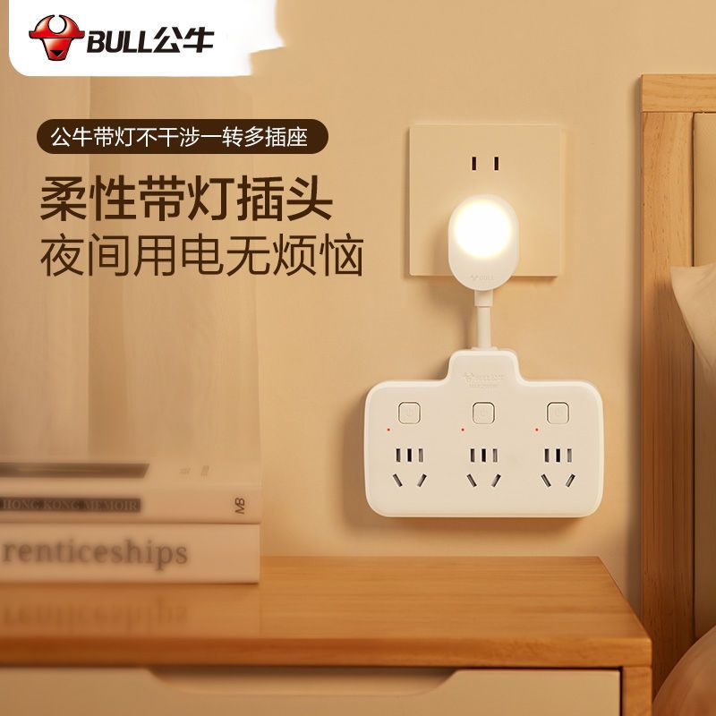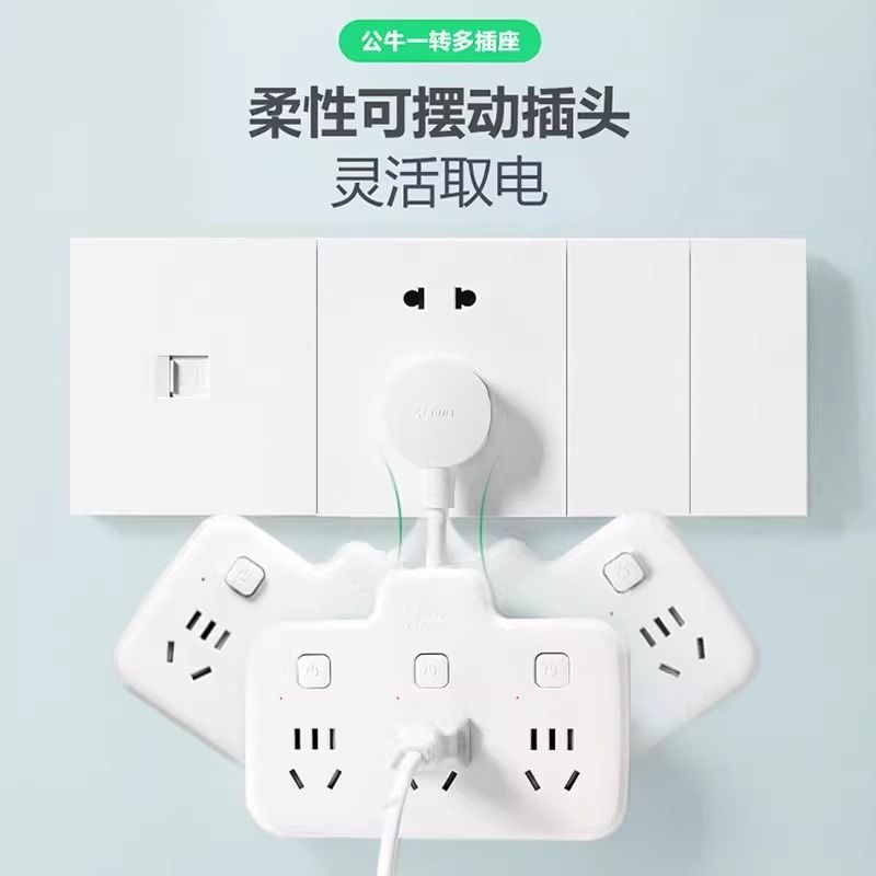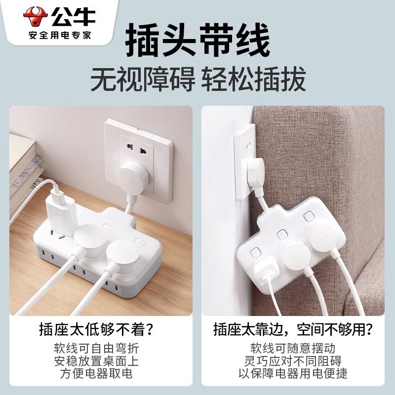 公牛柔性转换器品字型插座多功能线板短线多孔USB快充一转多插排