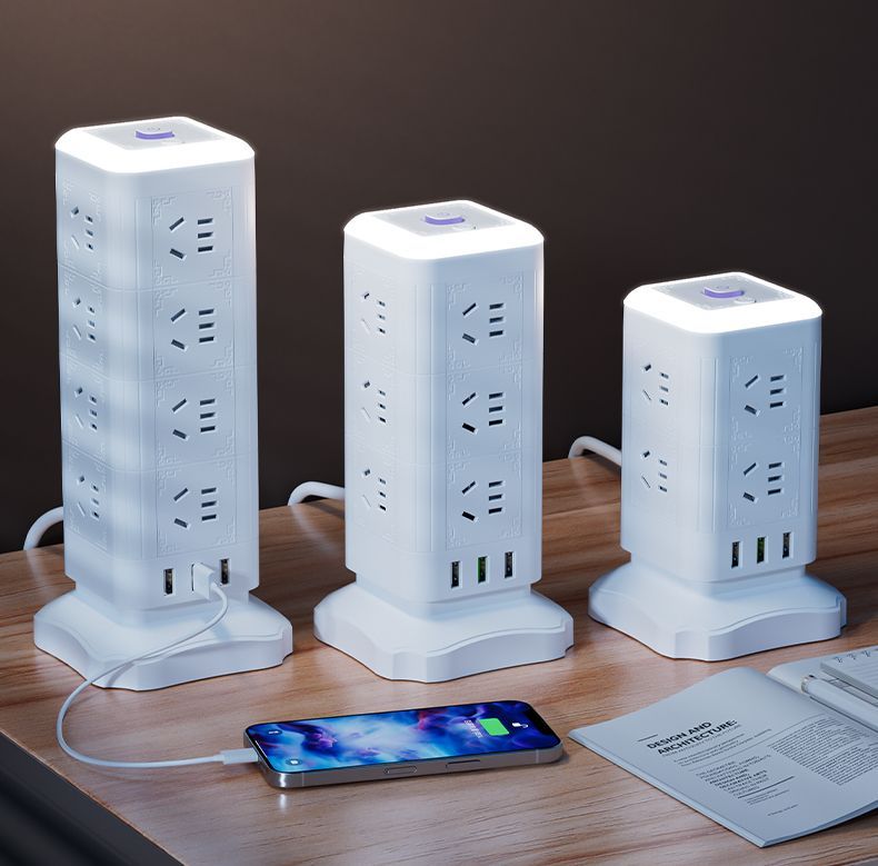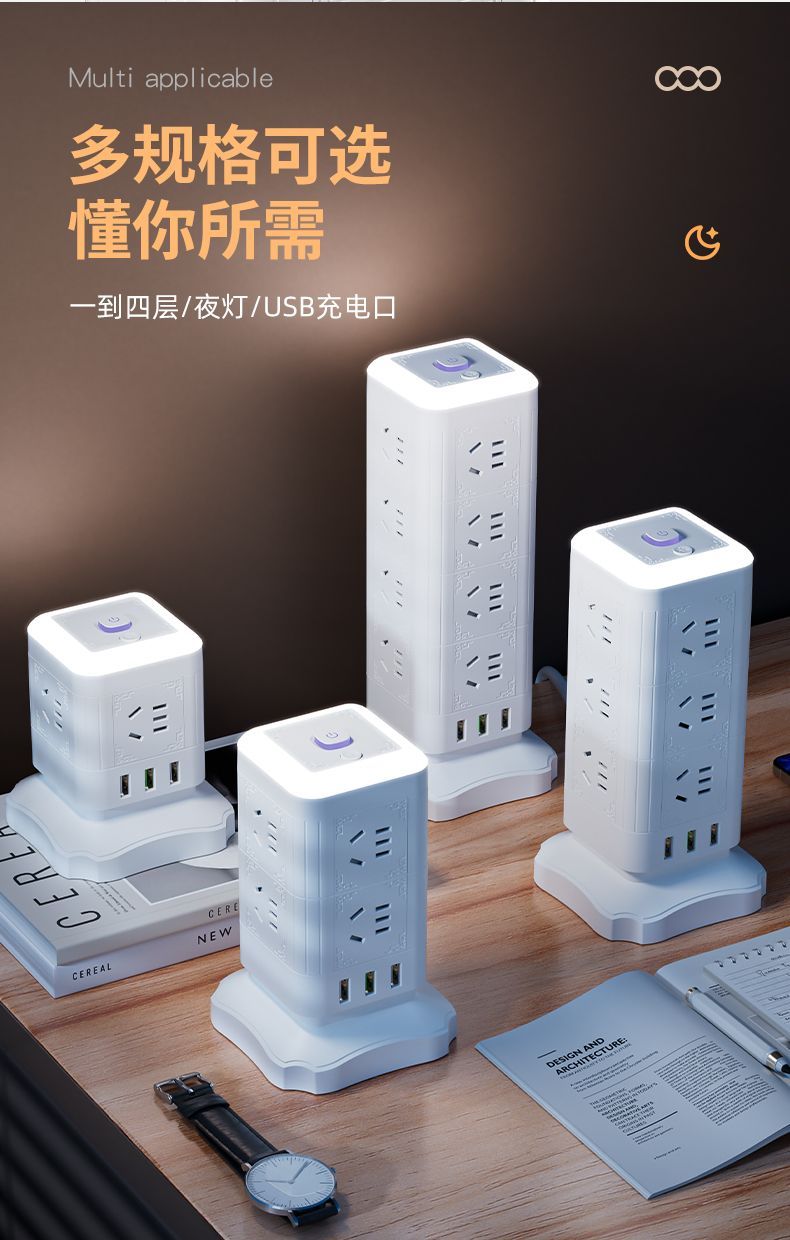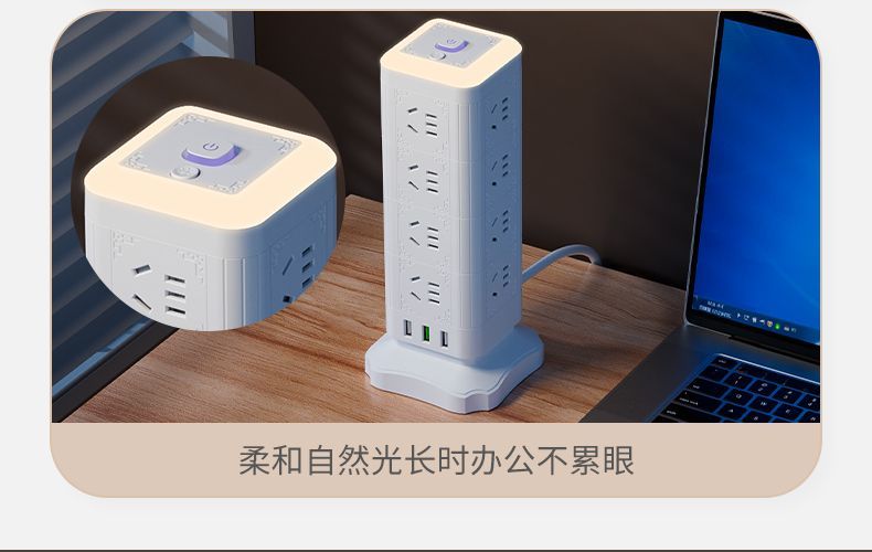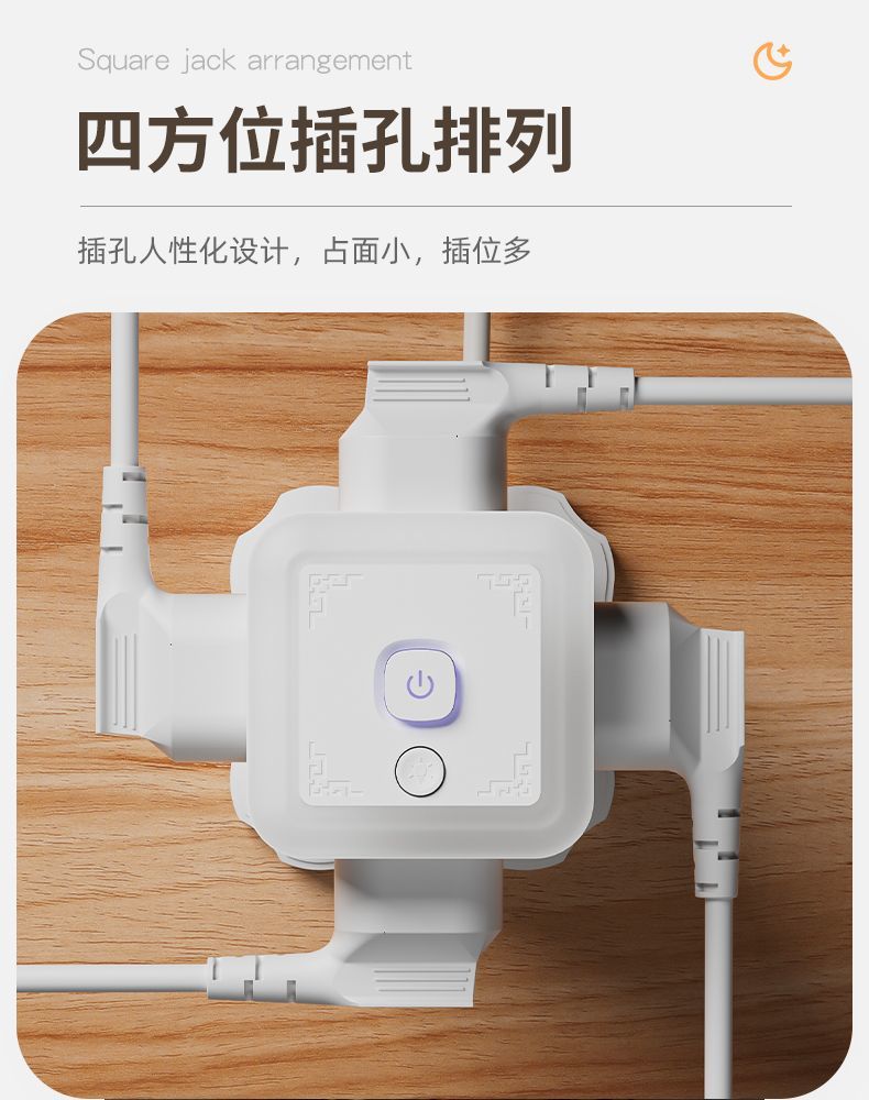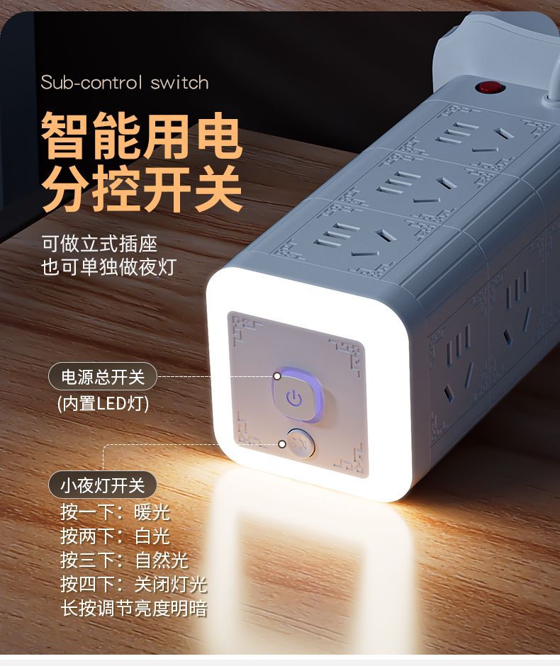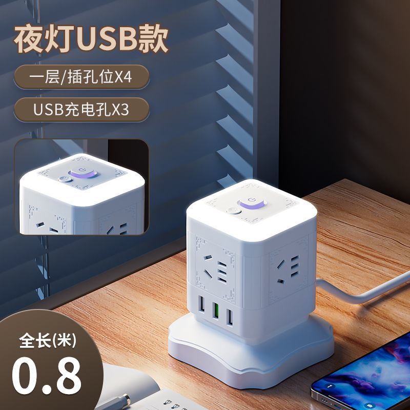 雅兰仕立式魔方插座usb快充多功能转换家用小夜灯多孔排插防过载