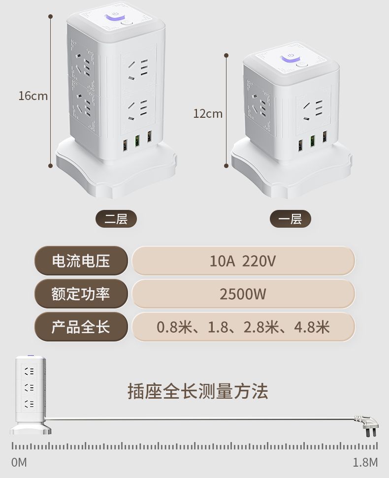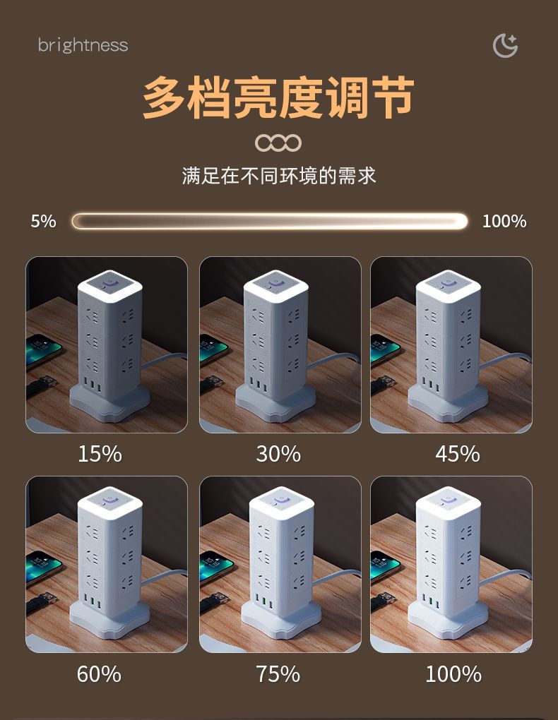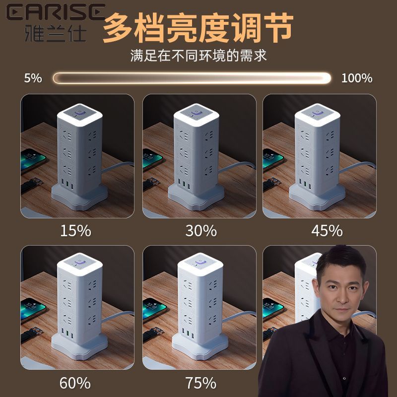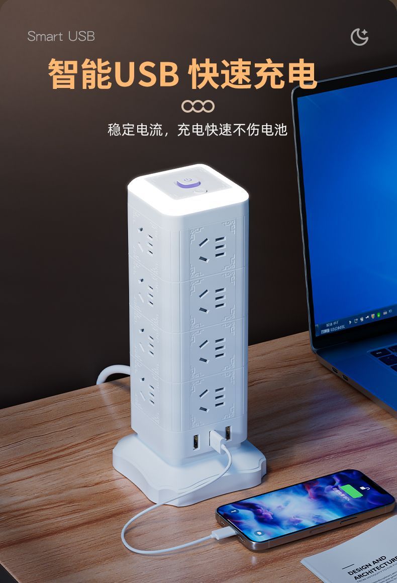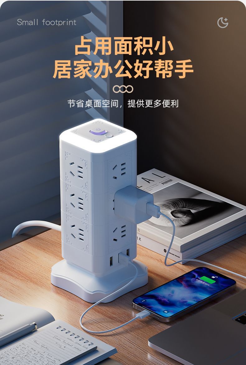 雅兰仕立式魔方插座usb快充多功能转换家用小夜灯多孔排插防过载
