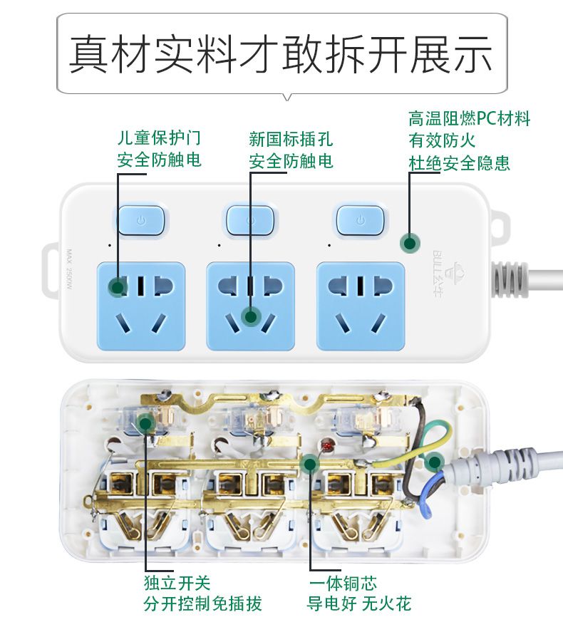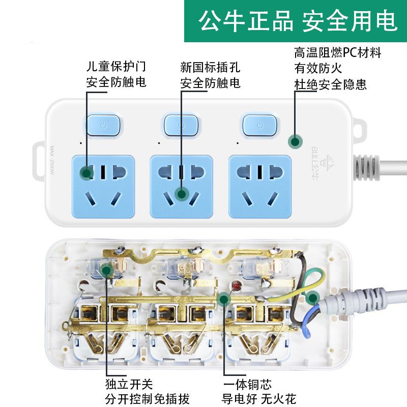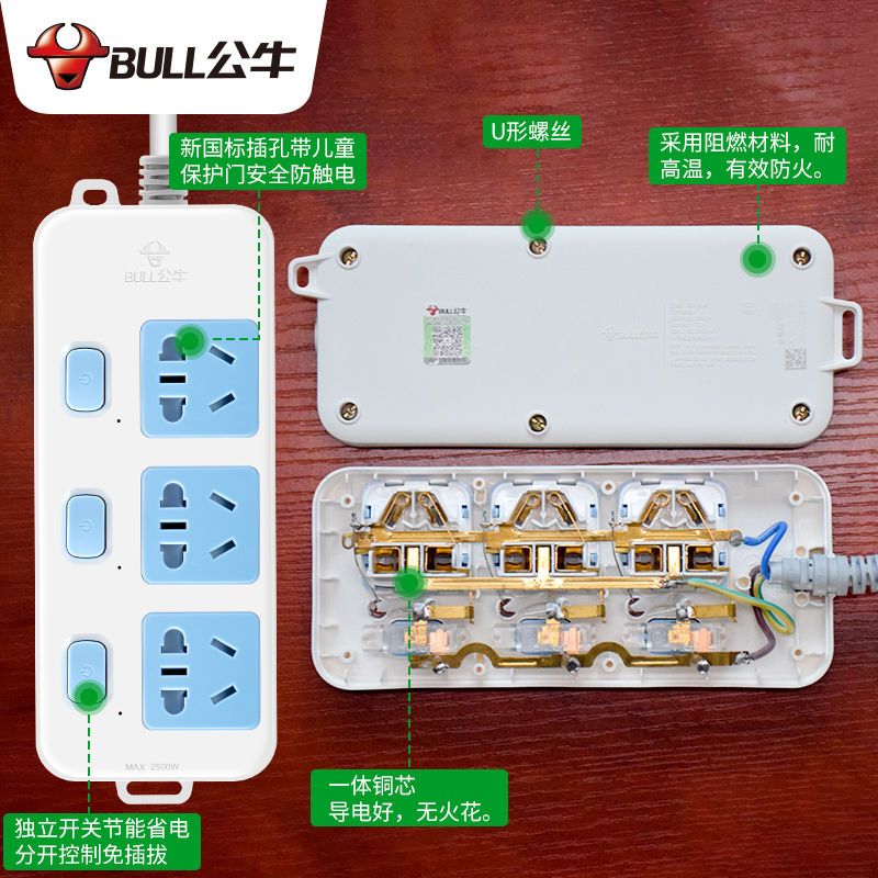 公牛插座面板多孔正品排插插板带线长线家用独立开关拖线板接线板