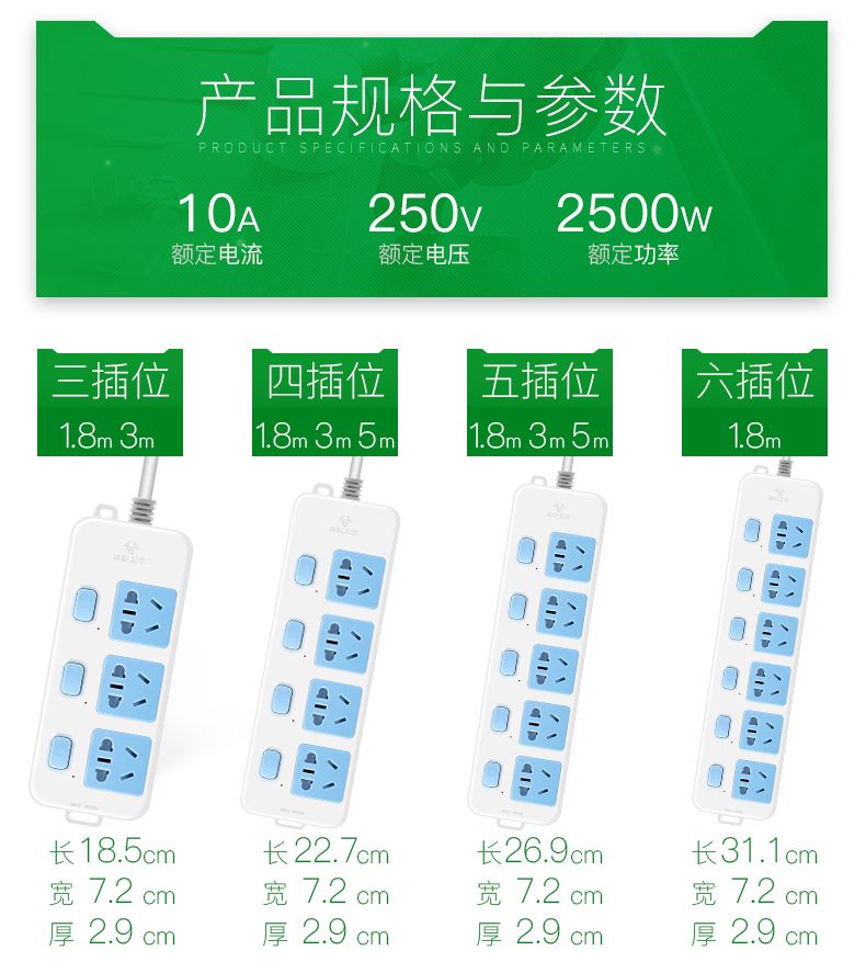 | 1.8 m independent switch six plug-317(1.8米独立开关六插-317) | USD $10.54 | 99999 piece available |