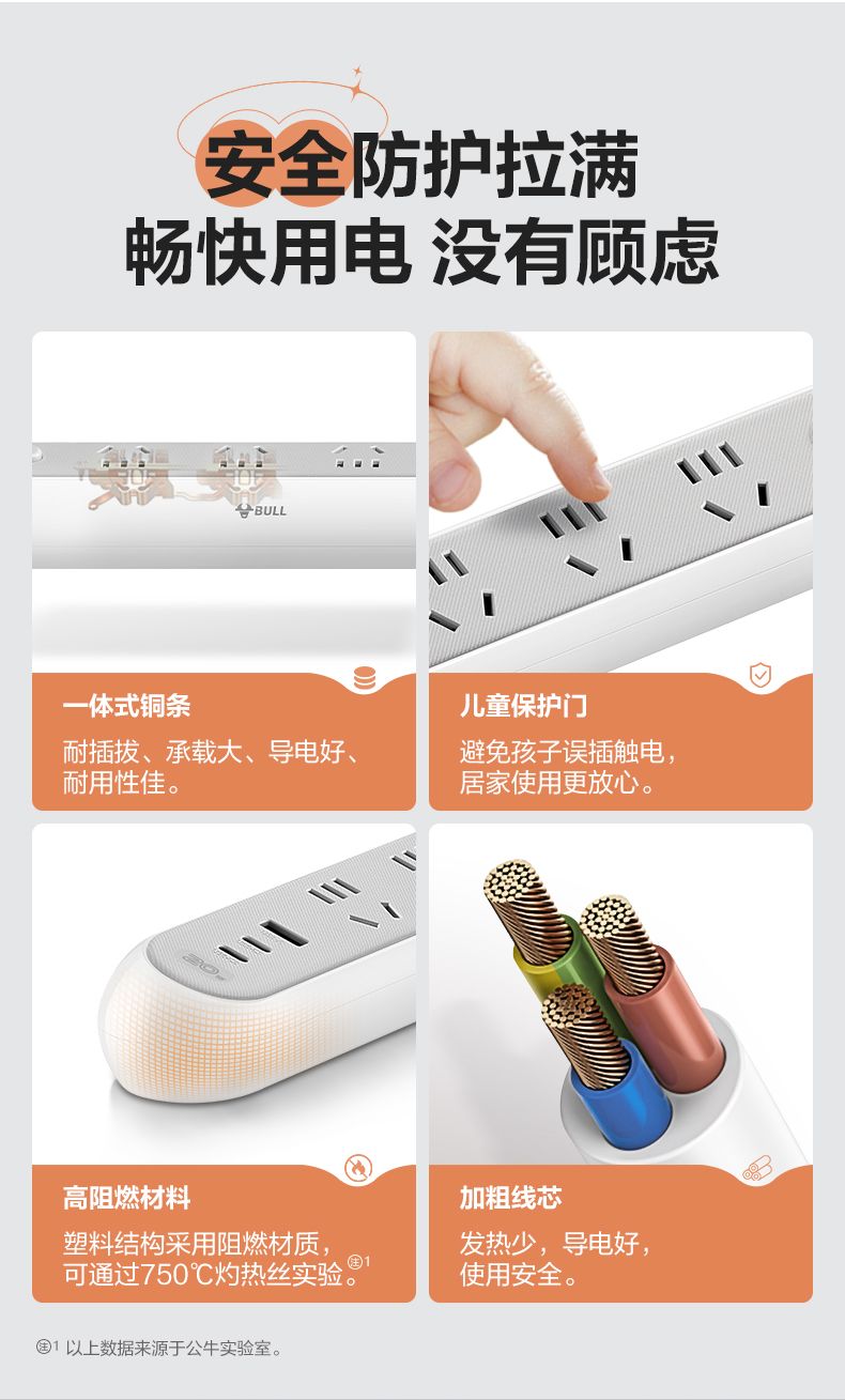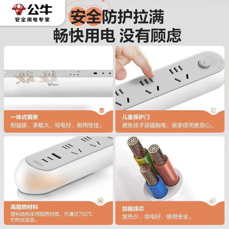 公牛插座接线板转换器多位多功能Z时代办公家用插板排拖线板排插