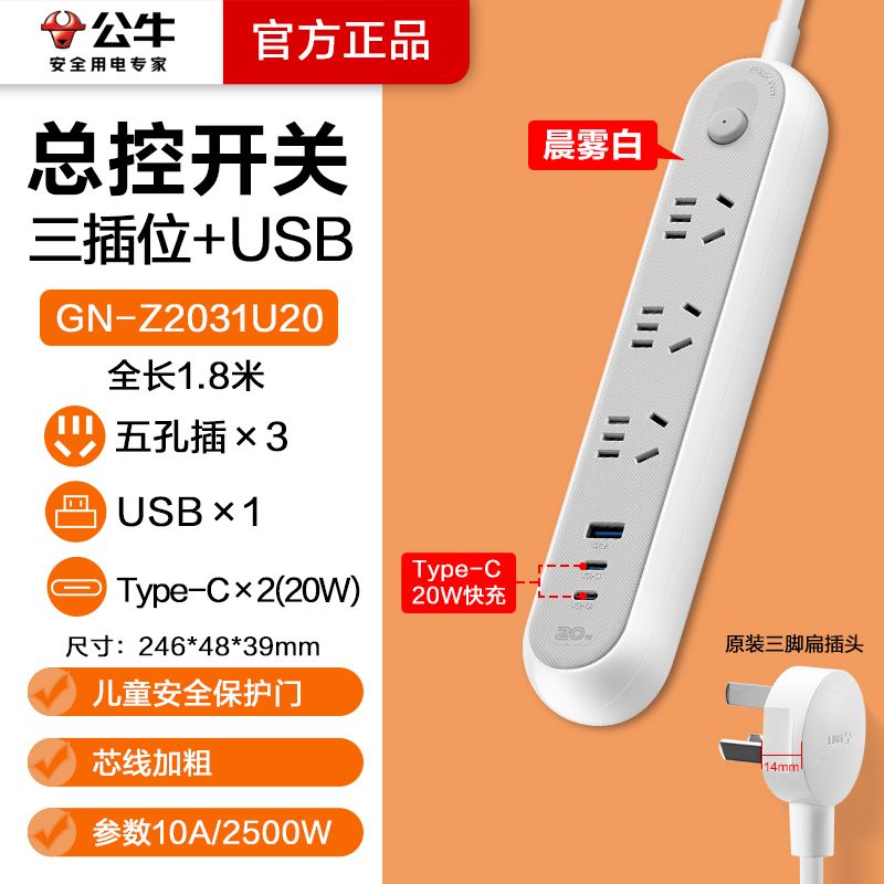 | z2031u20 * c port 20w fast charge + three plug(Z2031U20*C口20W快充+三插位) | USD $12.85 | 99999 piece available |