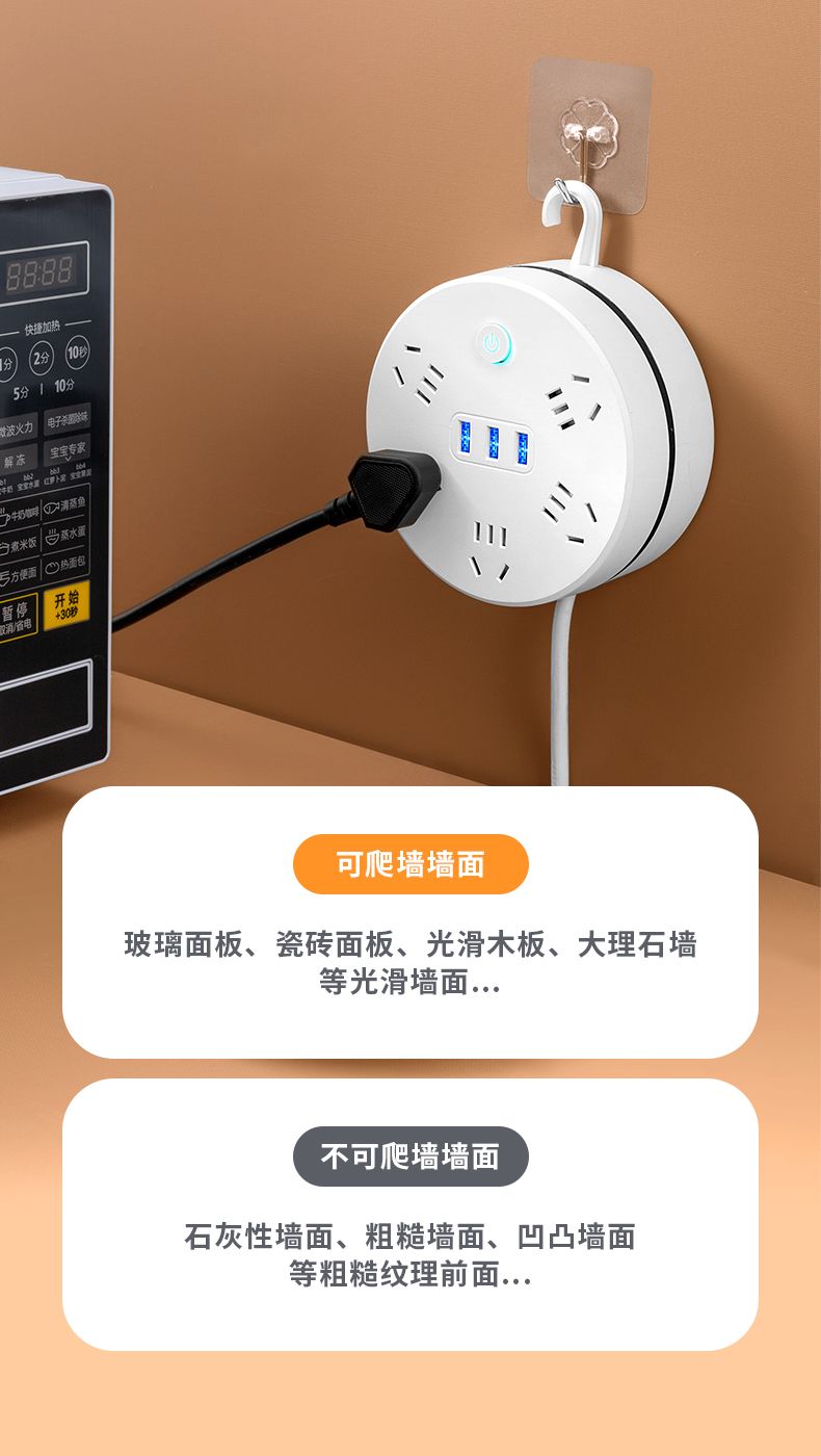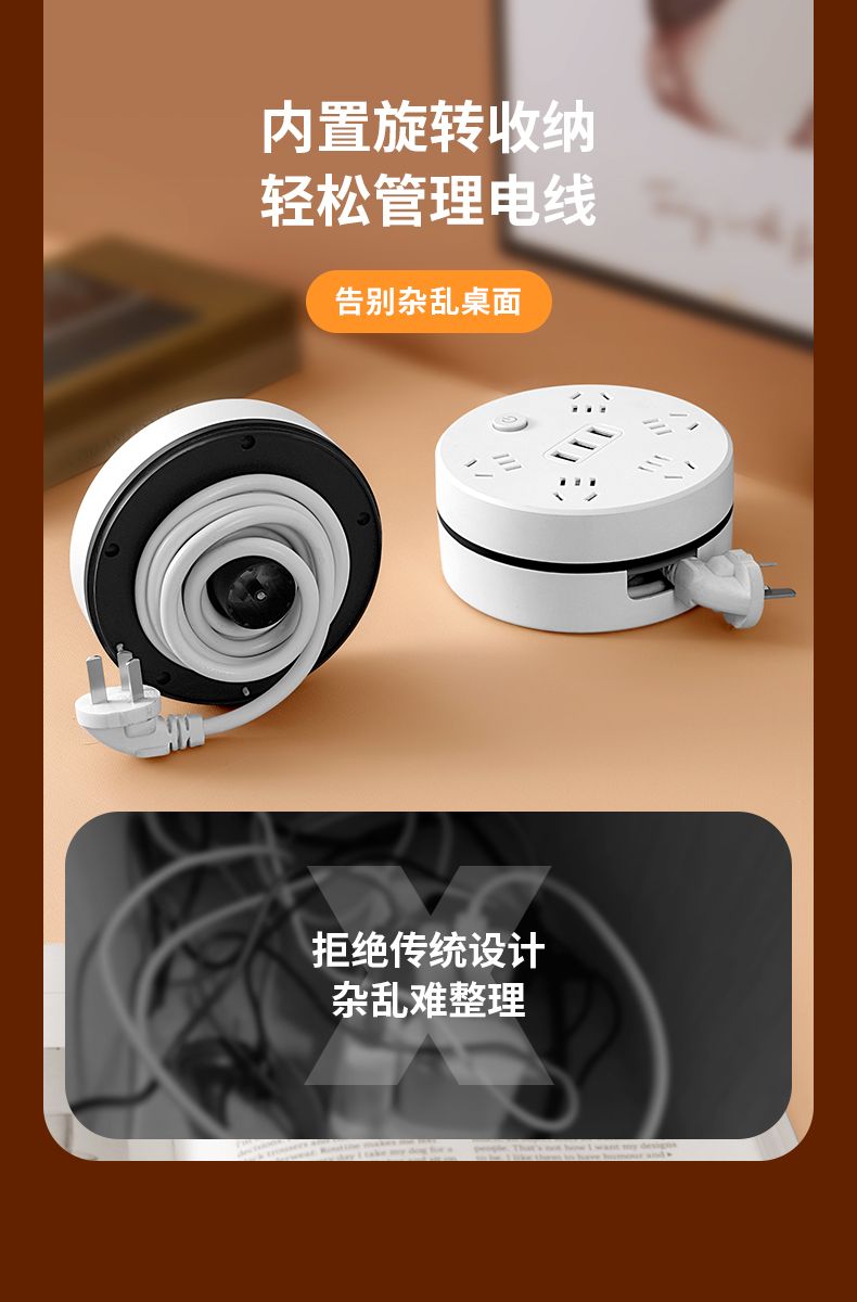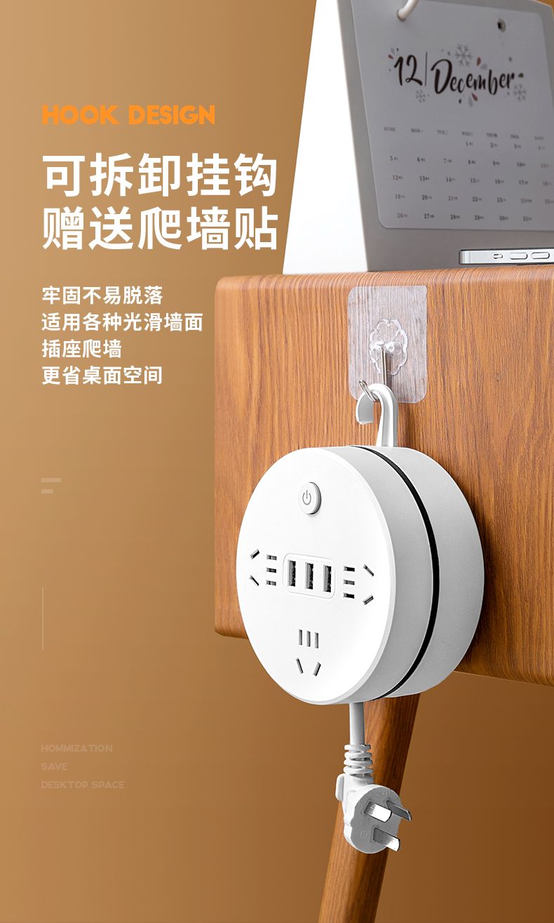 收纳多功能插座线插USB线板多孔插排插板家用接线板可拆卸挂钩