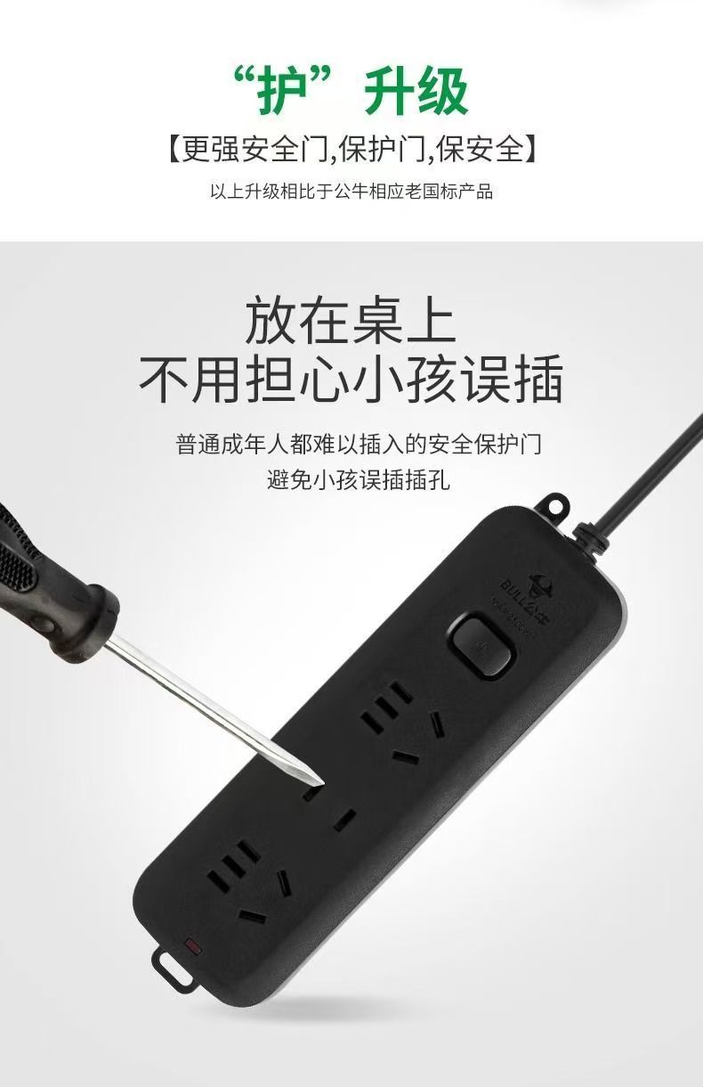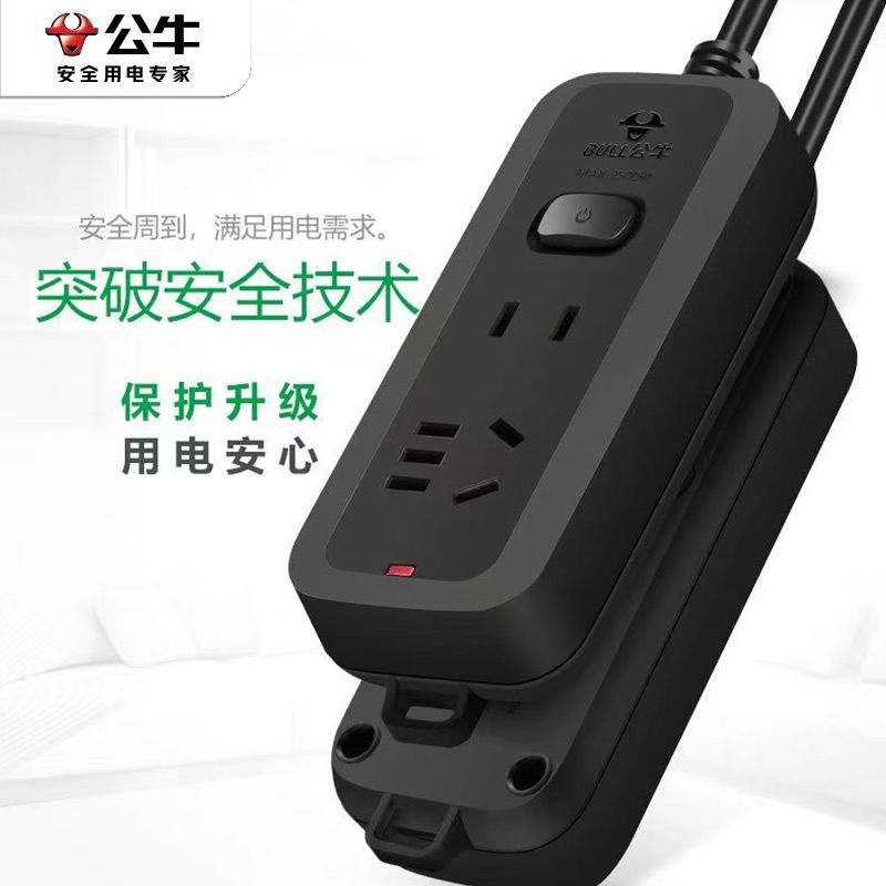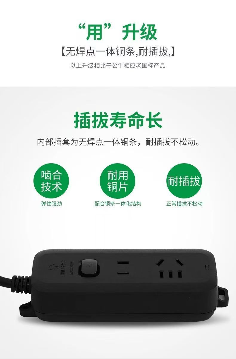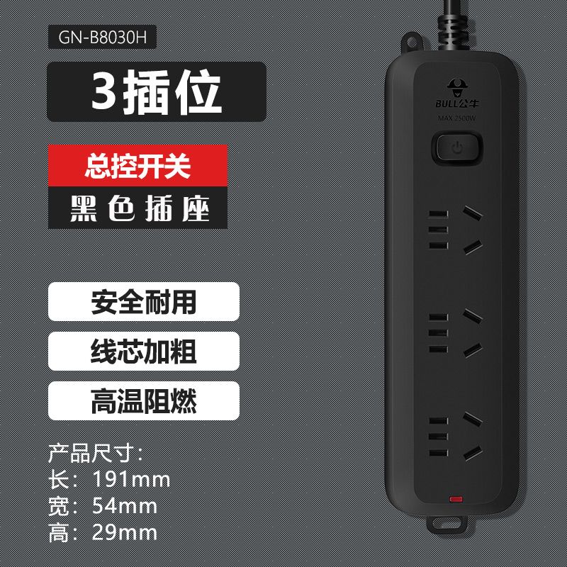 公牛插座黑色USB插排长方形排插家用线板多功能插板公牛插排