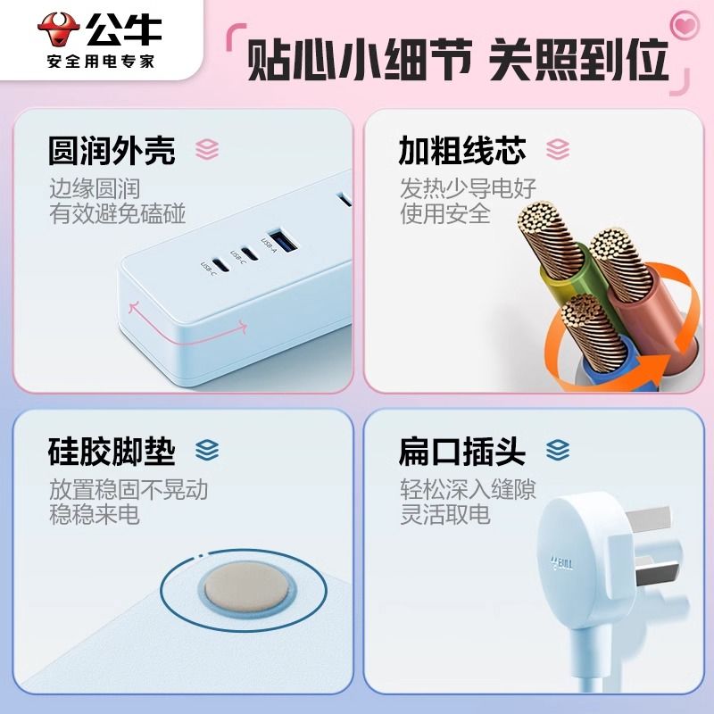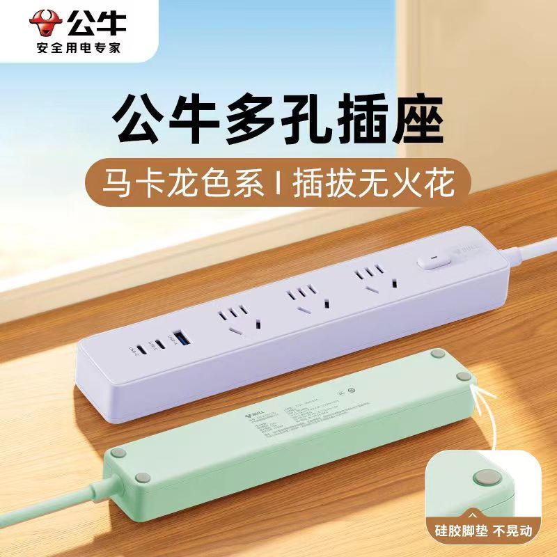 公牛插座宿舍充电插排插线板usb多孔拖线板接线板插板电源延长线