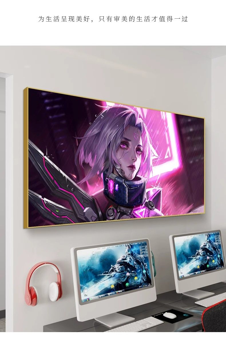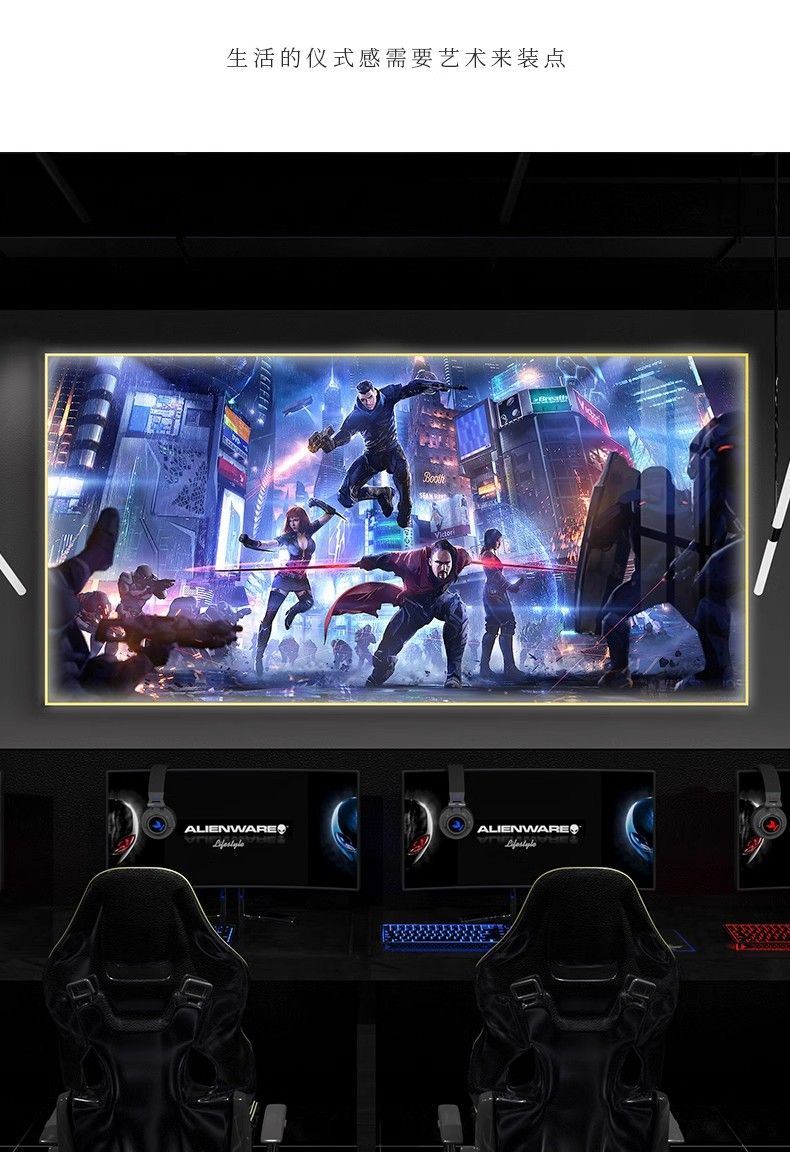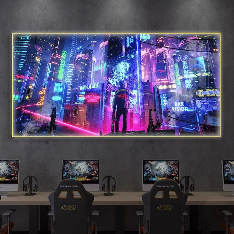 电竞房间装饰画发光灯光画赛博朋克风房间背景墙挂画酒吧网吧壁画