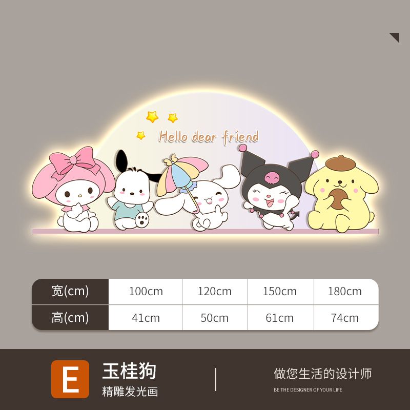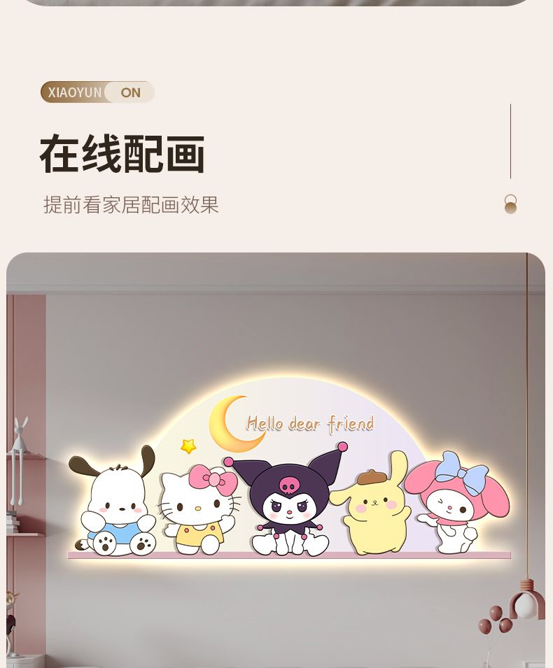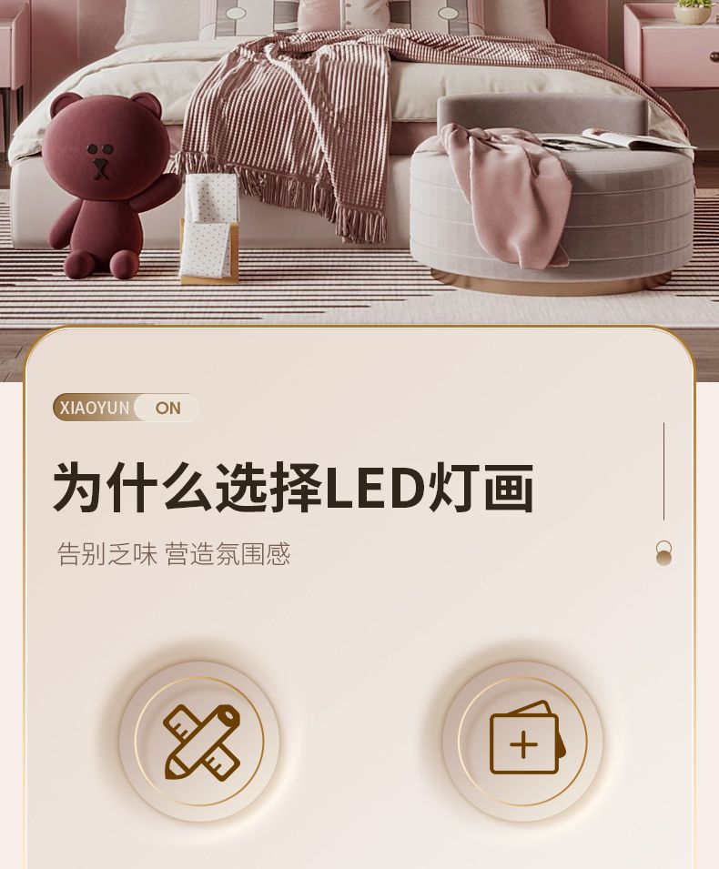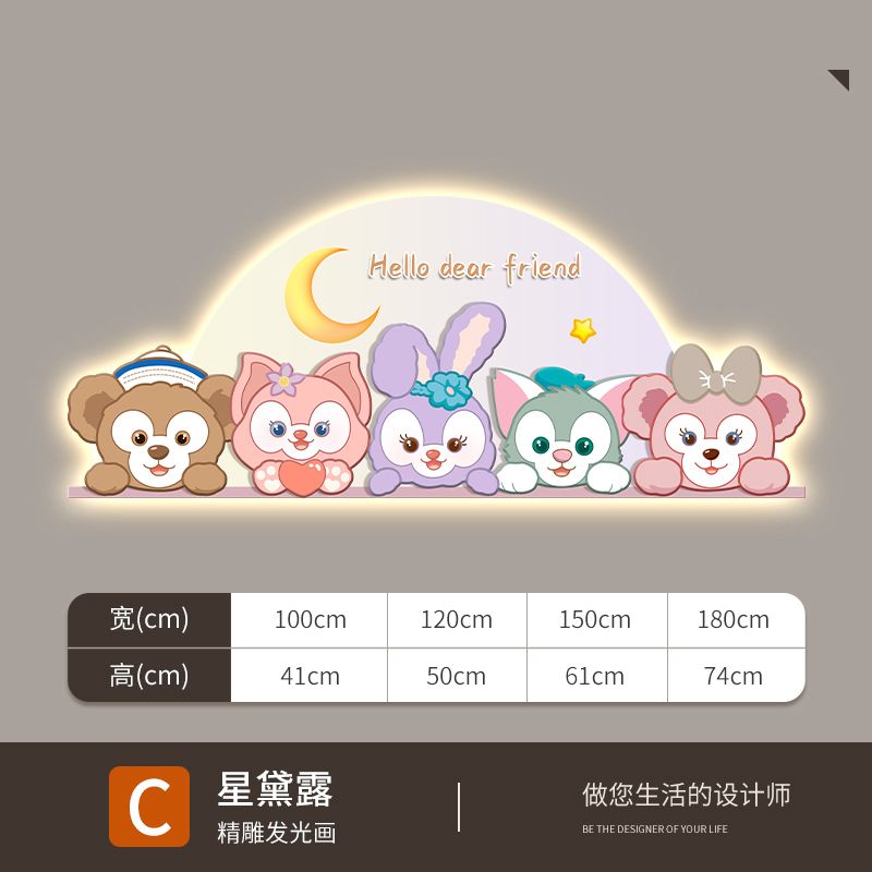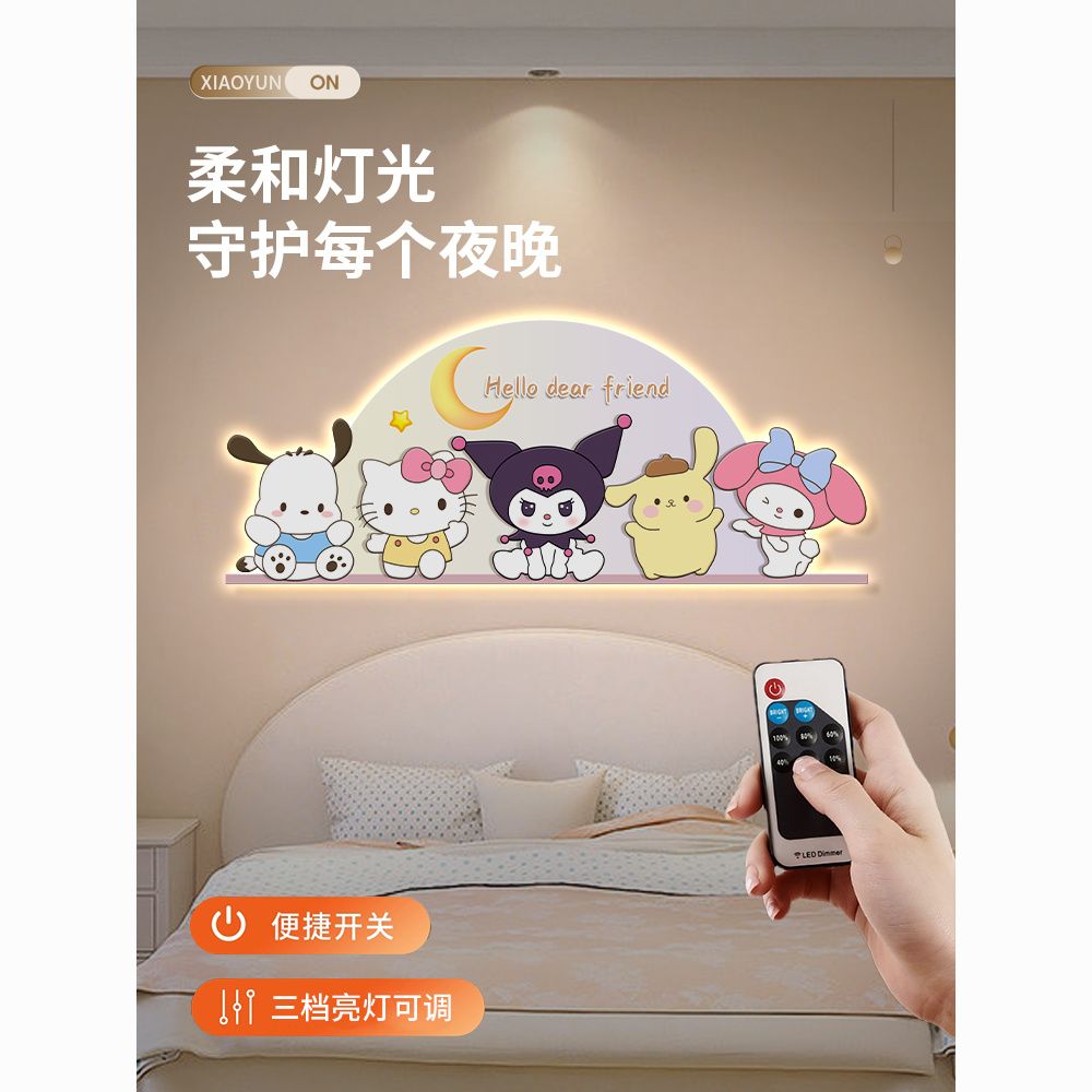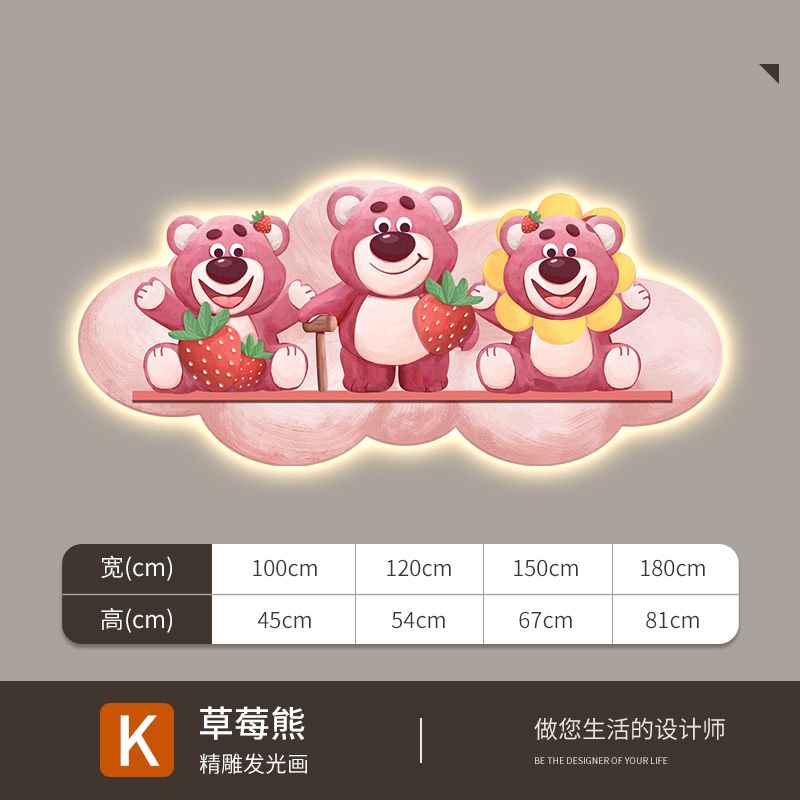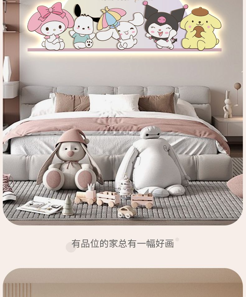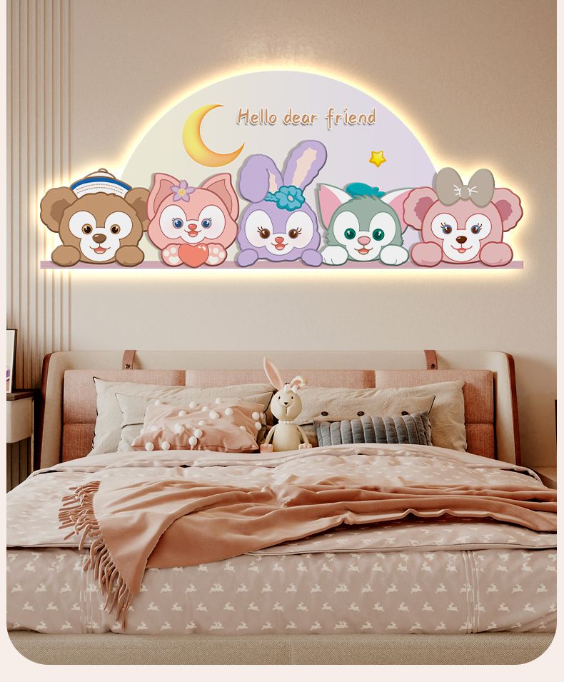 儿童房装饰画壁灯女孩房床头画女童房间卧室卡通挂画灯光画壁画