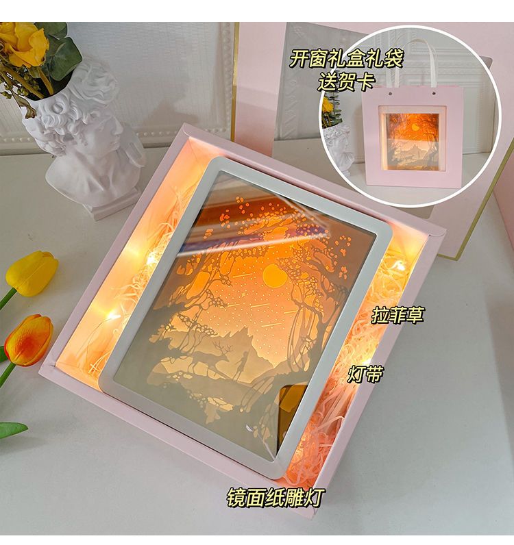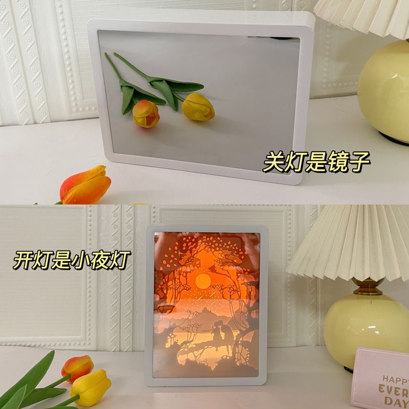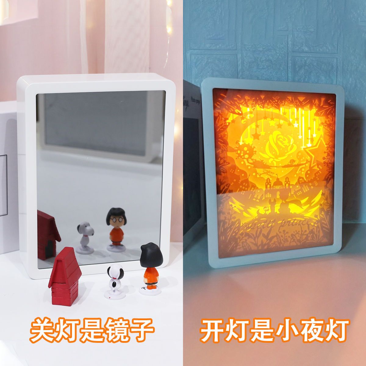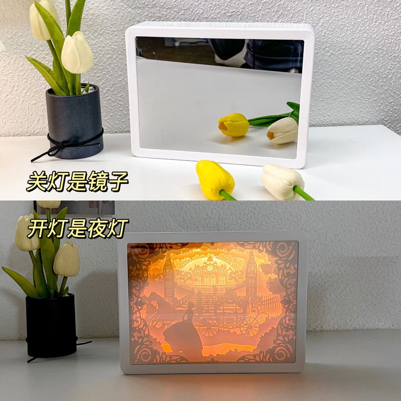少女心镜面纸雕灯桌面小众夜灯摆件卧室灯教师节送老师女生日礼物