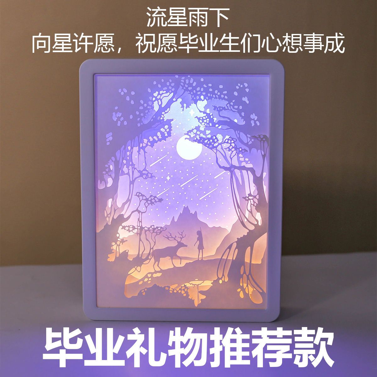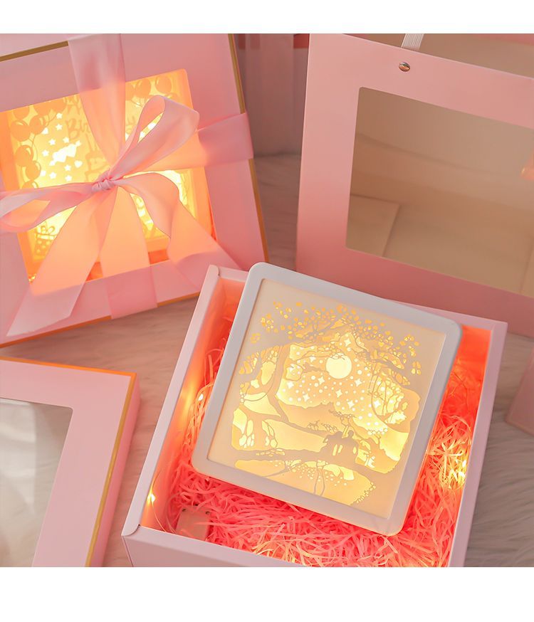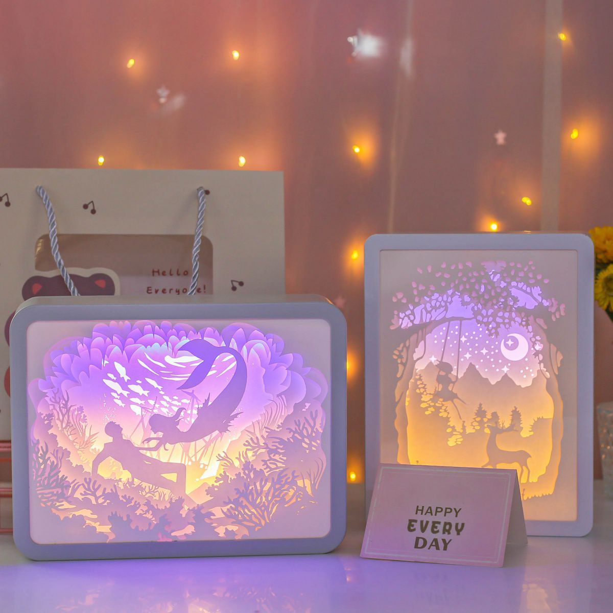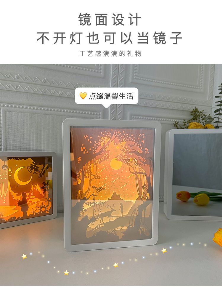 少女心镜面纸雕灯桌面小众夜灯摆件卧室灯教师节送老师女生日礼物