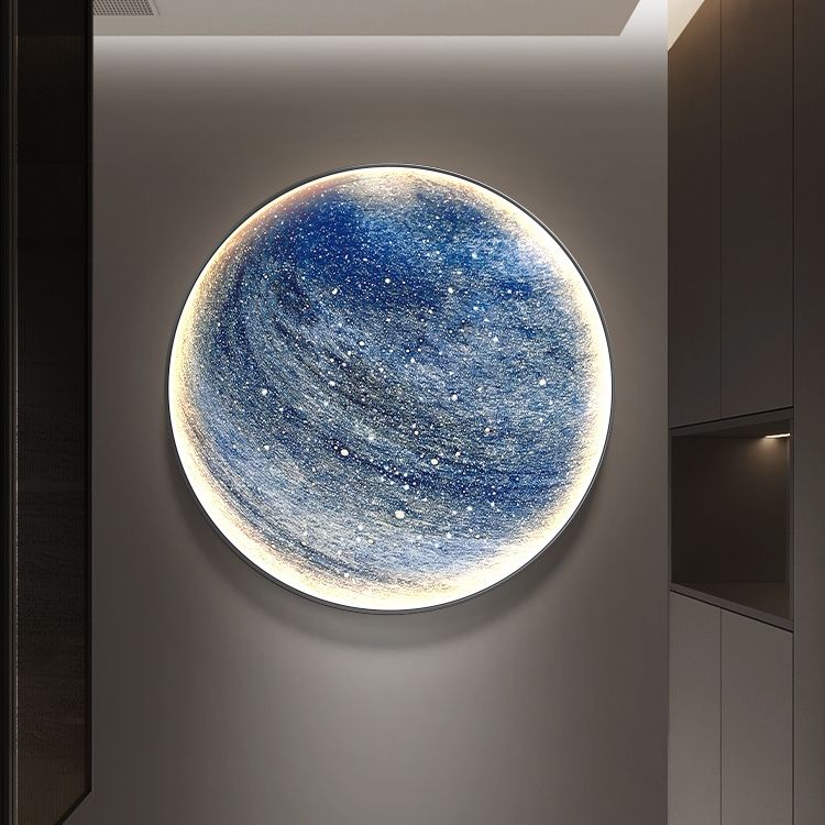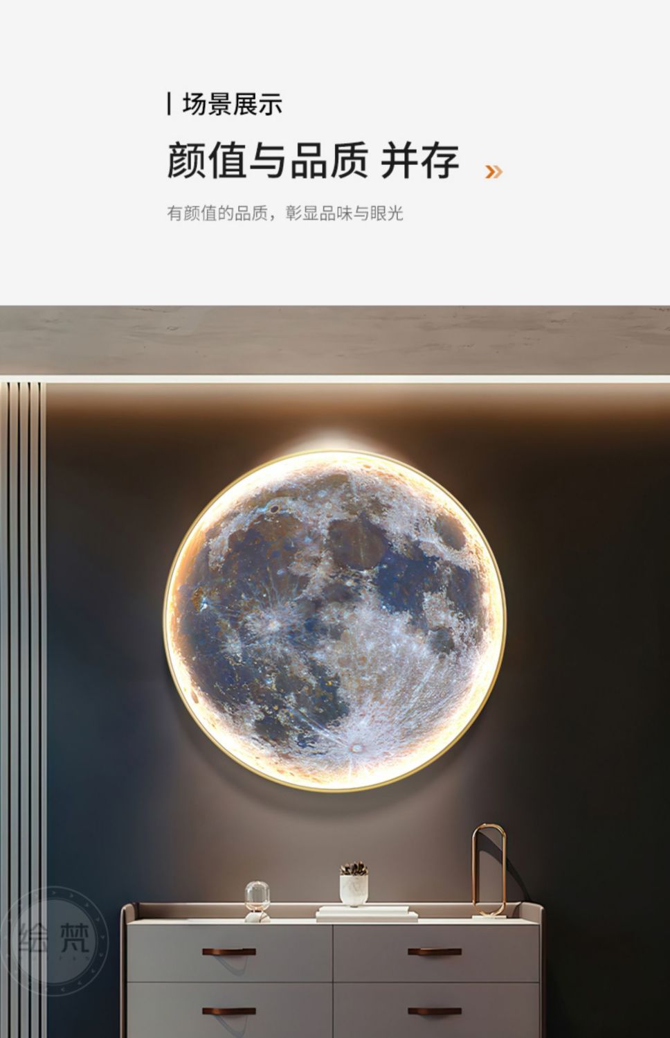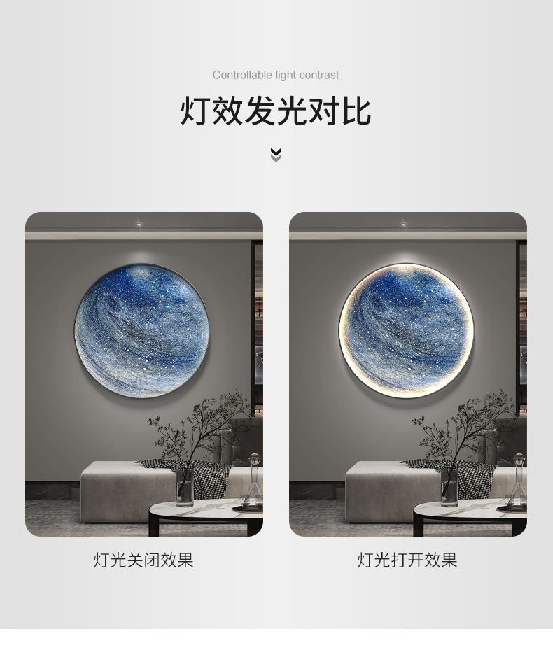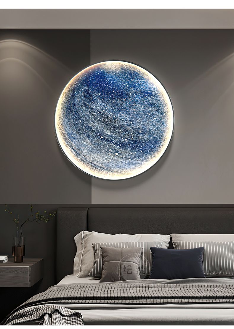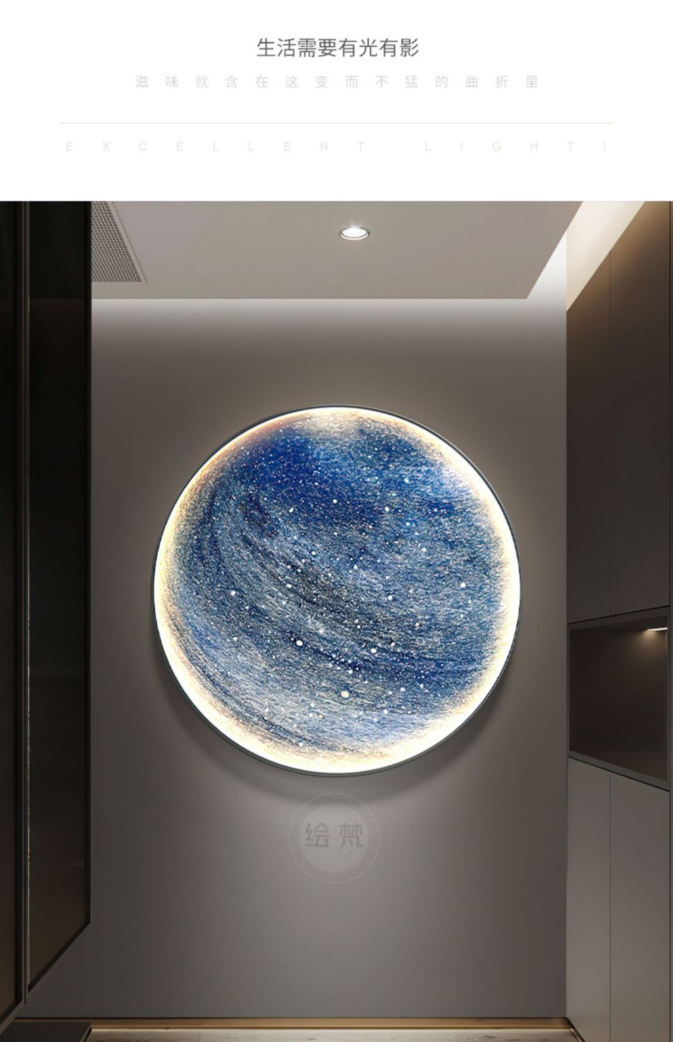 新款现代轻奢发光星球月球装饰画卧室床头圆形玄关客厅沙发壁画