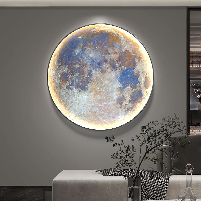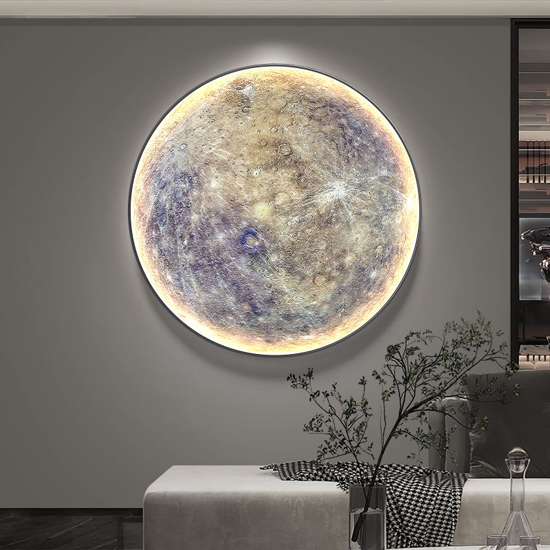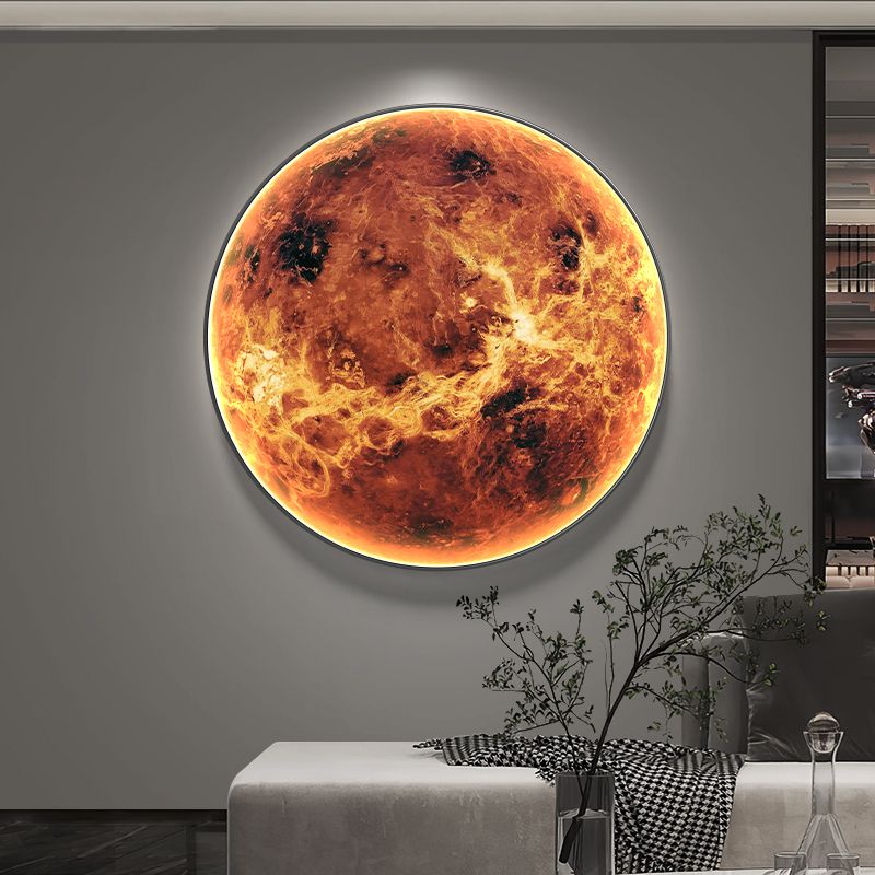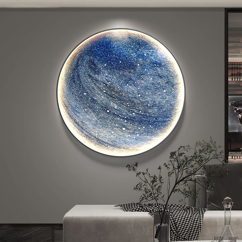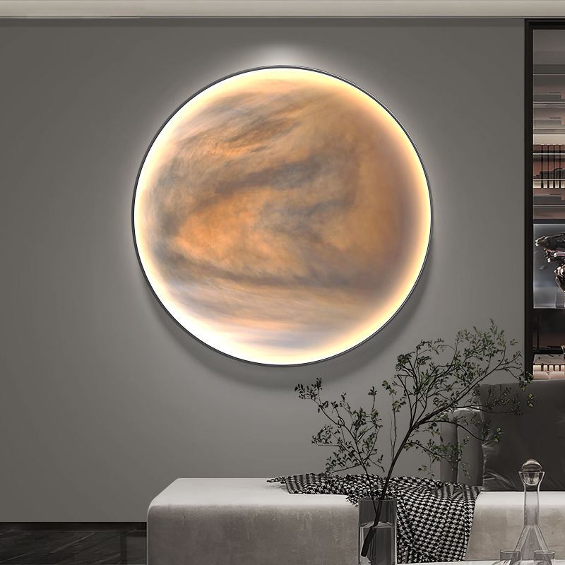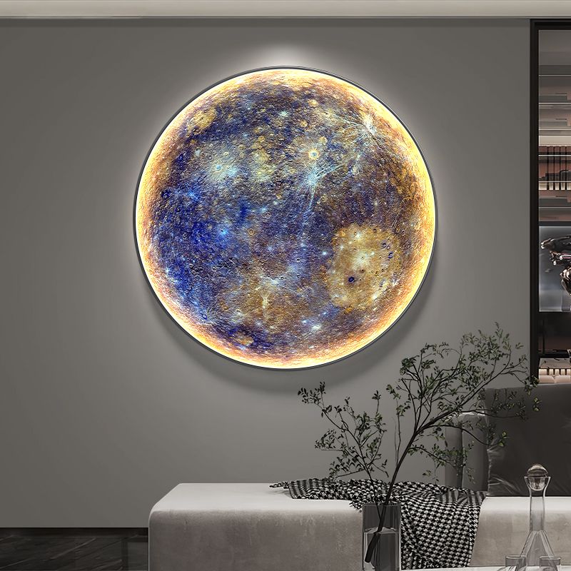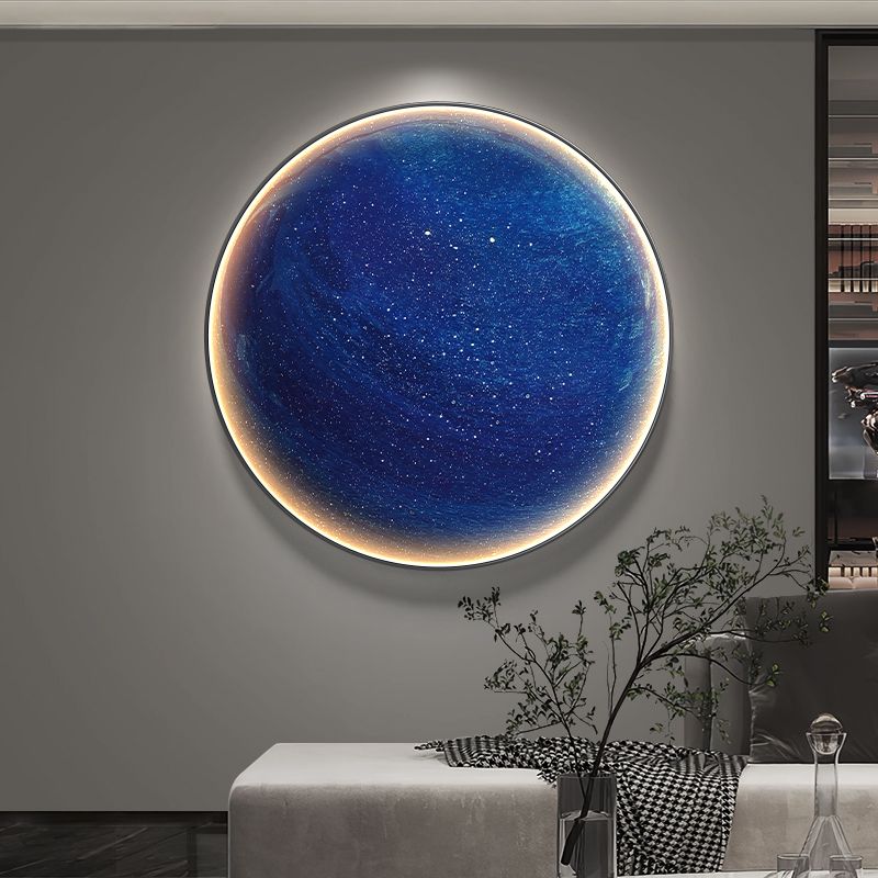 新款现代轻奢发光星球月球装饰画卧室床头圆形玄关客厅沙发壁画